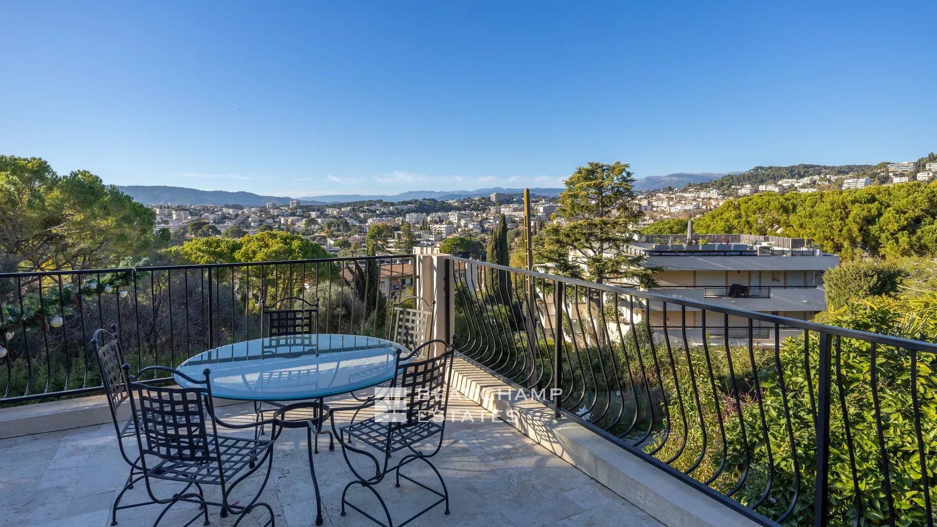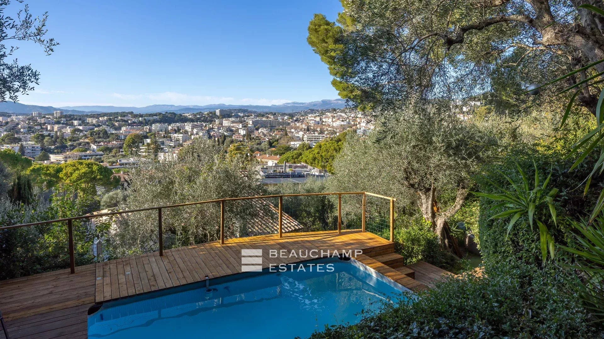 On the second floor: Two large bedrooms, each with its own private bathroom, opening onto a magnificent panoramic terrace of approximately 53 sqm with breathtaking views of the Estérel mountains.