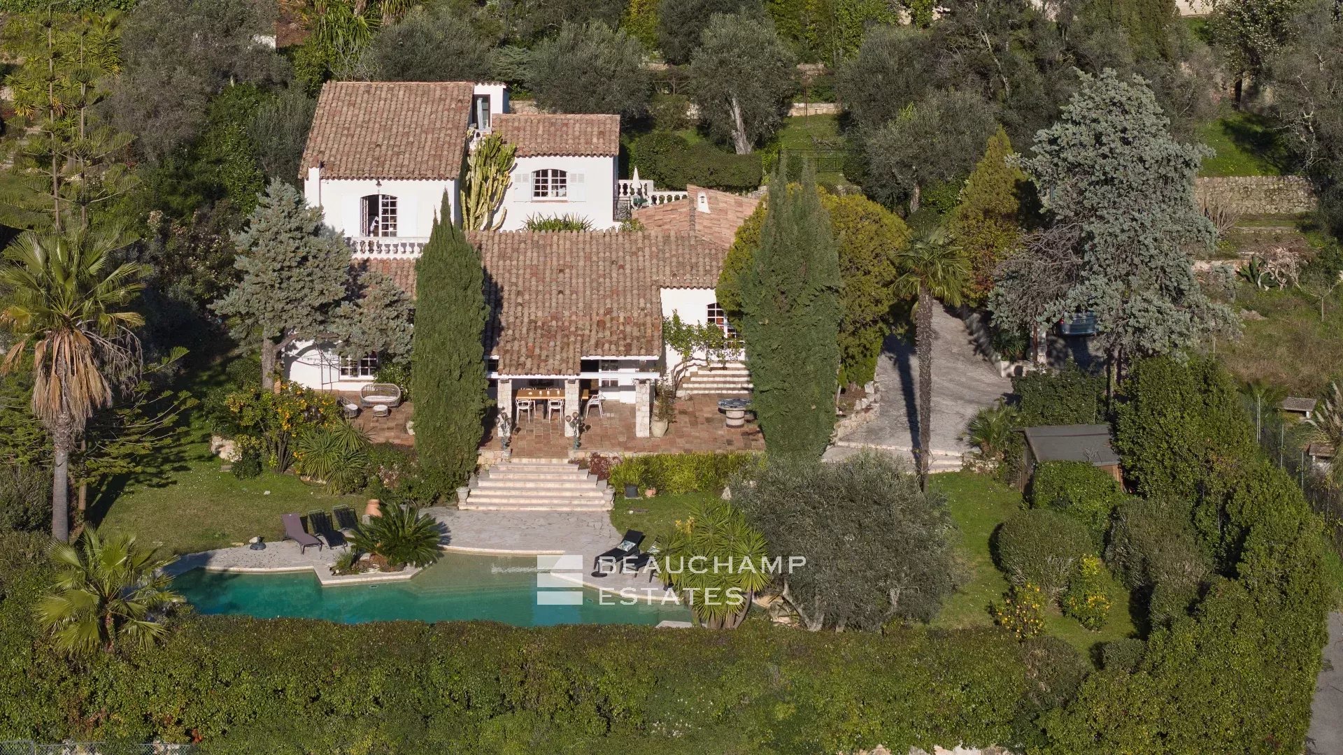 The spacious living space opens to the outdoors with a south-southwest exposure. A perfect family villa with five bedrooms and a separate studio. A garage completes this exceptional property. A beautiful location, ideal for a primary or secondary residence on the outskirts of Cannes and minutes from two Golf courses.