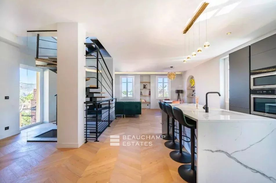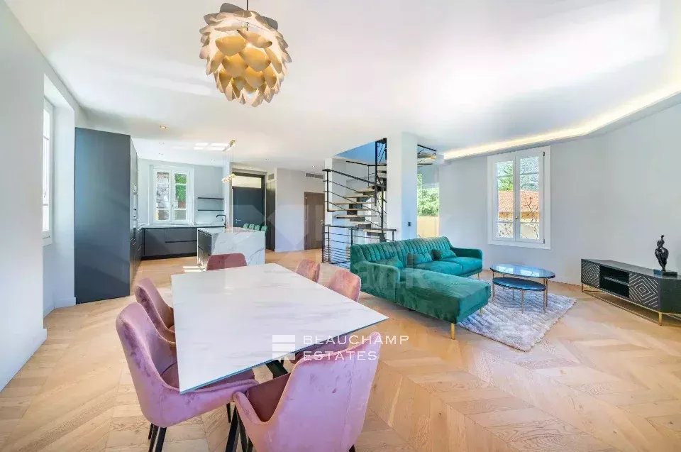 Ideally located, close to the center and the sea on foot, this beautiful villa of approximately 230 m2 on three levels has been completely renovated with quality materials in a chic contemporary spirit.