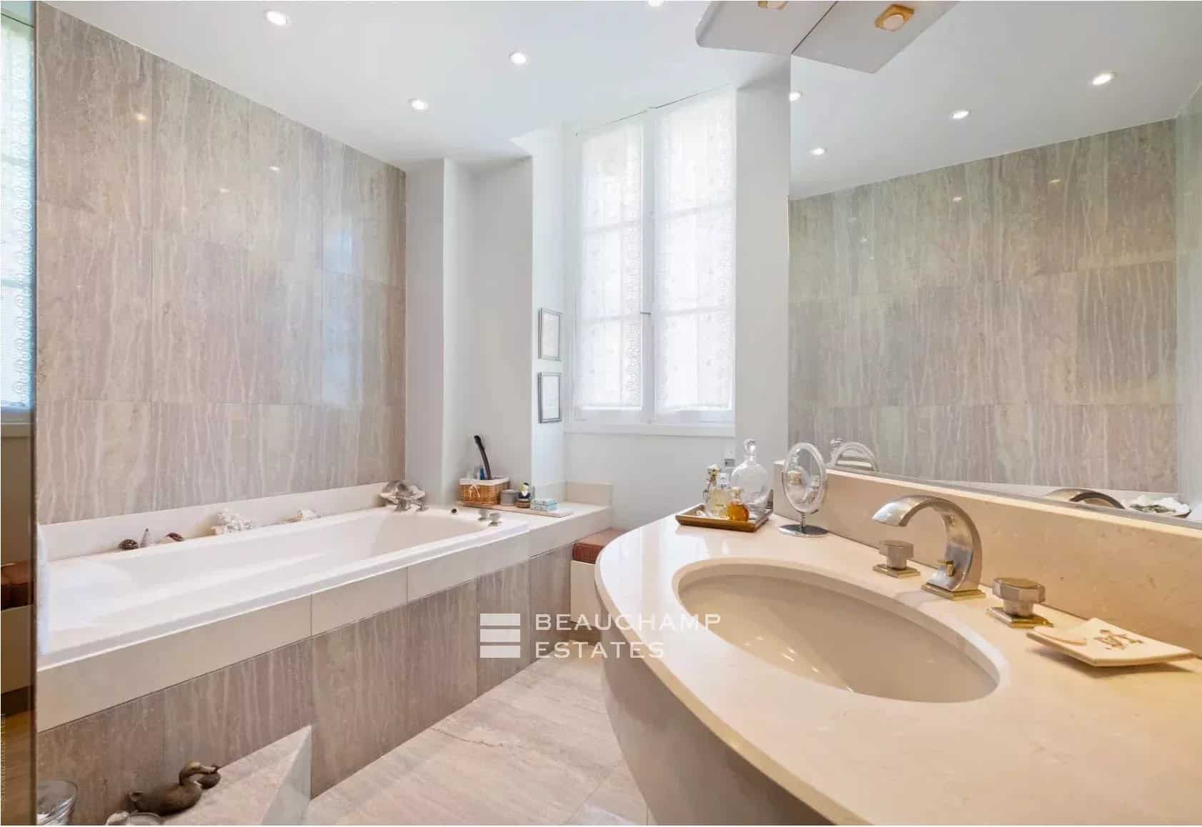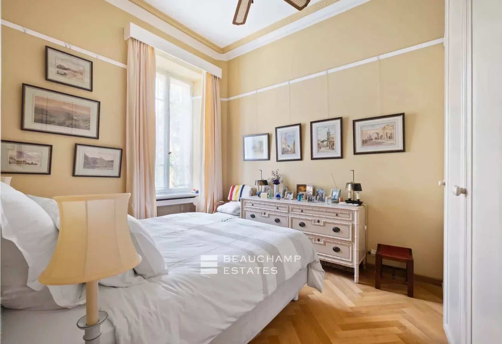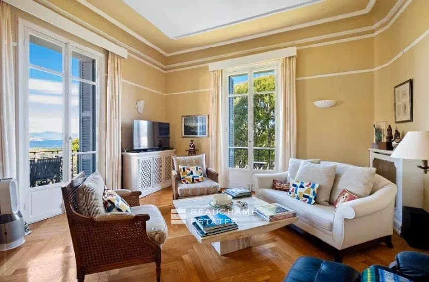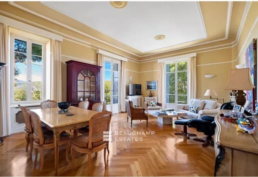 We are delighted to present this stunning, light-filled apartment situated on the first floor of an elegant Belle Époque villa. Set in a peaceful, lush environment, it enjoys a privileged location just a short walk from the charming village of Saint-Jean.
