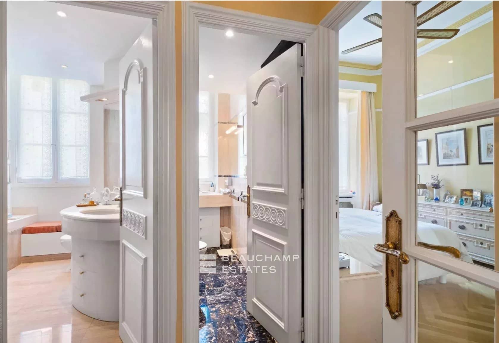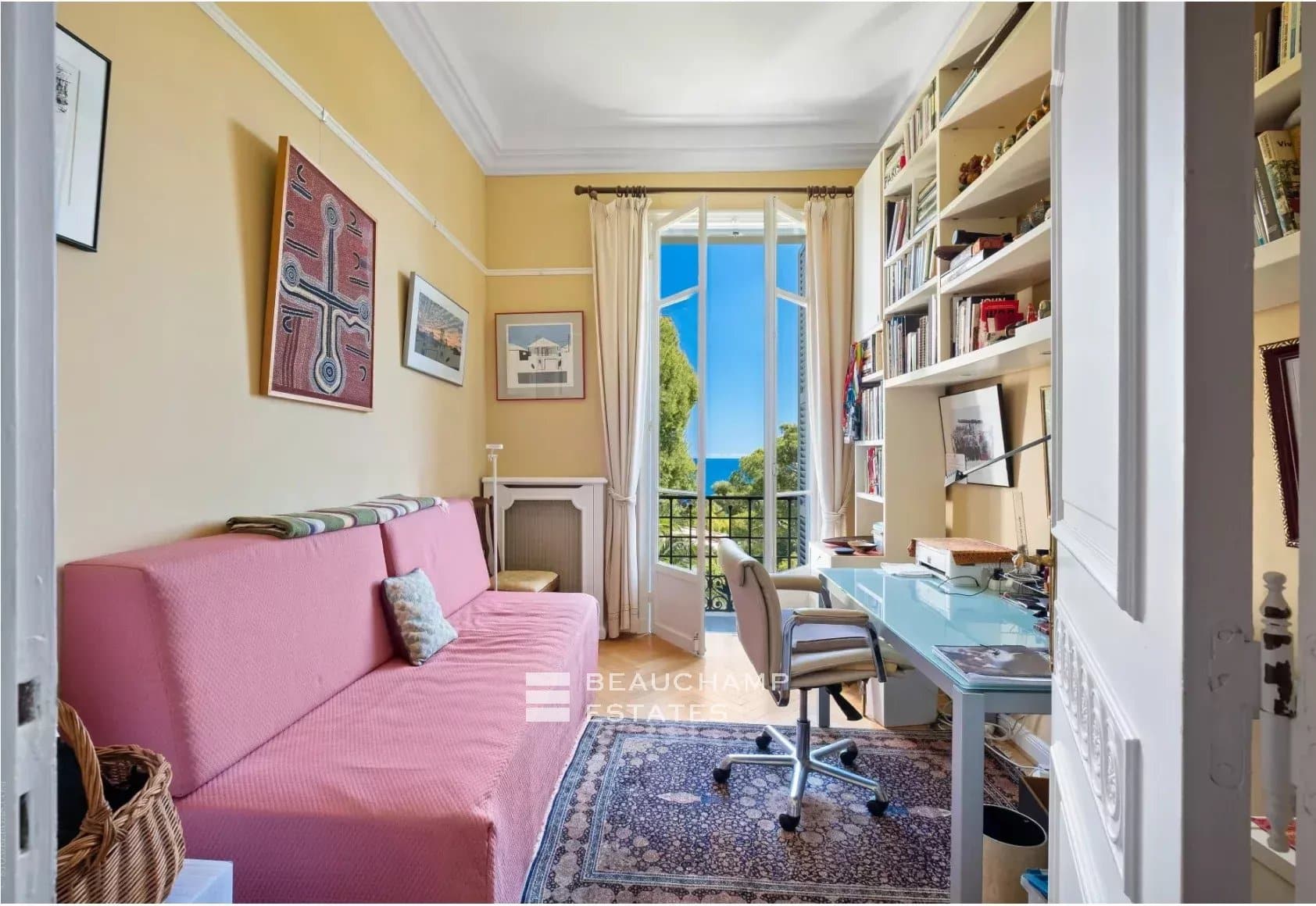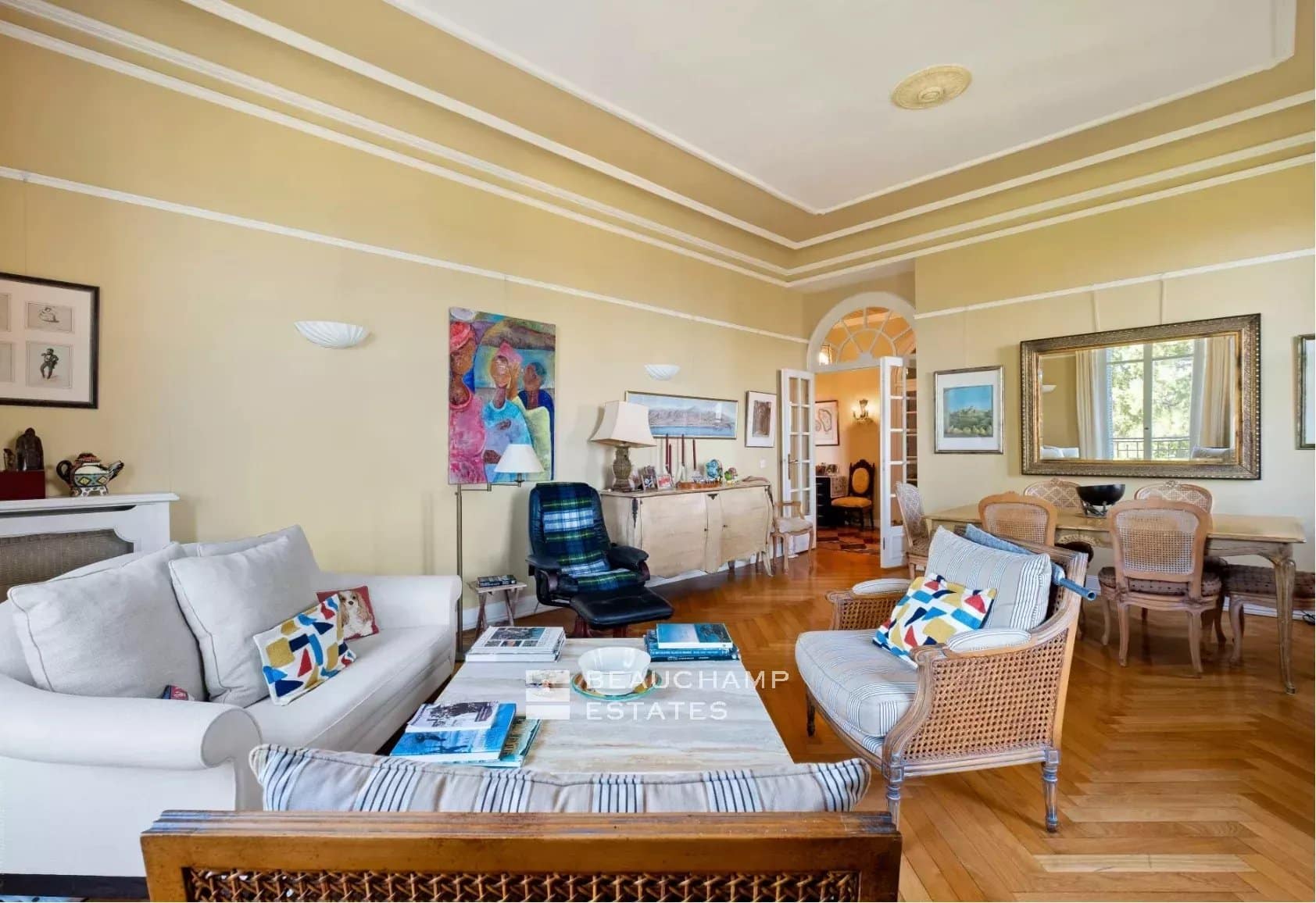 We are delighted to present this stunning, light-filled apartment situated on the first floor of an elegant Belle Époque villa. Set in a peaceful, lush environment, it enjoys a privileged location just a short walk from the charming village of Saint-Jean.