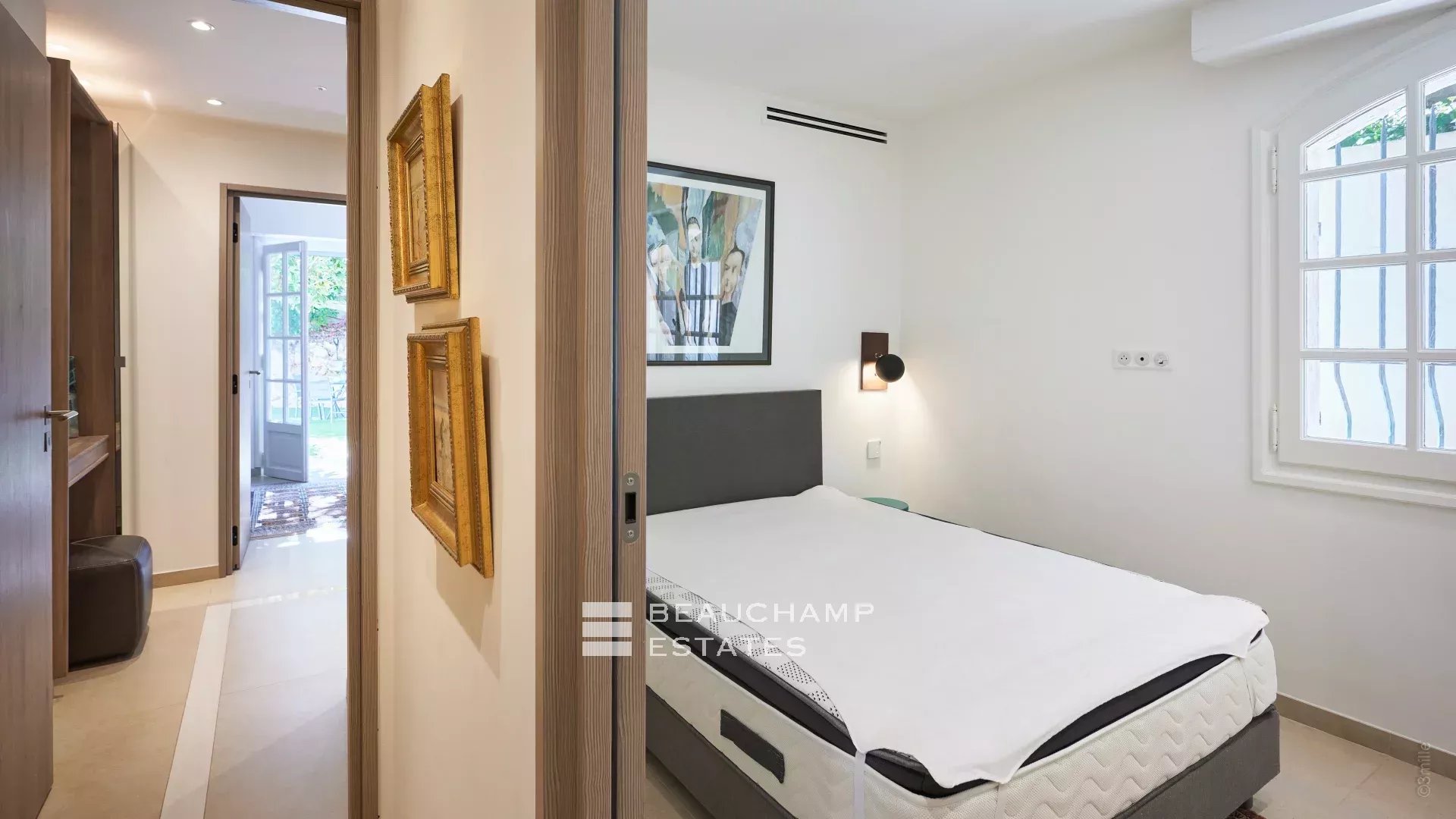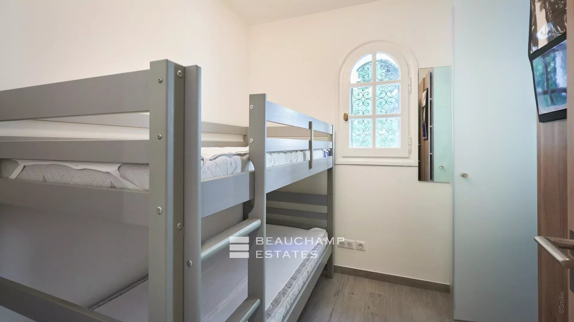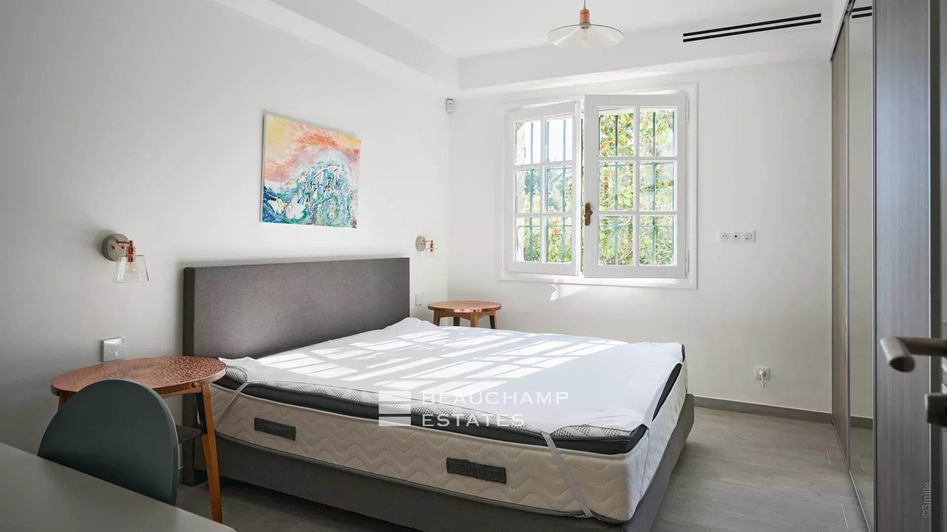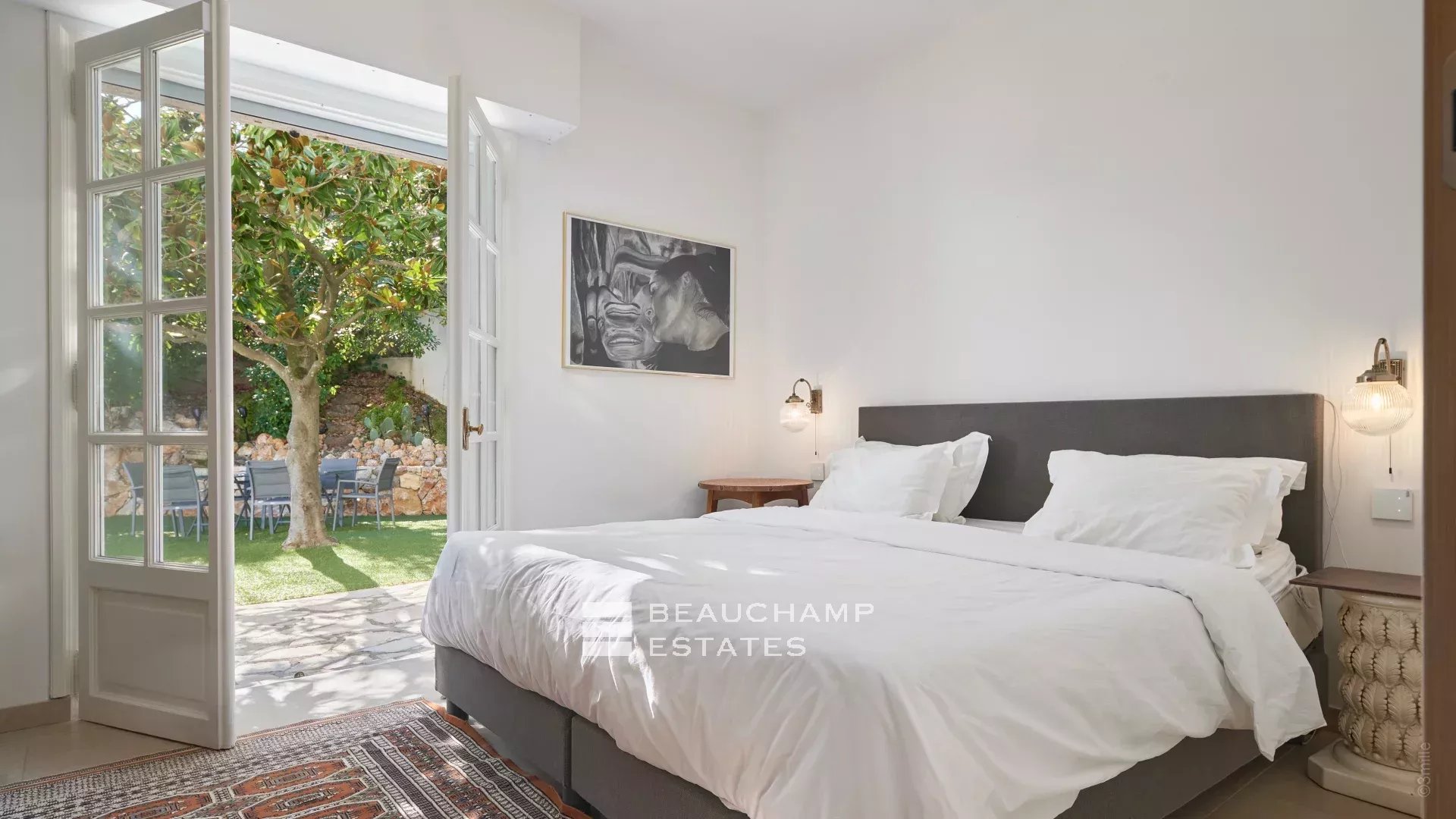 Nestled at the top of a hill overlooking the bay of Golf Juan, this superb Provencal style and completely renovated property offers a magnificent view of Cap d'Antibes and the sea.