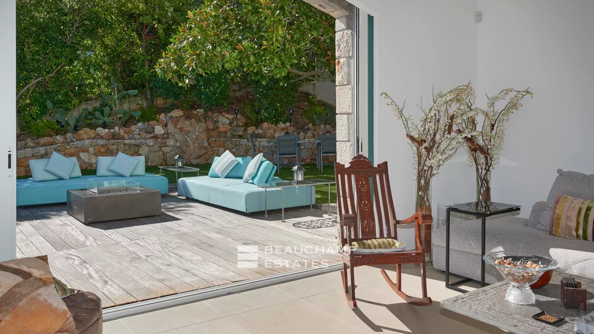 The property enjoys several large terraces a BBQ corner and a stunning infinity mirror pool (heated). The villa est equipped with a sound system, AC in each room and good Wifi. The villa is also protected with alarms and safes in bedrooms.