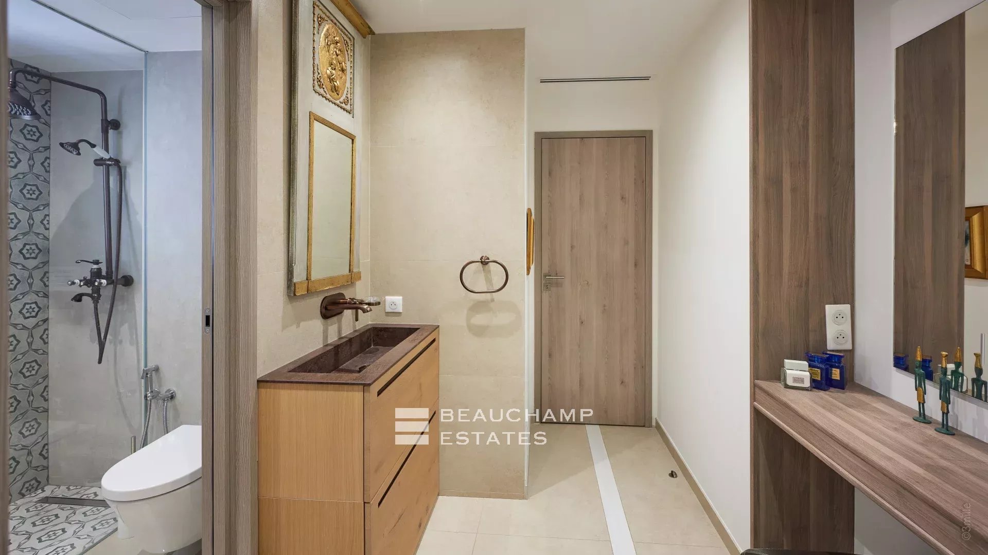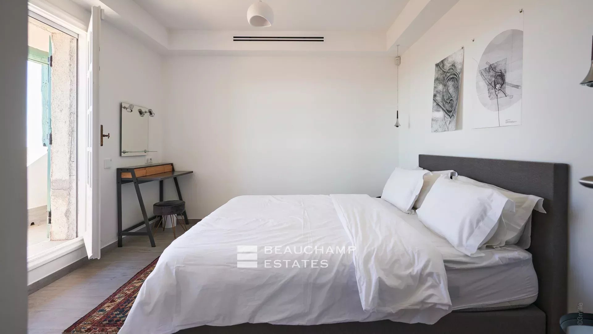 Bedroom 3 : master bedroom (bed size 180) with ensuite bathroom, toilet with bidet. A nice South facing terrace with panoramic sea view.