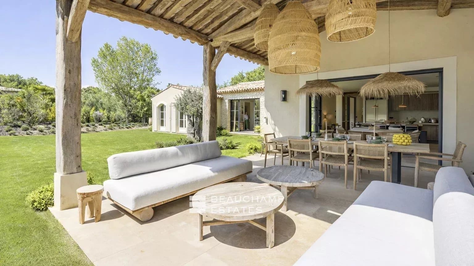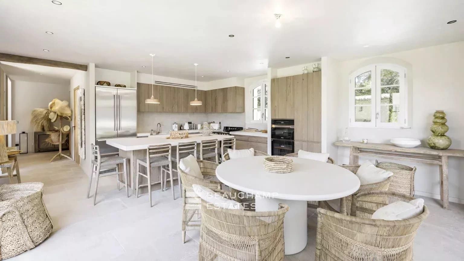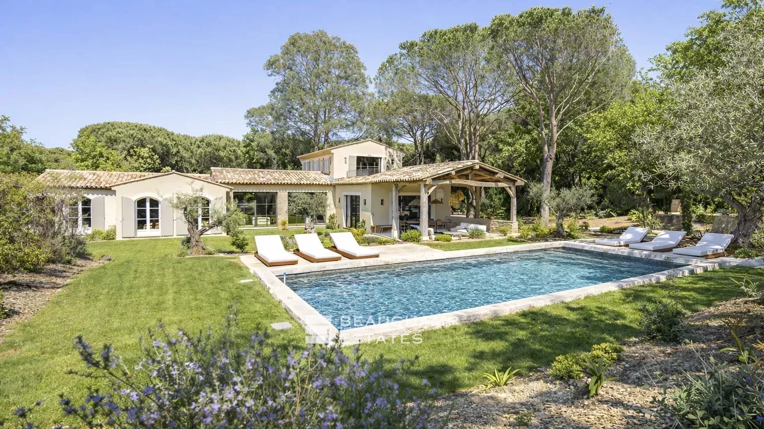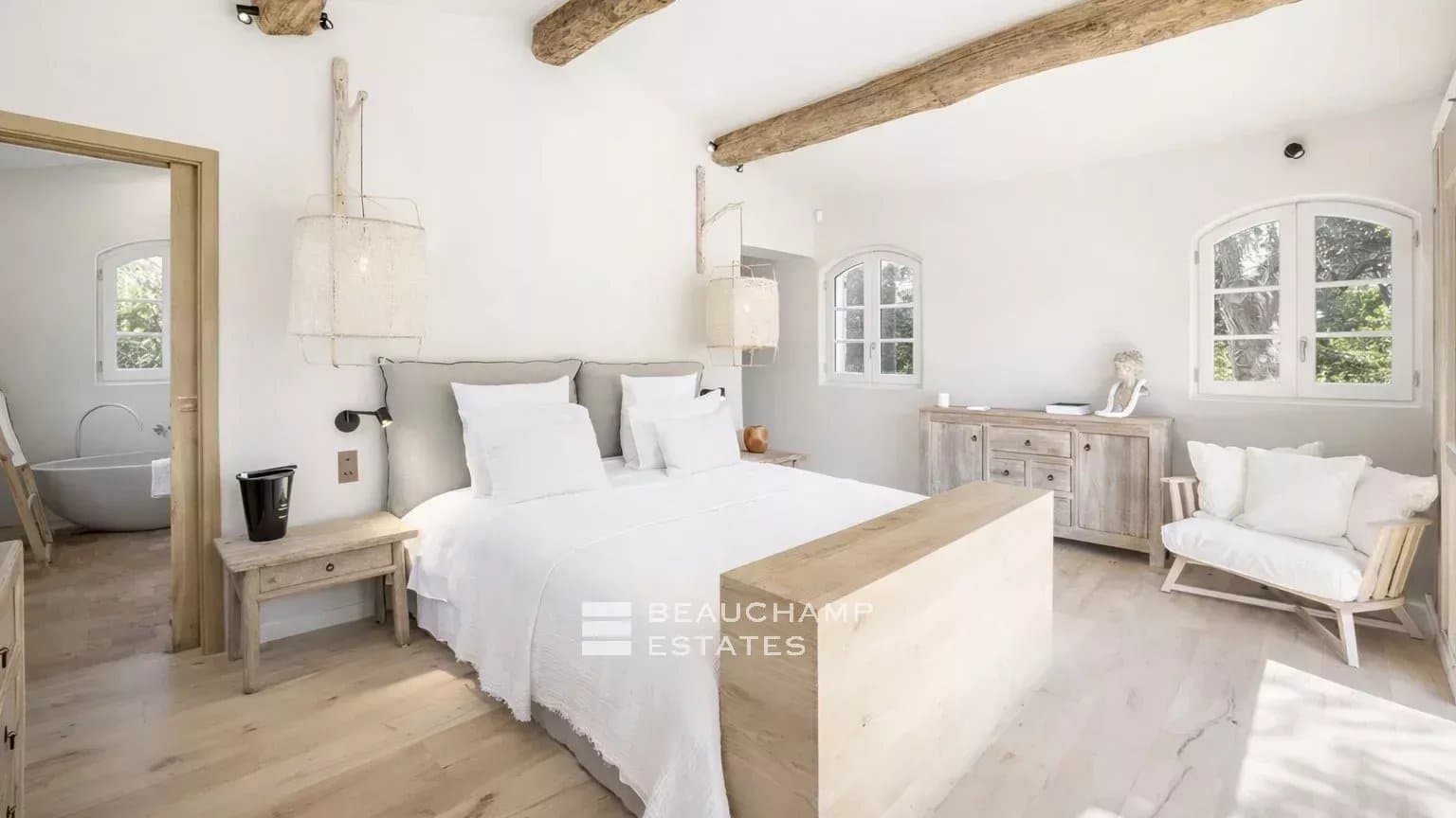 This newly built villa located just minutes from the turquoise beach of l'Escalet and 5 minutes from the beaches of Pampelonne, 20min drive to the center of Saint-Tropez, combines the charm of traditional Provençal style with elegant, modern renovations. Offering up to 4 en-suite bedrooms (with the option to configure 3 if preferred), the property boasts generous living spaces and abundant natural light.