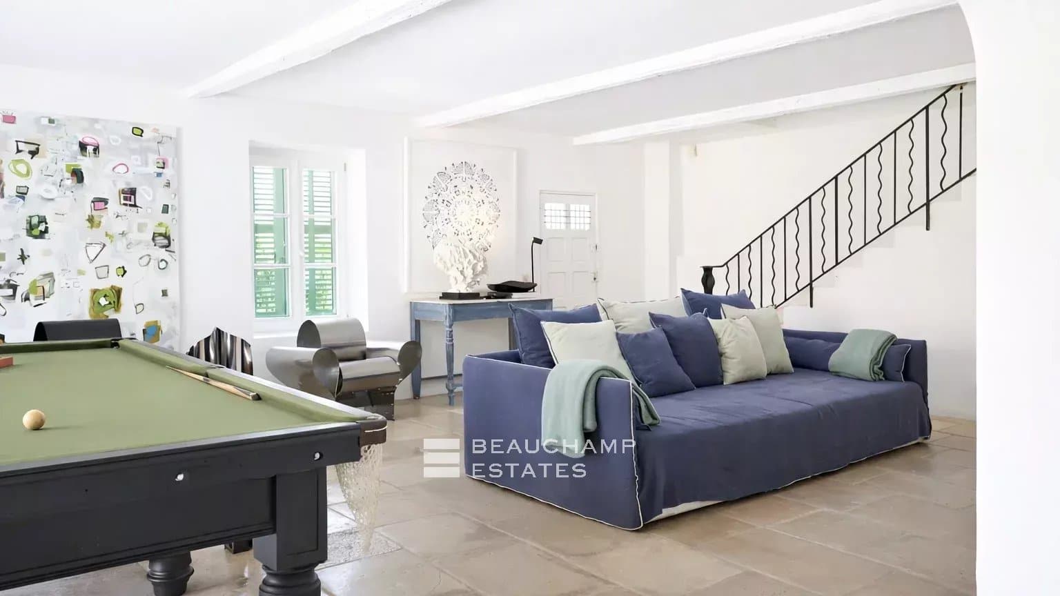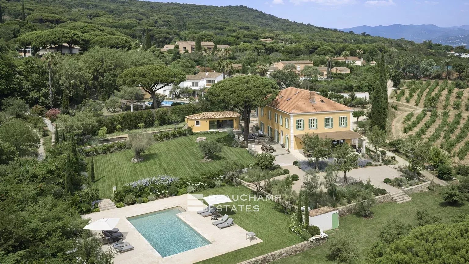 Situated in the middle of a vineyard in Ramatuelle, this 19 century Bastide as an enviable location within easy reach of Saint Tropez center and the famous beach of Pampelonne.