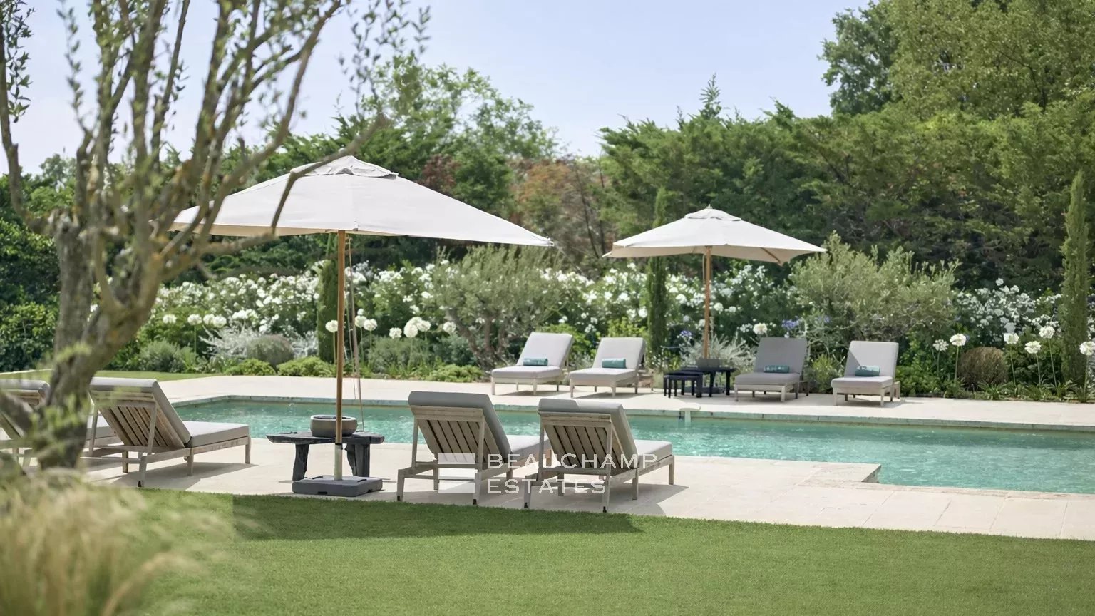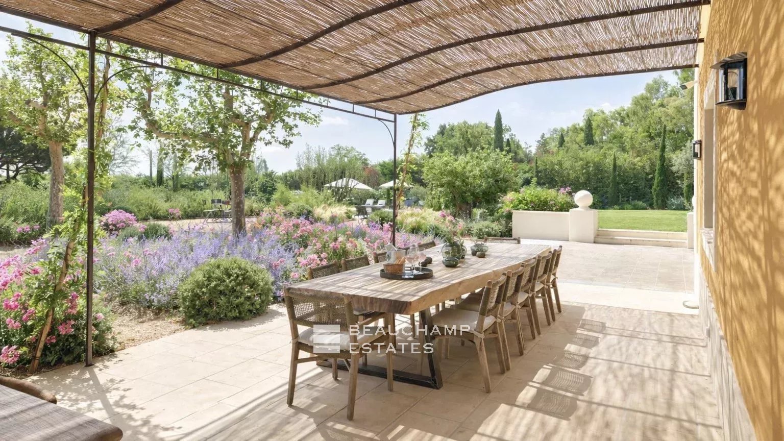 Within it peaceful different garden atmosphere, this Bastide invites you to a 5300 m garden surrounded by vineyards, the pool which is embraced by olive trees, leads you to an organic vegetable garden, which follows to the petanque ground and open brazier fire