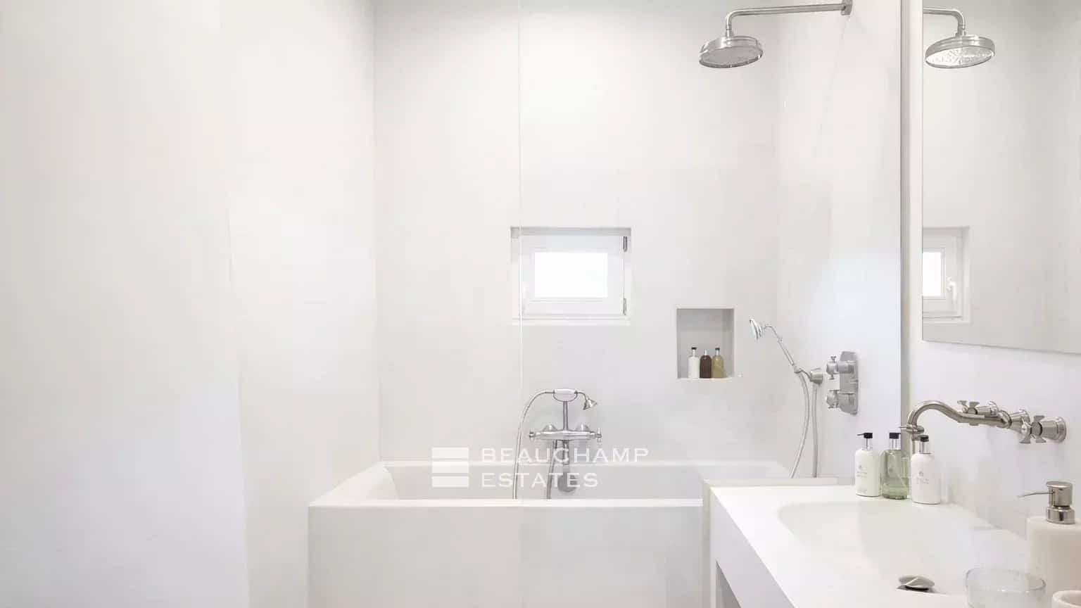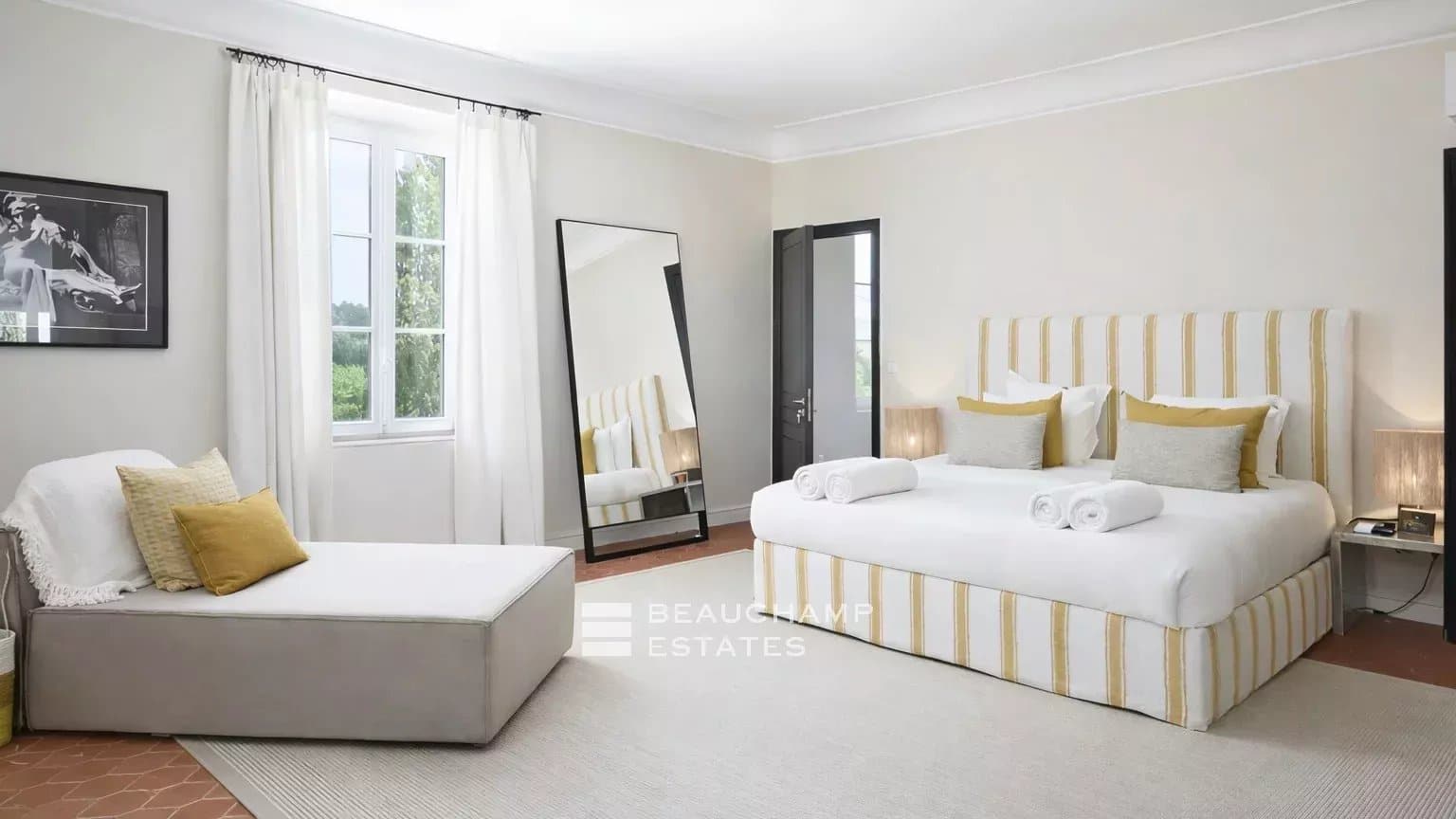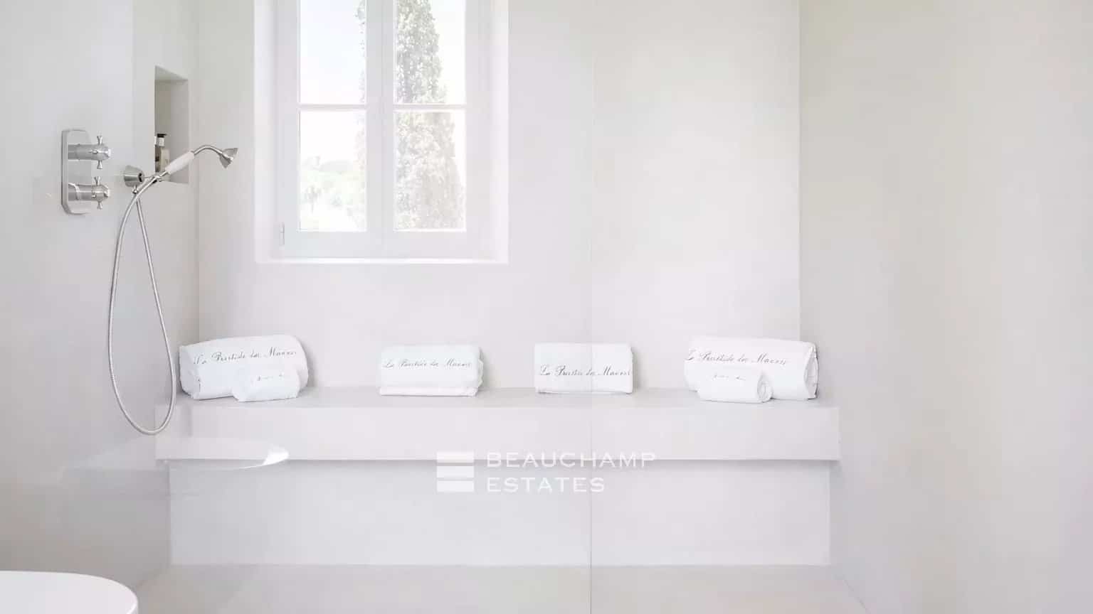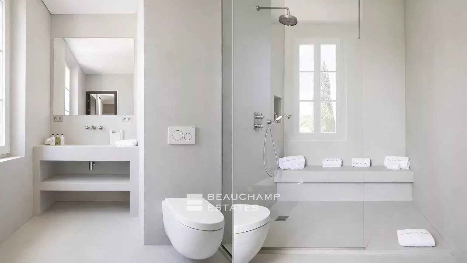 Offering almost 700m2 spread over 2 floors, the Bastide can accomodate 14 people comfortably. It has 7 double bedrooms, 5 bathrooms, a gym, a fully equipped open big kitchen, office and living area.
