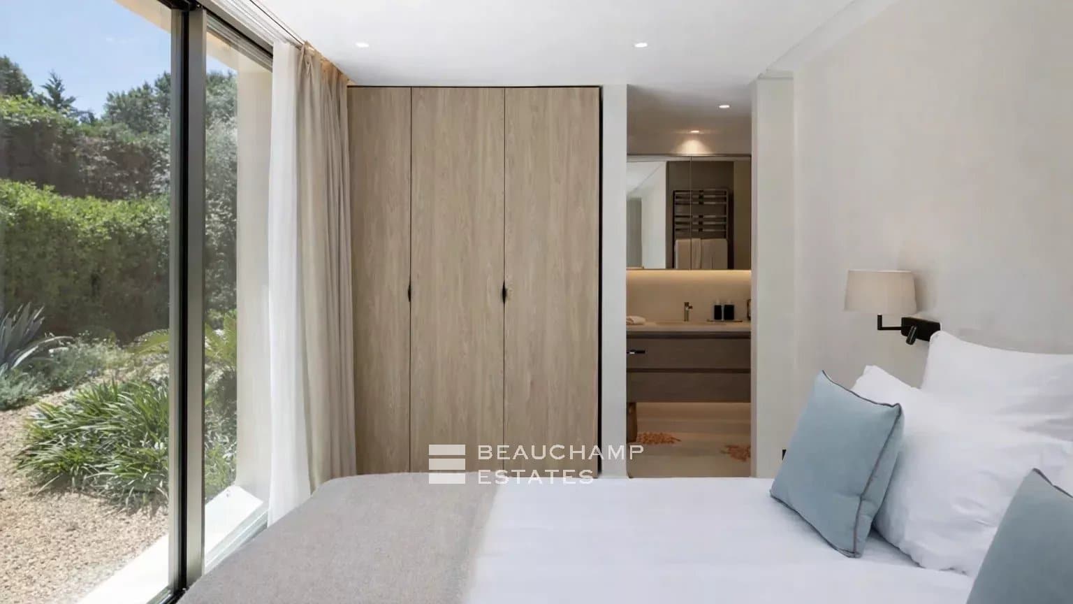 The villa offers generous volumes, abundant natural light, and high-end amenities throughout. It features 6 ensuite bedrooms, including a magnificent master suite on the first floor with two bathrooms, two dressing rooms, and a private terrace overlooking the sea. The five additional guest bedrooms are located on the main living level for easy access to both the indoor and outdoor spaces.