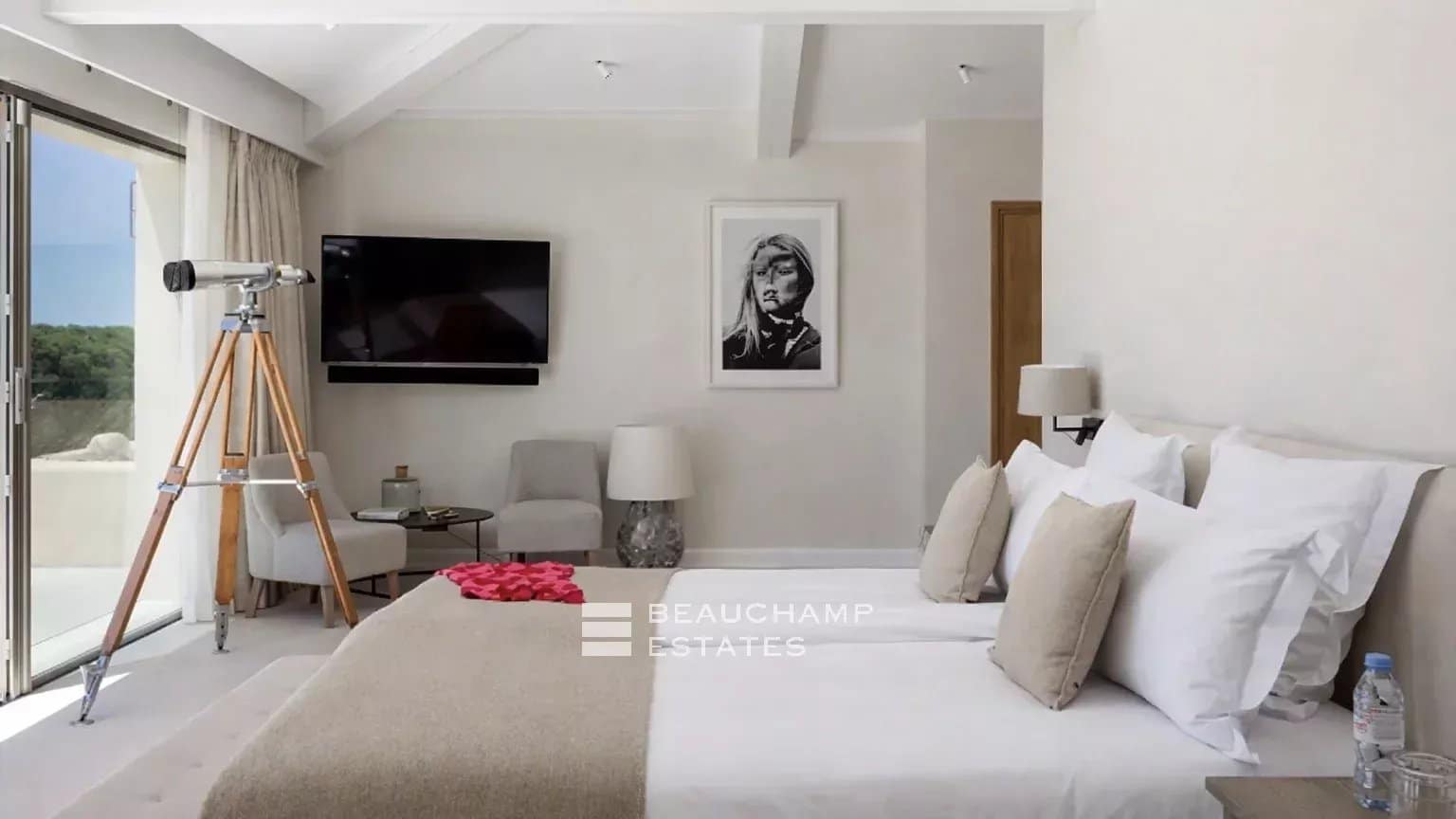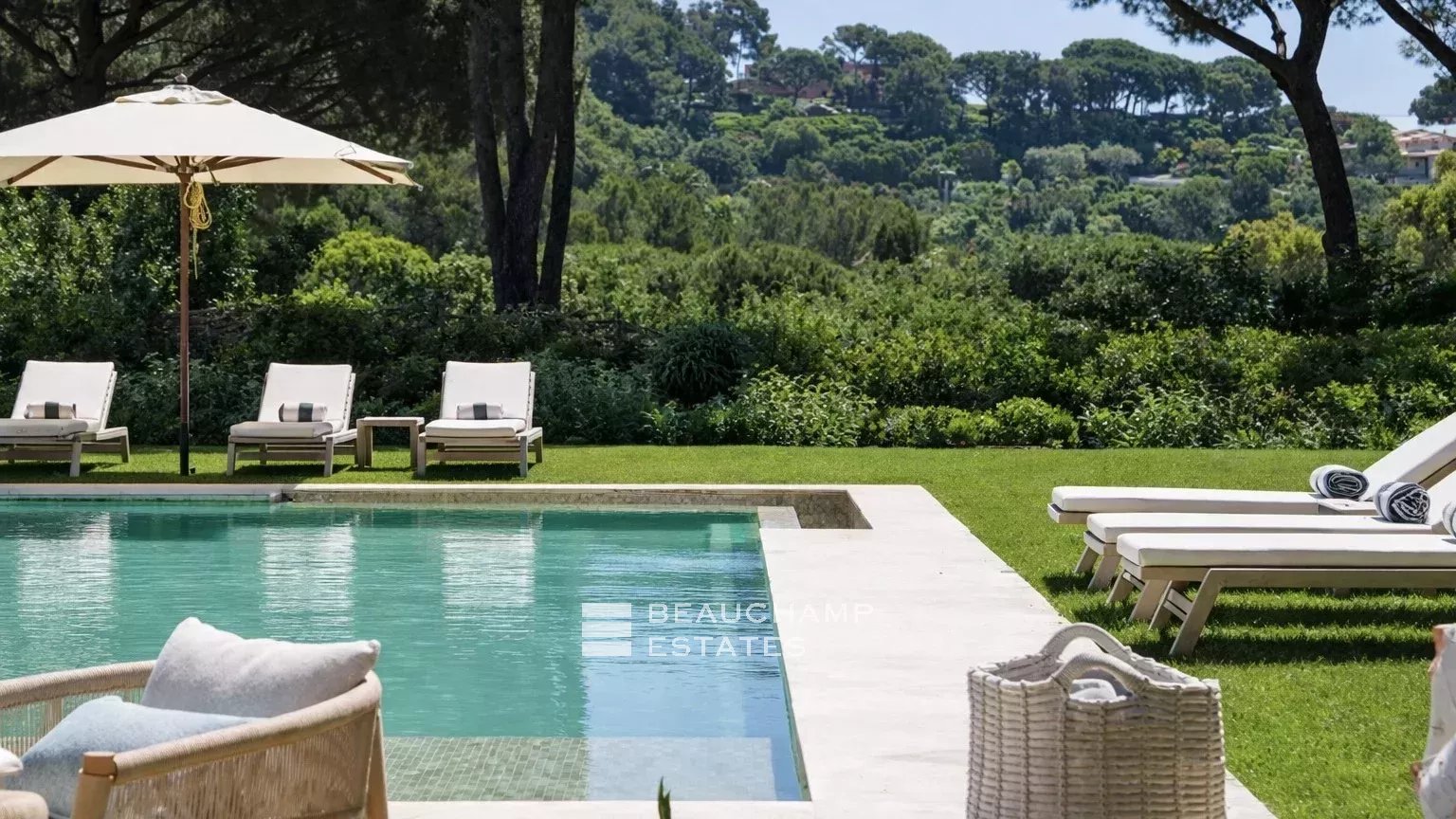 Just a two-minute walk from the famous Tahiti Beach, it enjoys sweeping sea views over the Bay of Pampelonne in a quiet, exclusive setting—perfect for a relaxing and refined holiday.