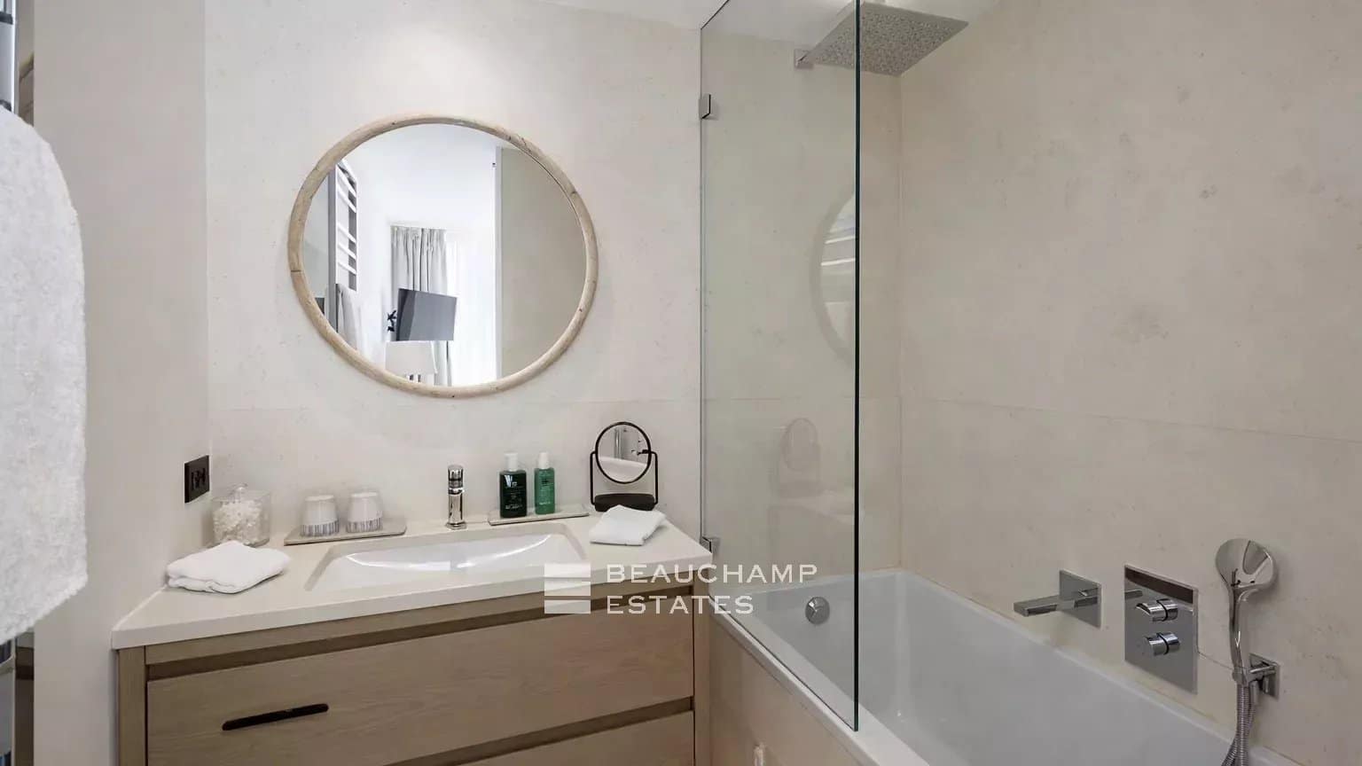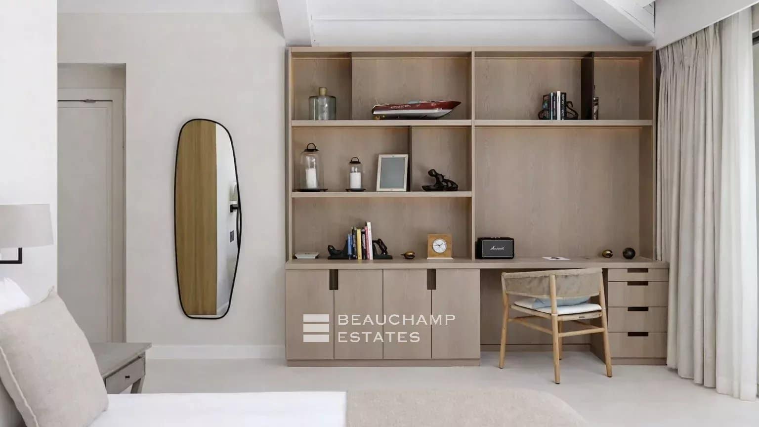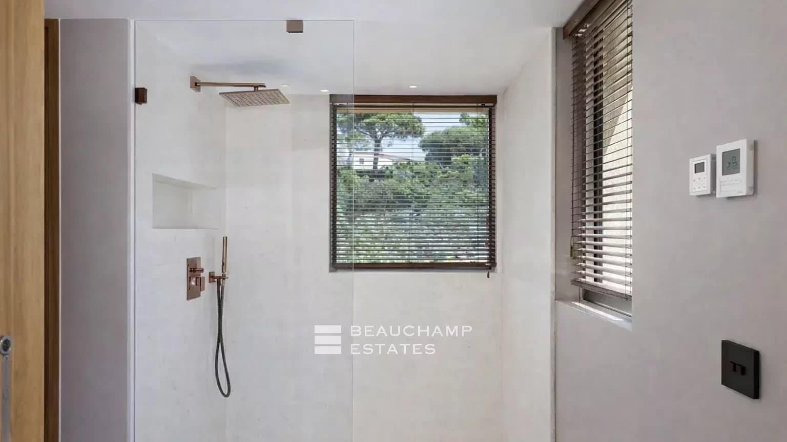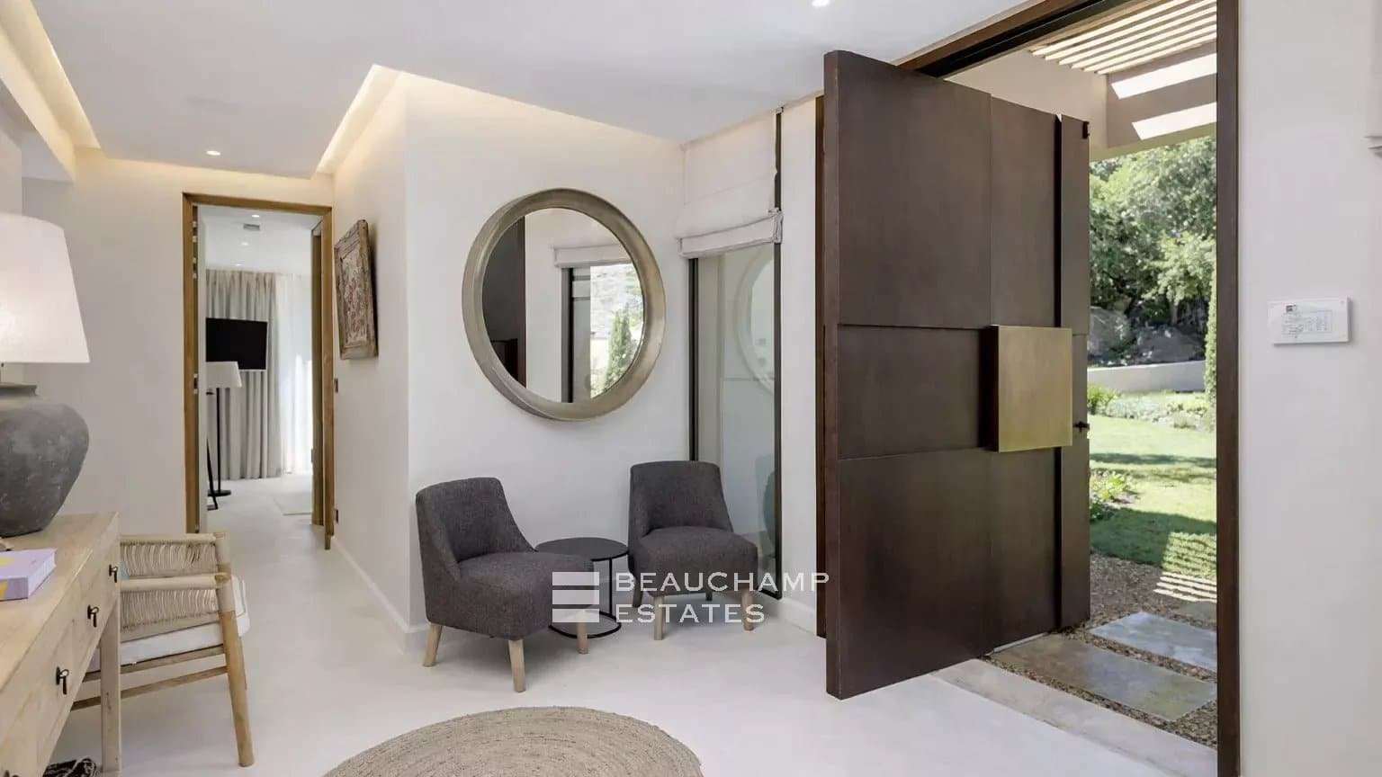 Designed with well-being in mind, the villa includes a professional gym fitted with Gym 80 equipment and a state-of-the-art fresh air circulation system, as well as a hammam and a massage room.