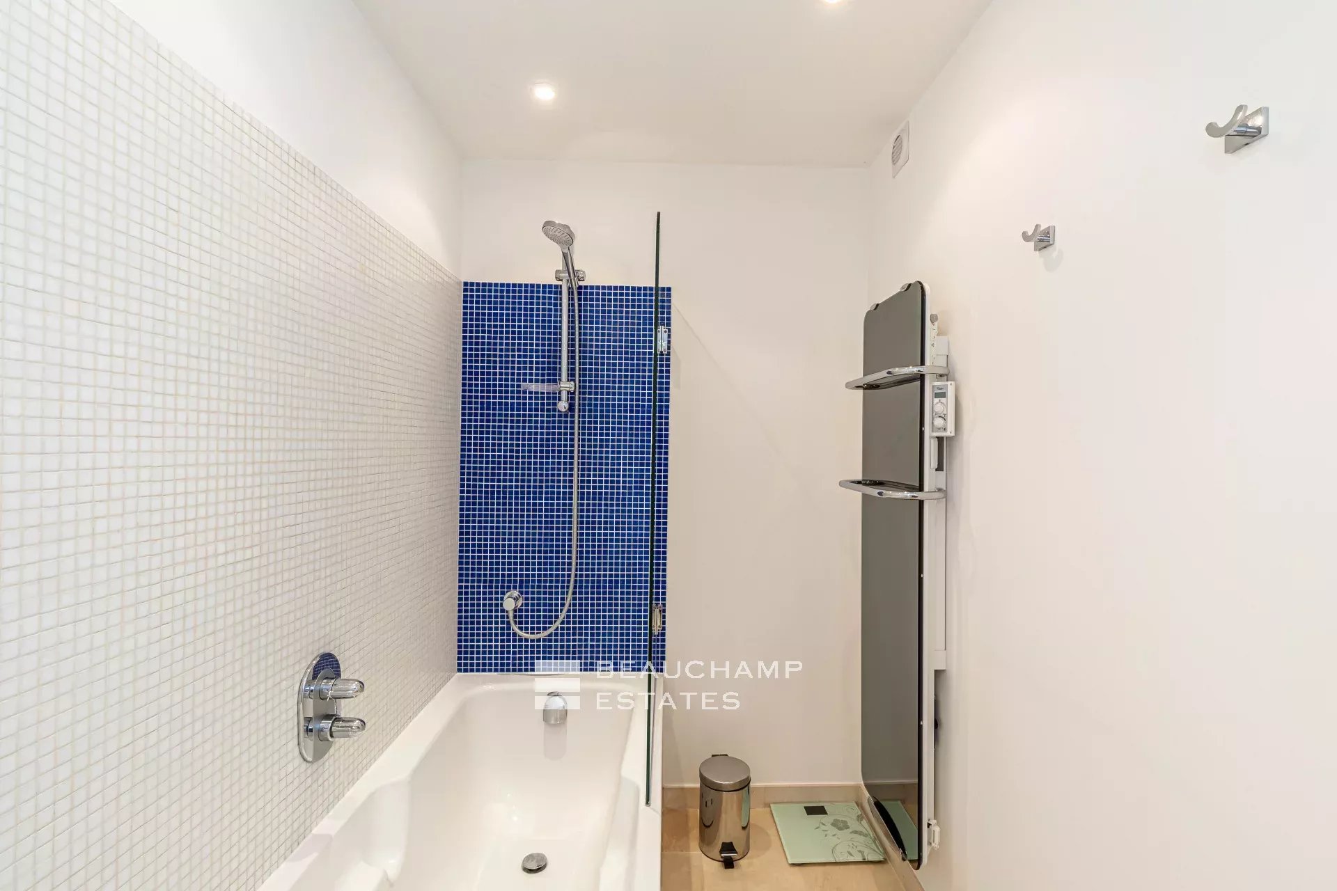 • Bedroom 2: children’s or staff bedroom (single bed), en suite bathroom with bath and WC, television, writing desk and access to main terrace.