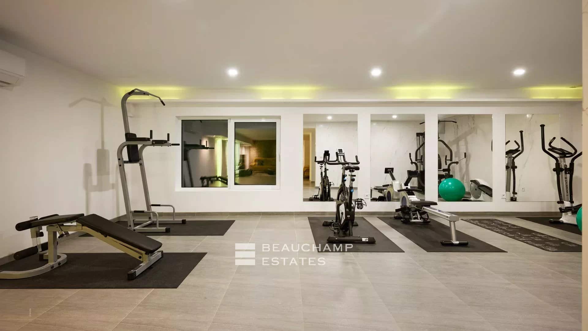 The landscaped garden covers approximately 2,500 sq.m and features a 15 x 5.50 m swimming pool.