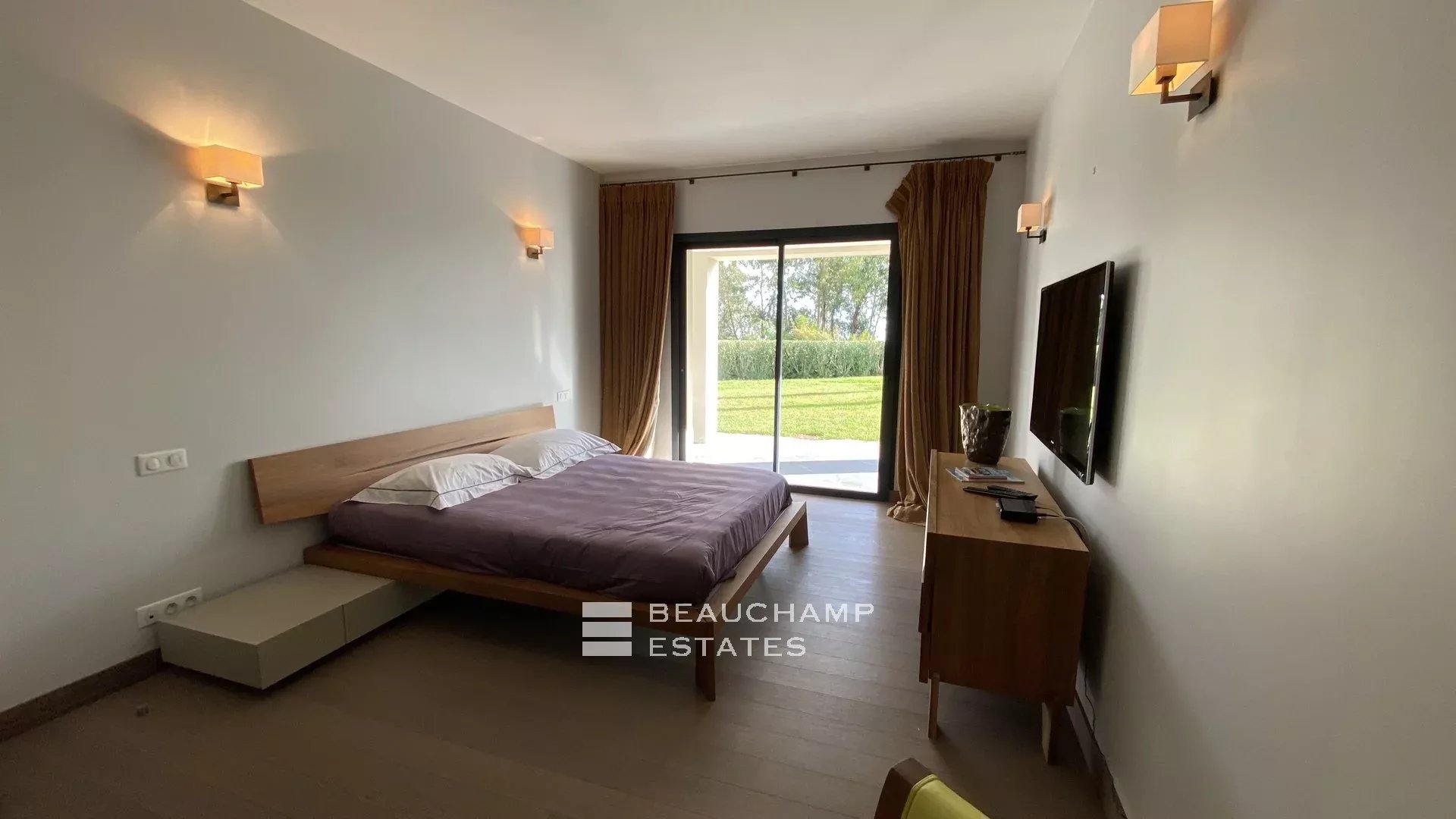 Extended by a flat landscaped garden, the property has a beautiful swimming pool.