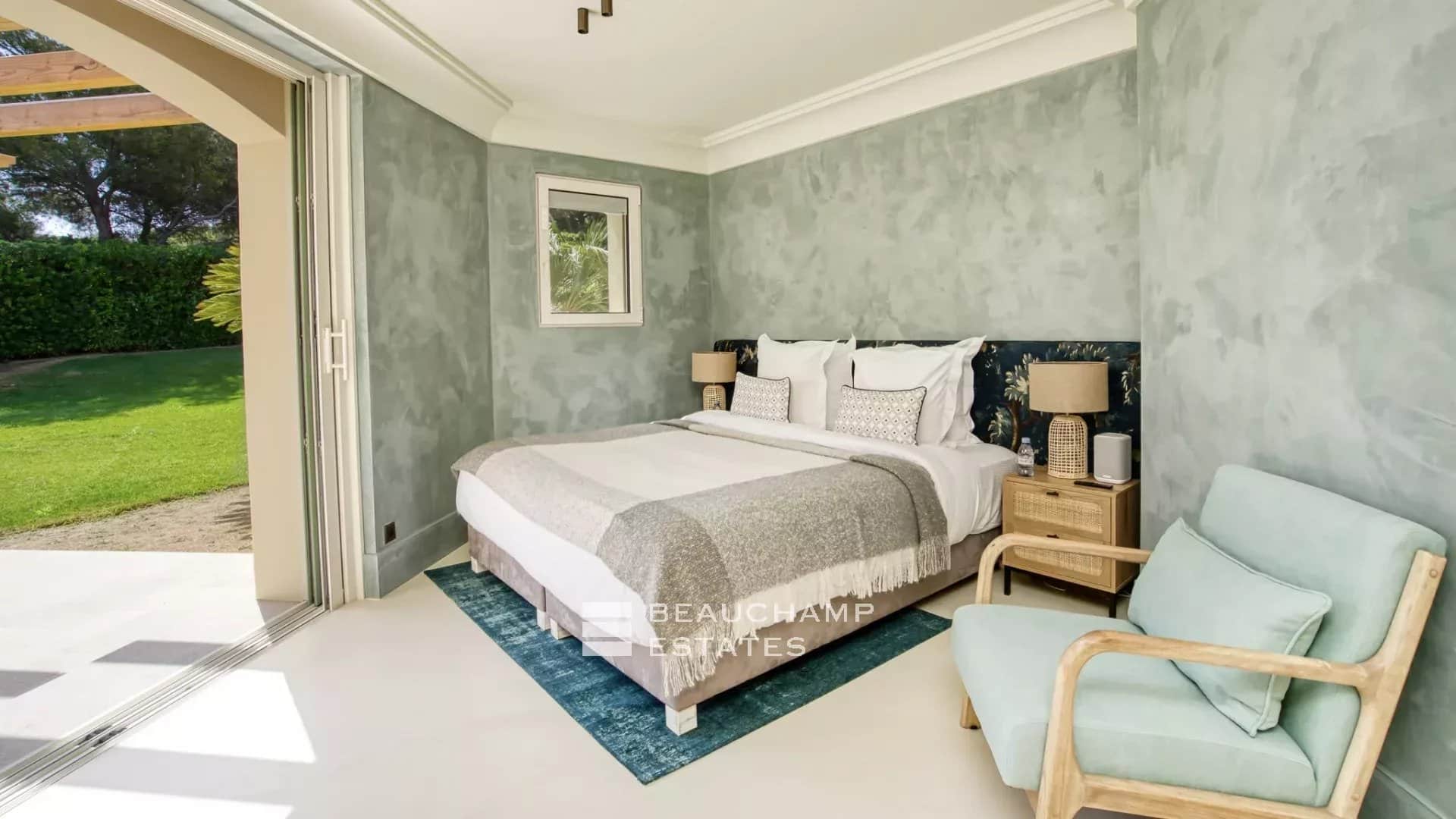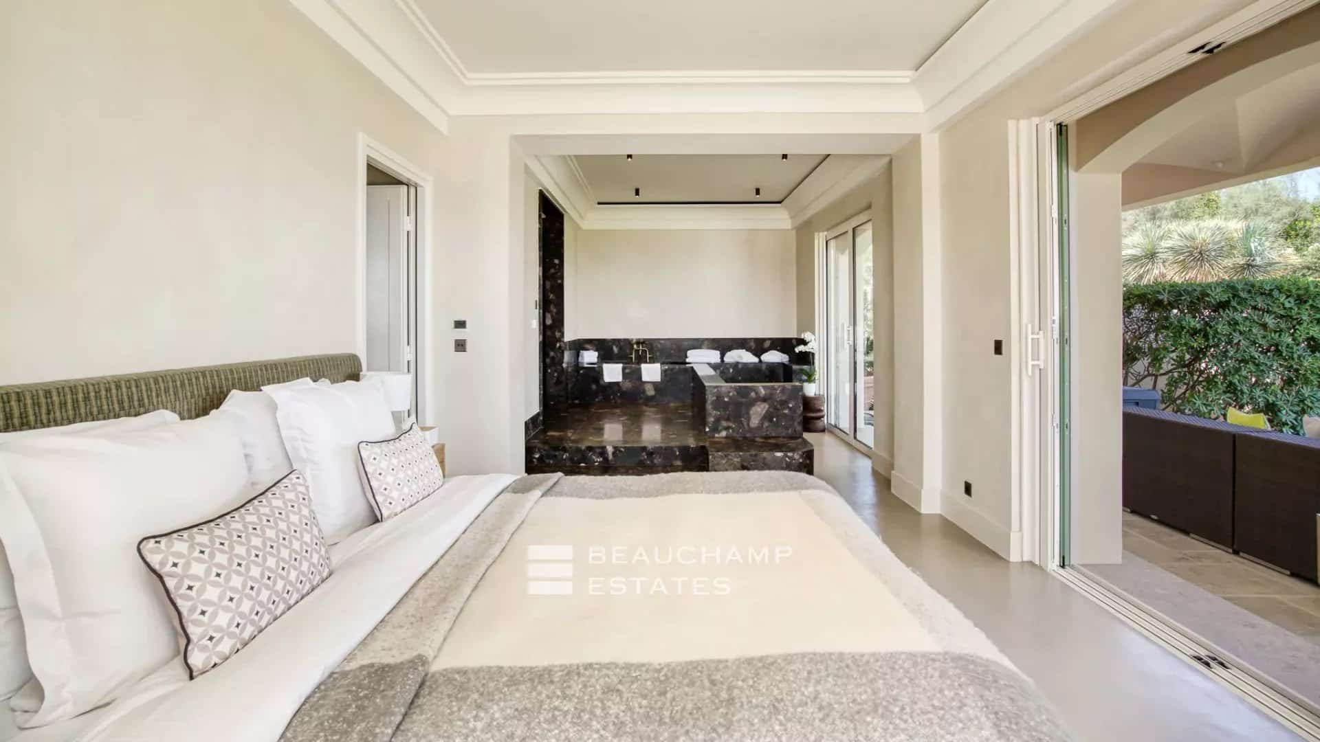 Located within the prestigious and private Les Parcs de Saint-Tropez domain, this exceptional property enjoys a prime setting just 8 minutes from the centre of Saint-Tropez and 10 minutes from the Pampelonne beaches.