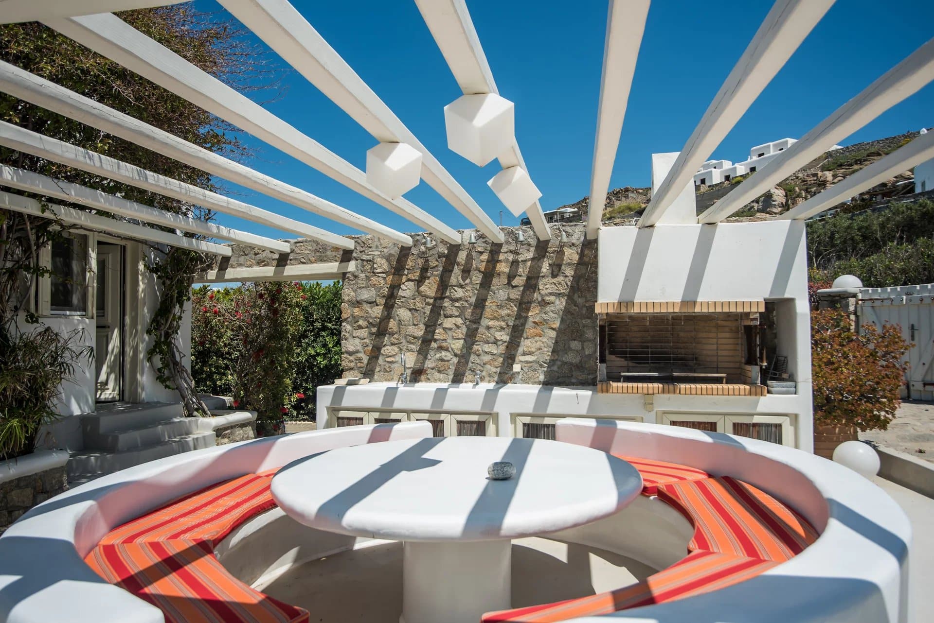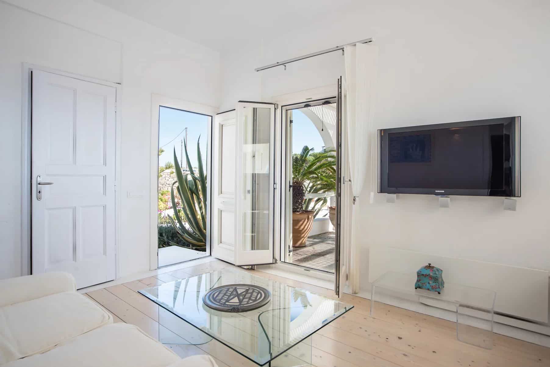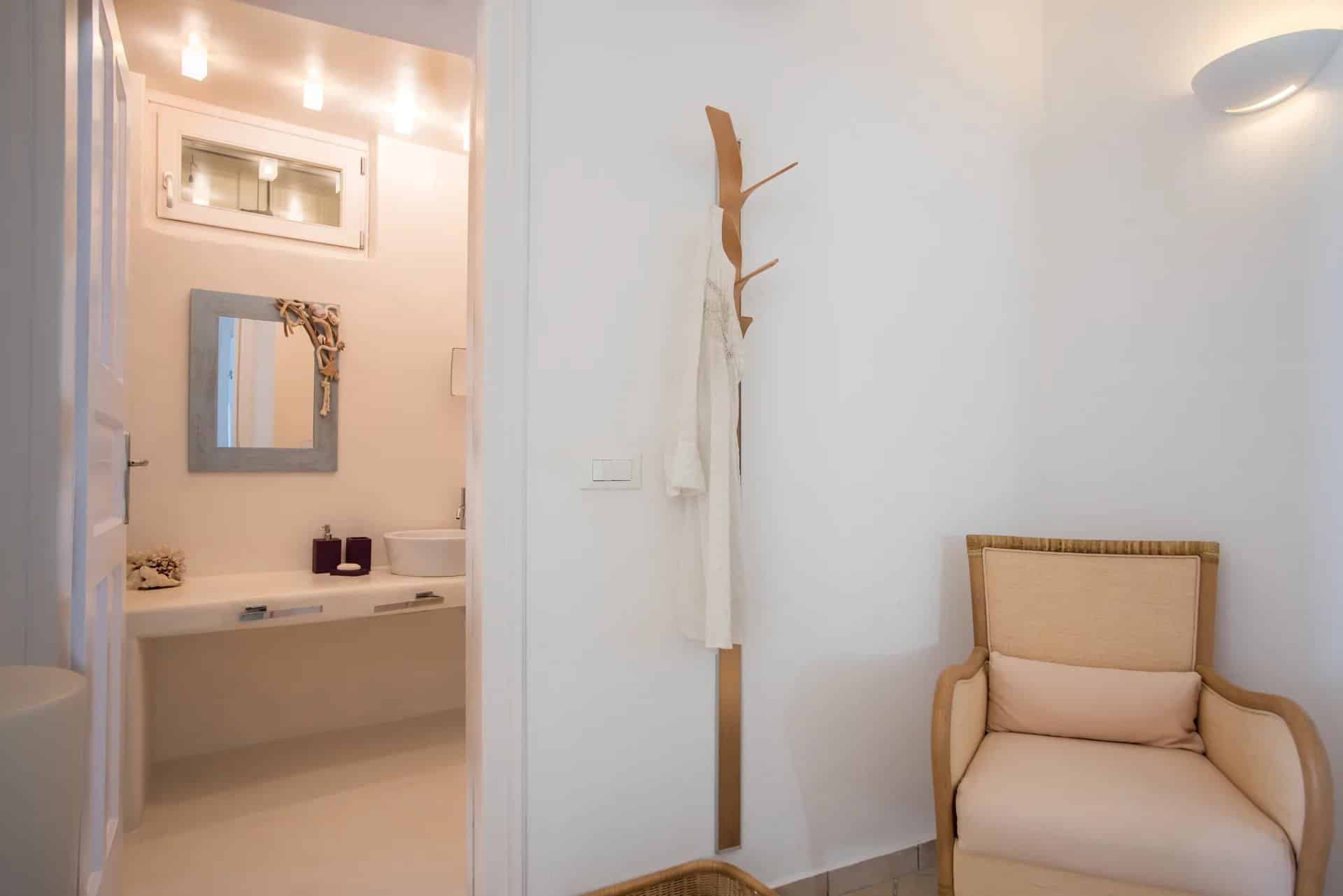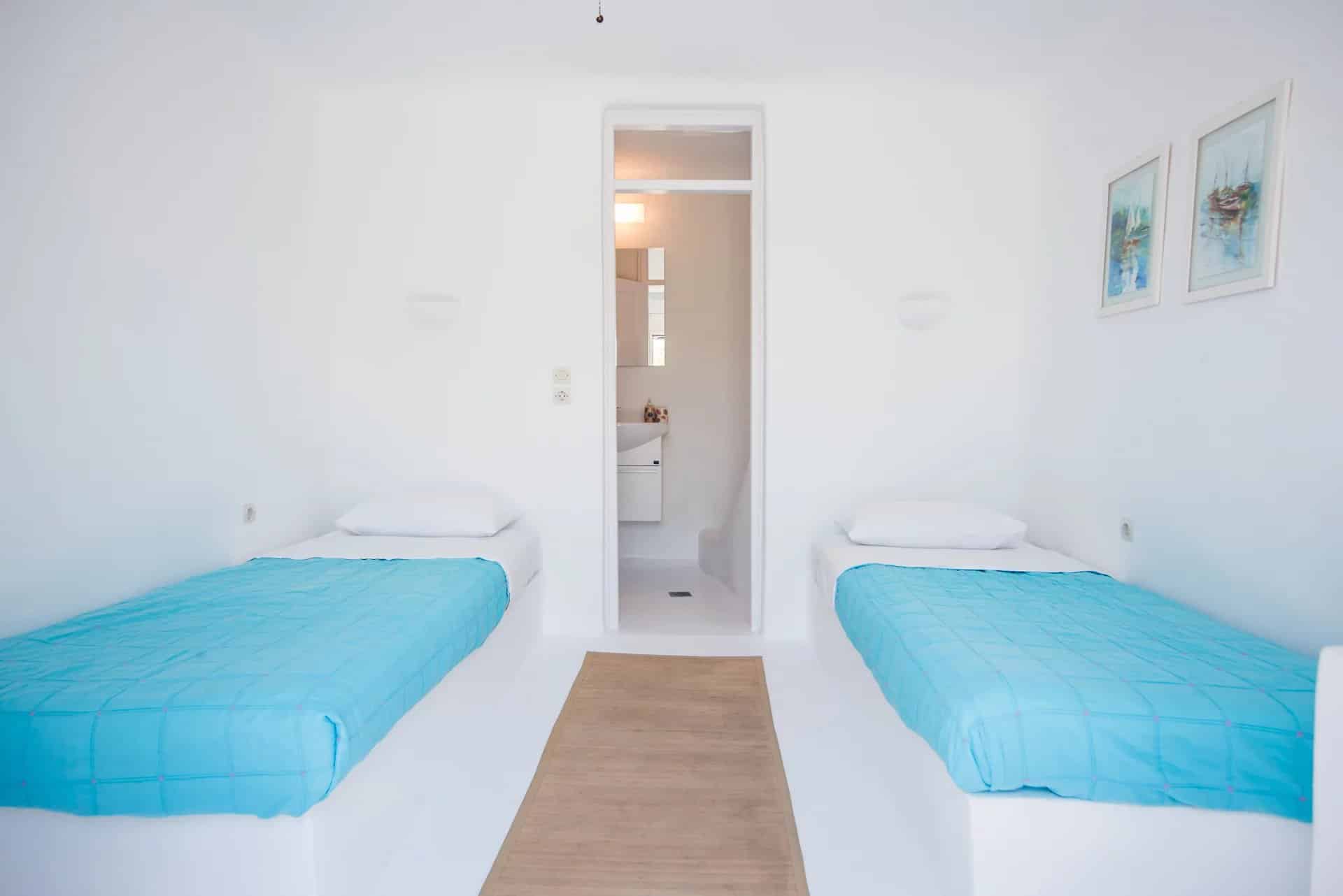 Additionally, a guest house with an independent entrance offers a bedroom with two built-in single beds and an en-suite bathroom, ensuring privacy and comfort for guests. Villa Alia epitomizes luxury living in Mykonos, offering an unforgettable retreat in an enchanting setting.
