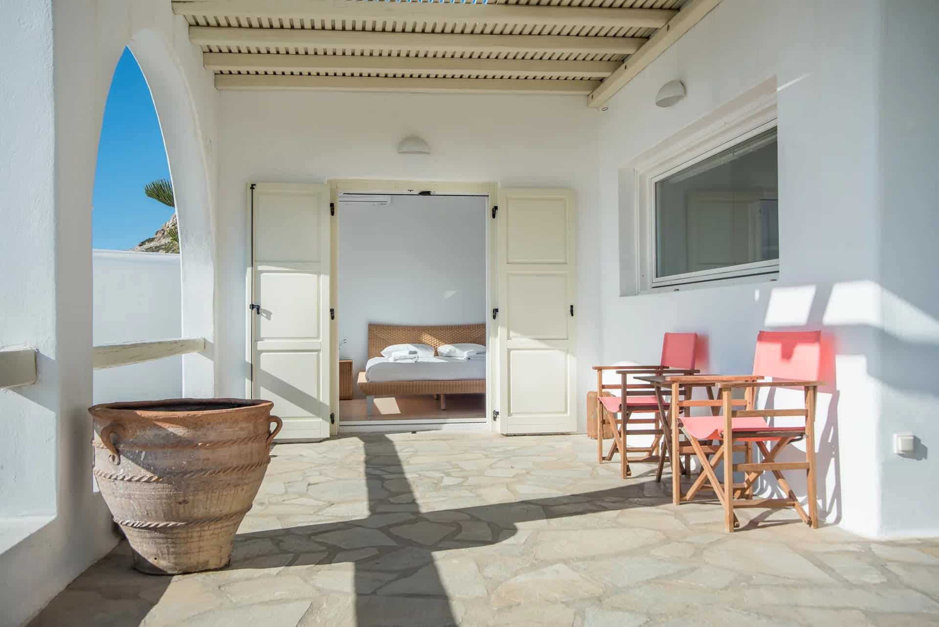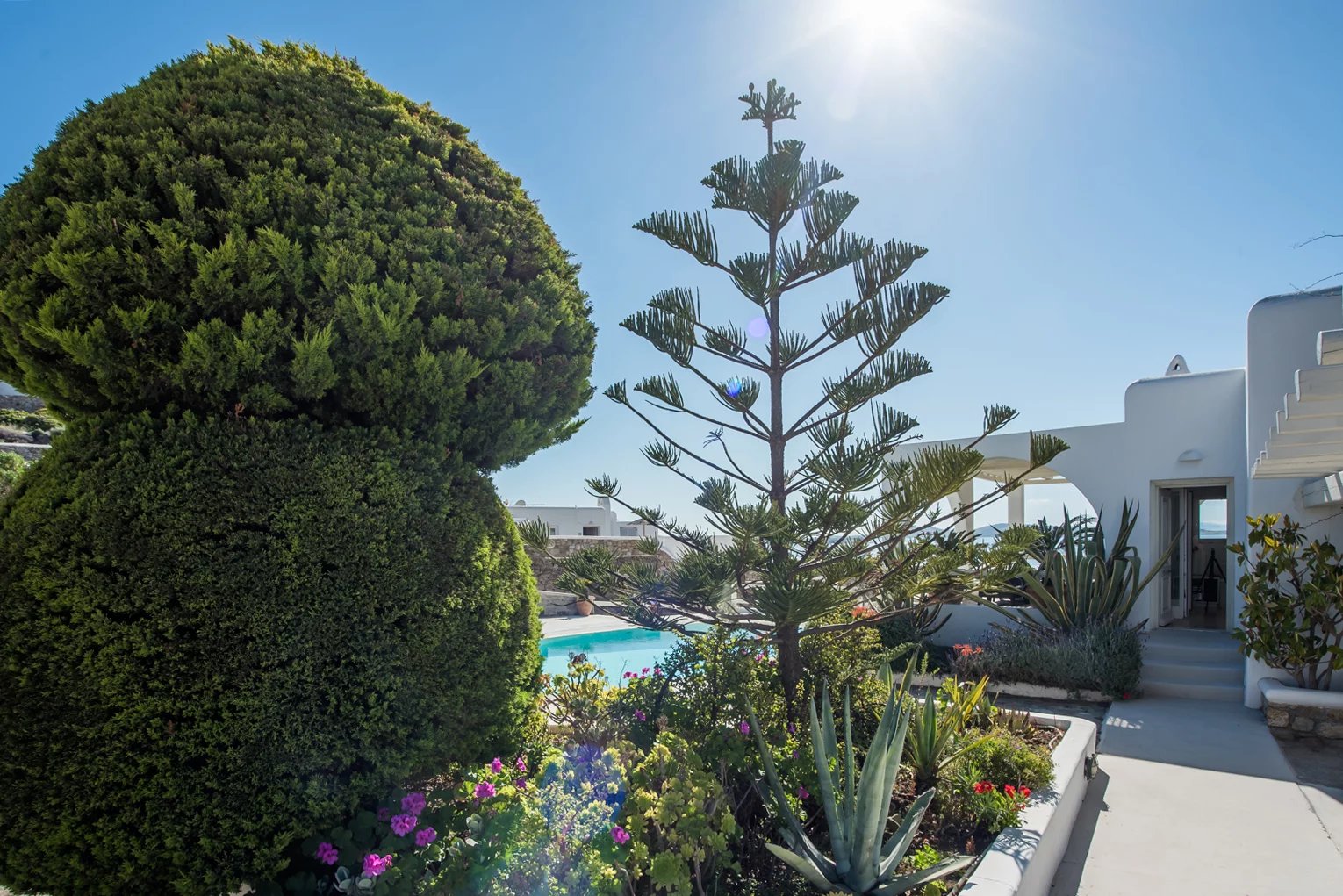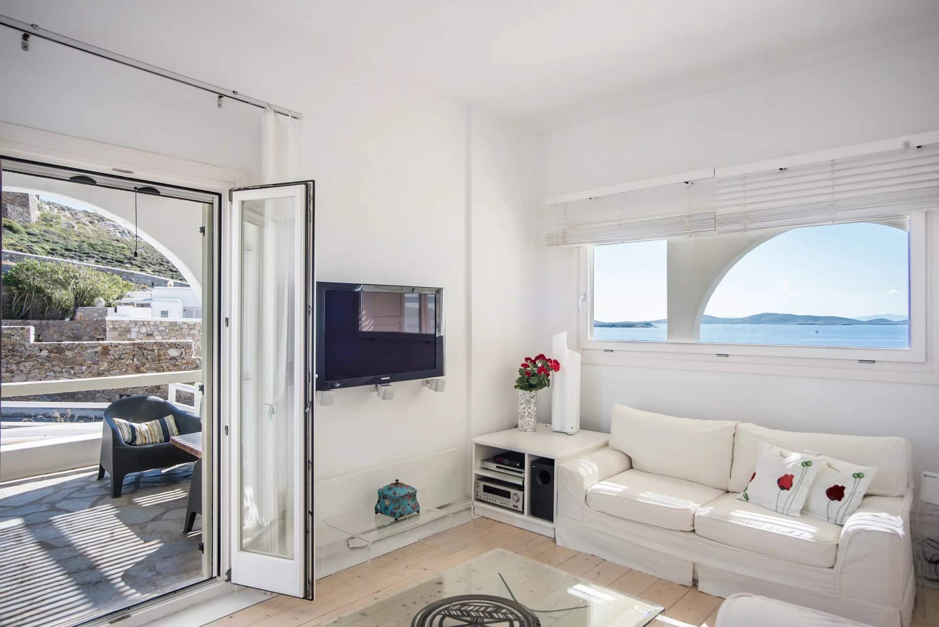 Additionally, a guest house with an independent entrance offers a bedroom with two built-in single beds and an en-suite bathroom, ensuring privacy and comfort for guests. Villa Alia epitomizes luxury living in Mykonos, offering an unforgettable retreat in an enchanting setting.