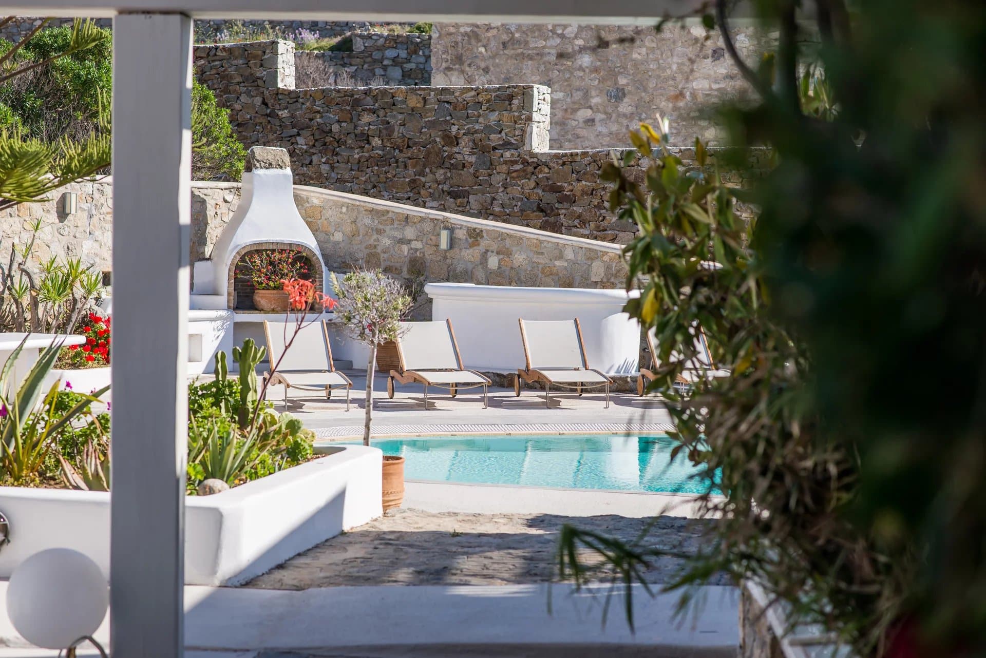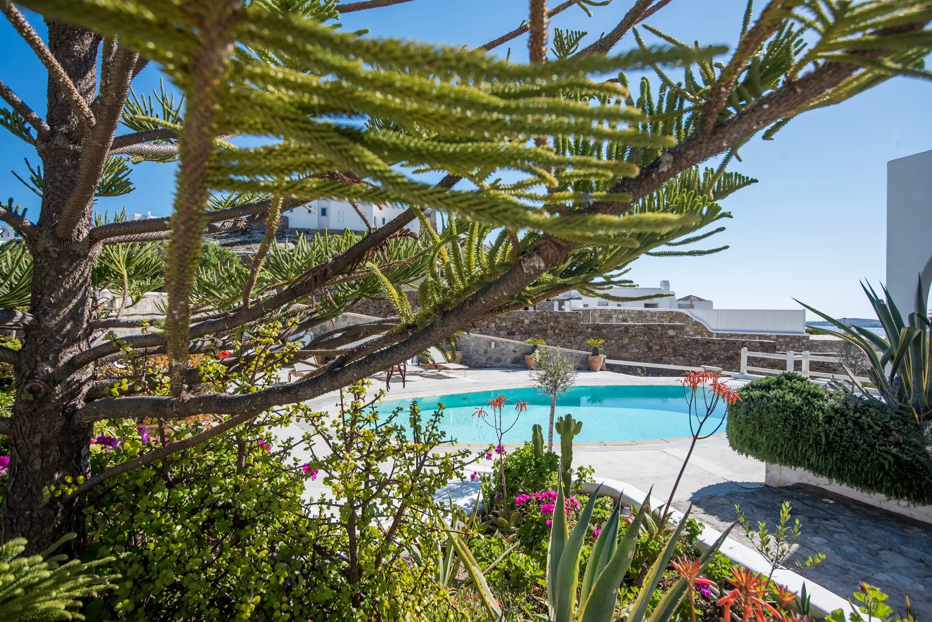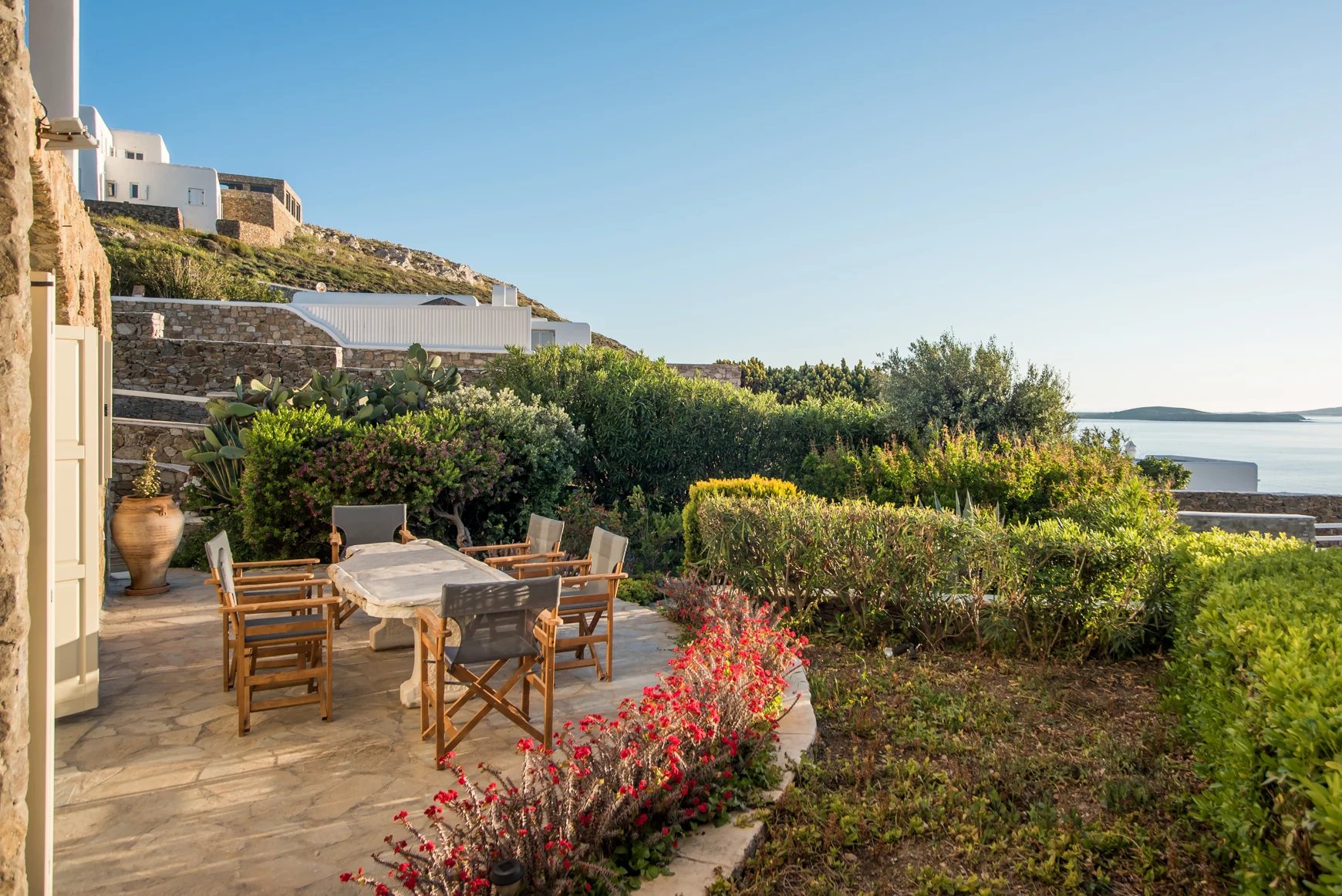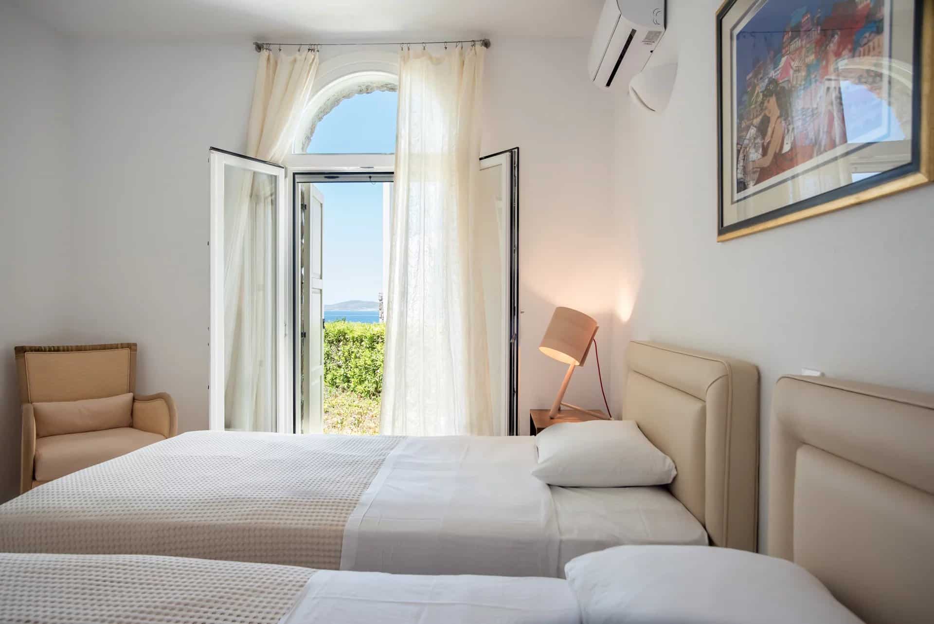 Additionally, a guest house with an independent entrance offers a bedroom with two built-in single beds and an en-suite bathroom, ensuring privacy and comfort for guests. Villa Alia epitomizes luxury living in Mykonos, offering an unforgettable retreat in an enchanting setting.
