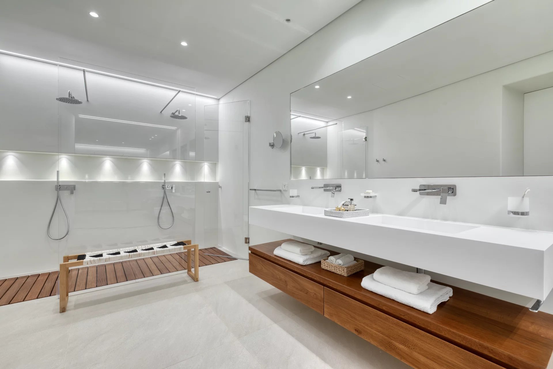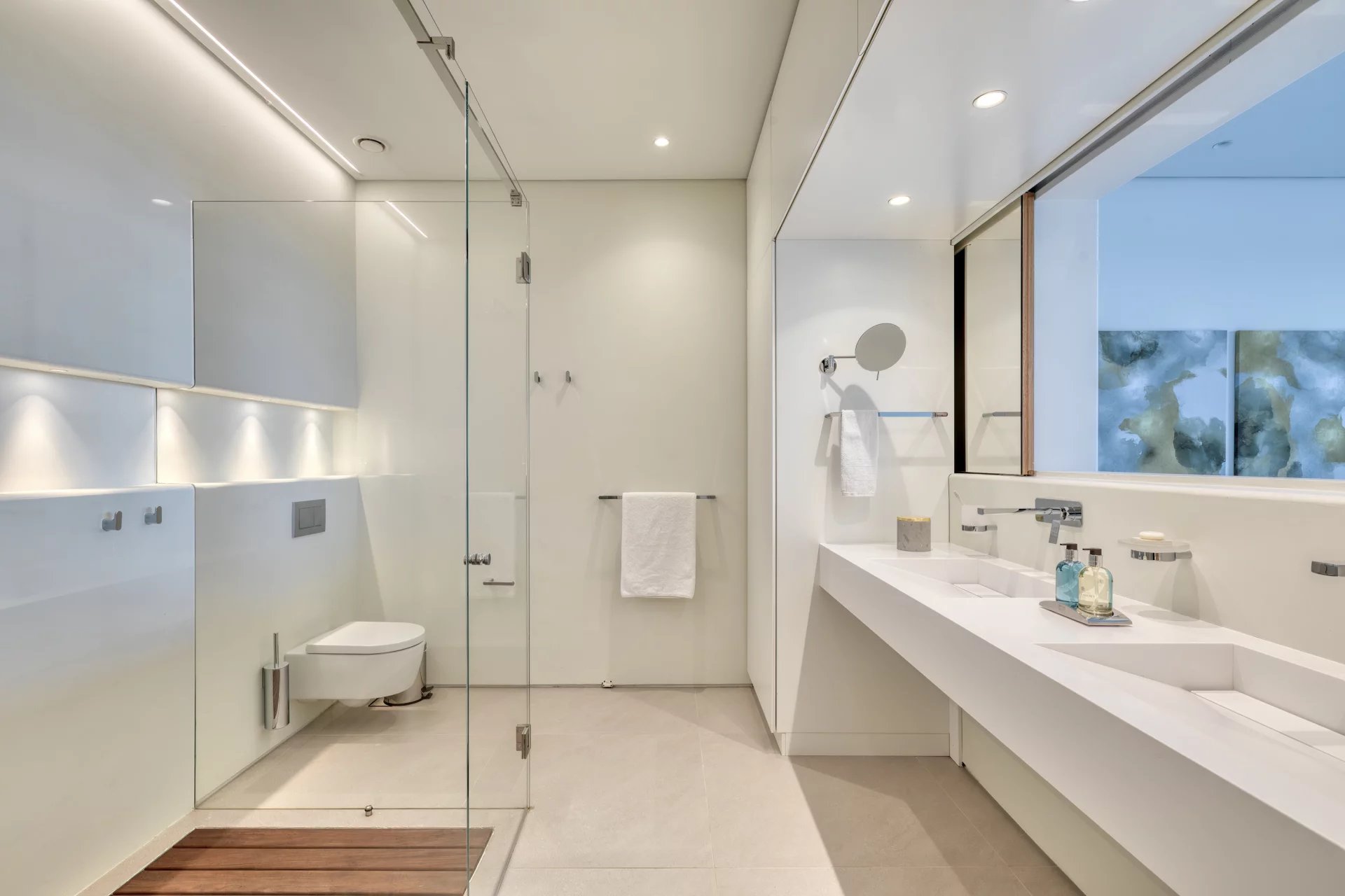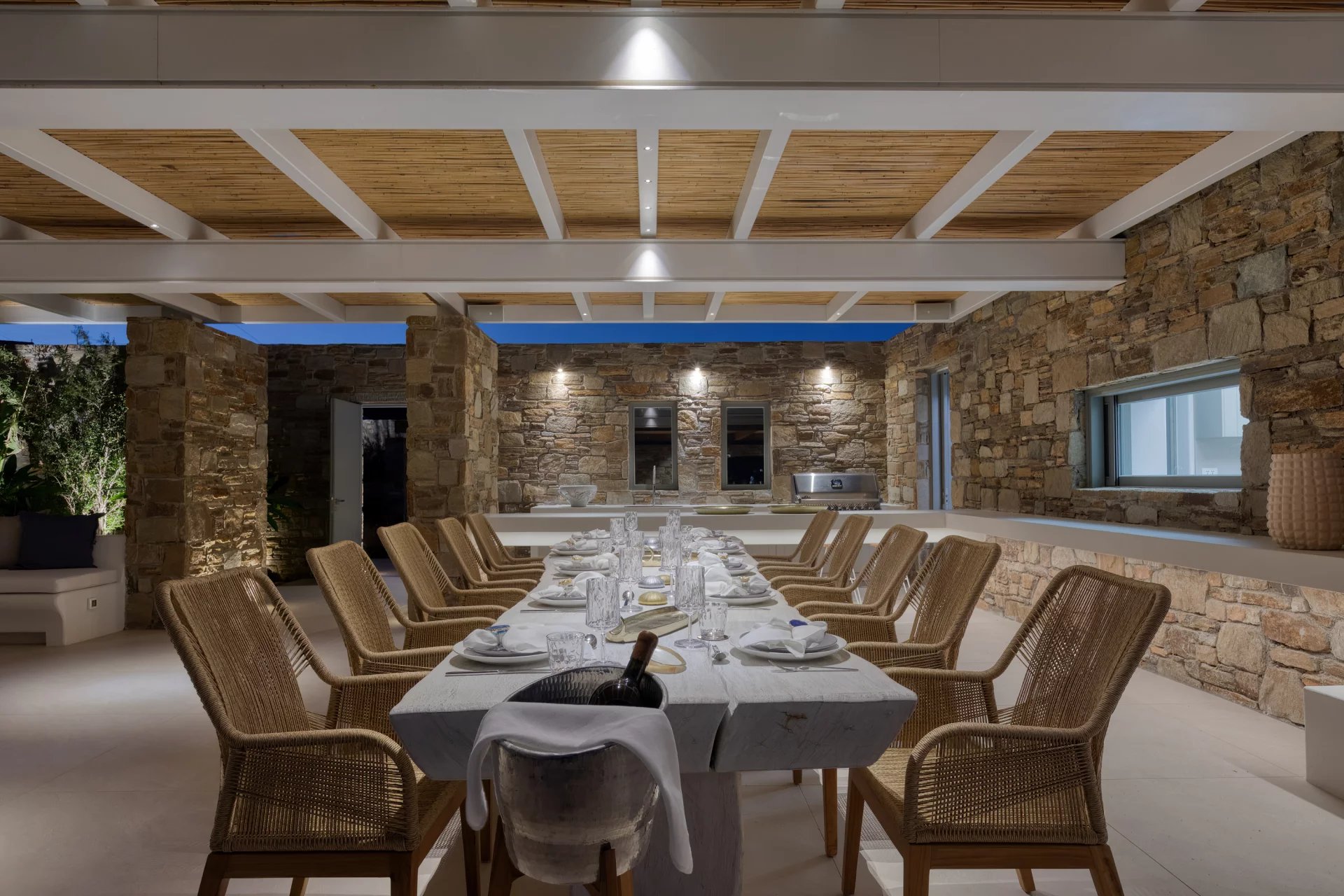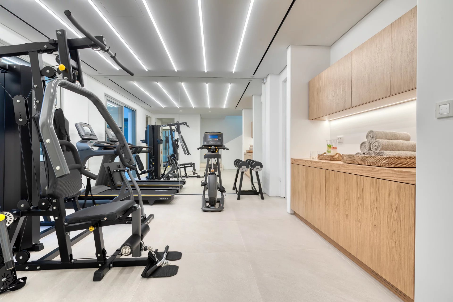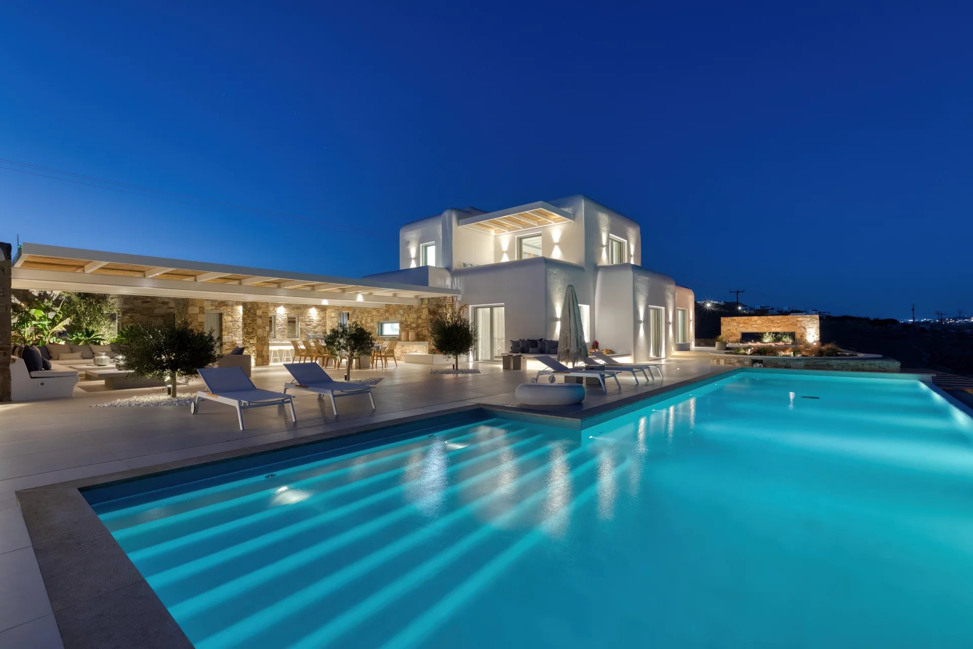 Accommodating up to 16 guests, Villa Amaryllis boasts nine bathrooms and two additional WCs. The villa is outfitted with heated floors, a fire pit, an elevator, a gym, and a sea dock, with 24/7 security for peace of mind.