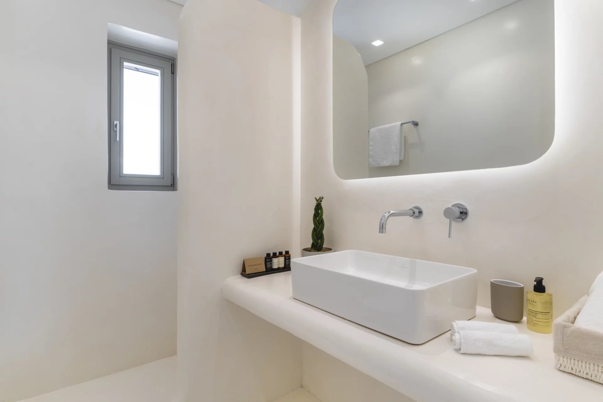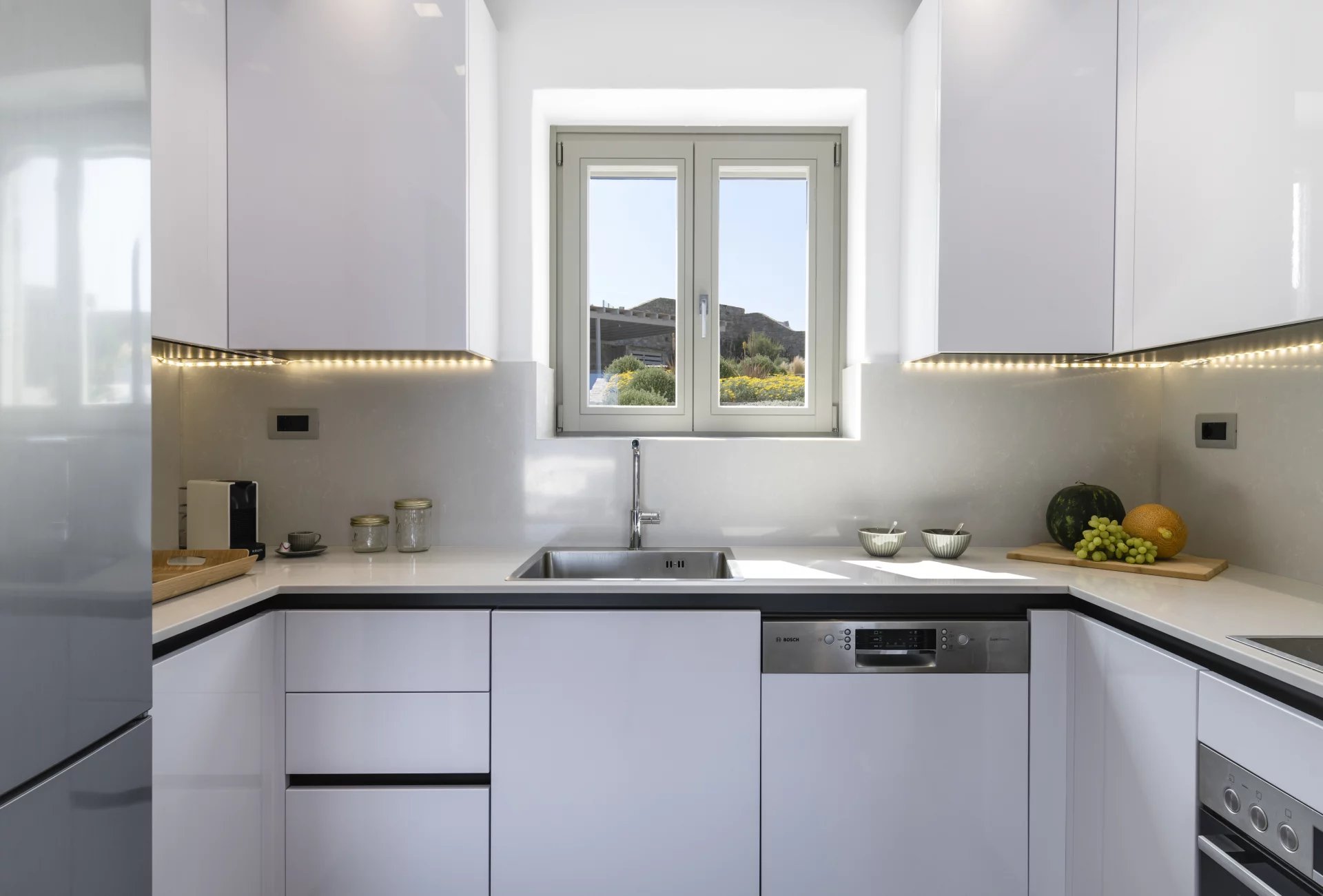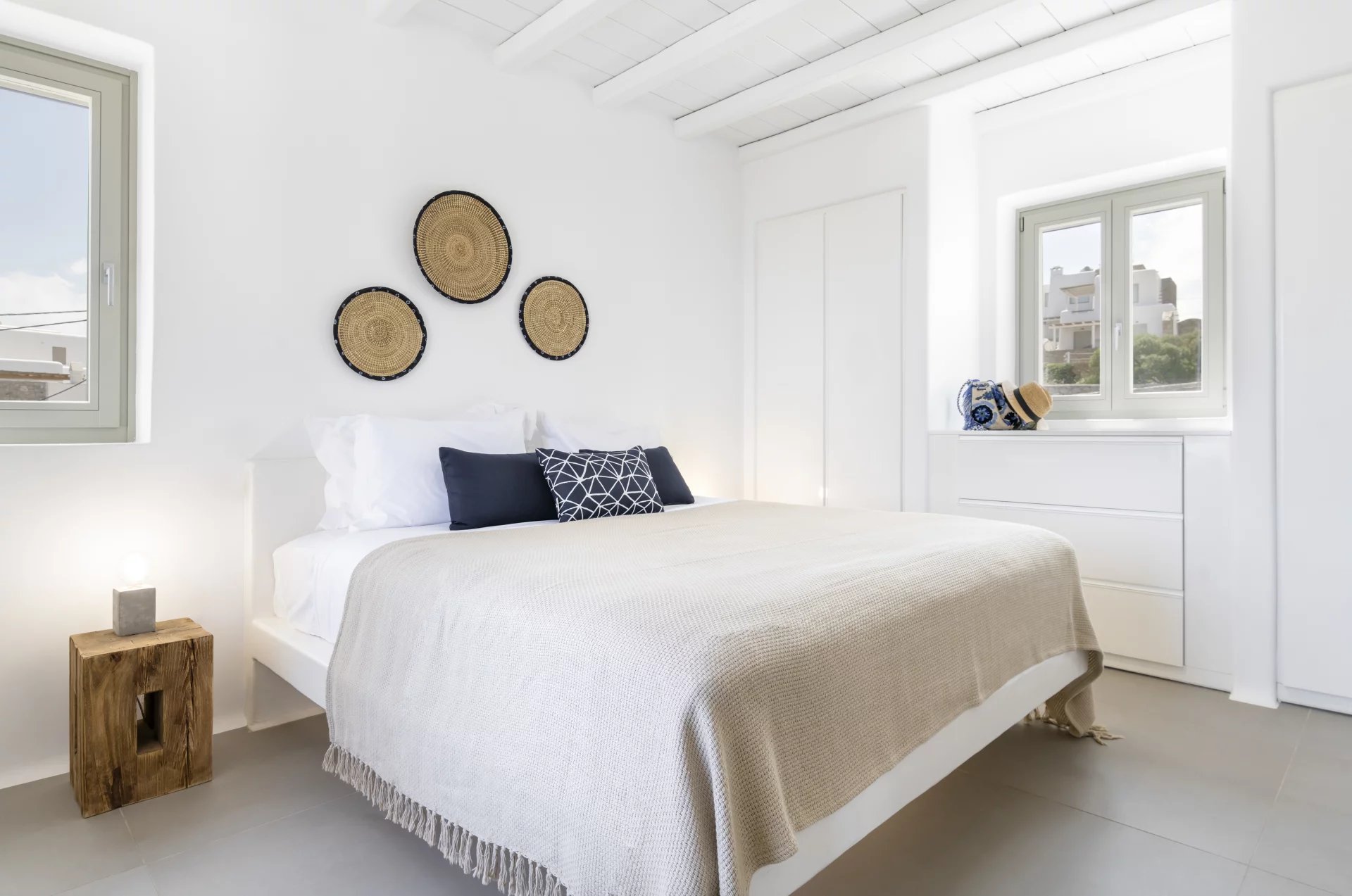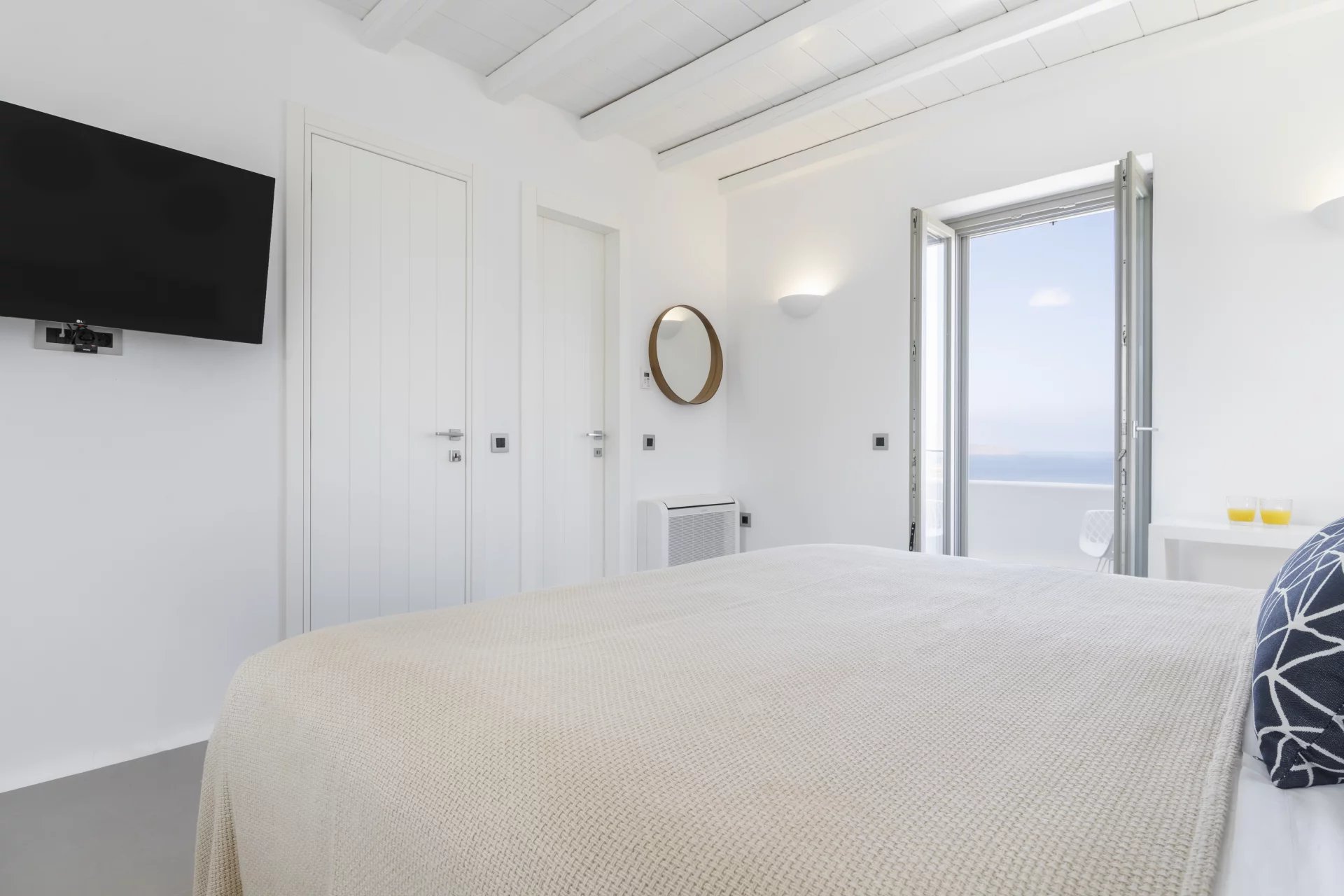 Outdoor amenities include a private swimming pool, sunbeds, outdoor showers, and a lovely lounge area complete with dining and bar spaces sheltered from the wind. Villa Astir is equipped with air conditioning, high-speed Wi-Fi, smart 4K HD TVs, security cameras, an alarm system, safe boxes, and private parking for up to four cars, ensuring a comfortable and secure stay.
