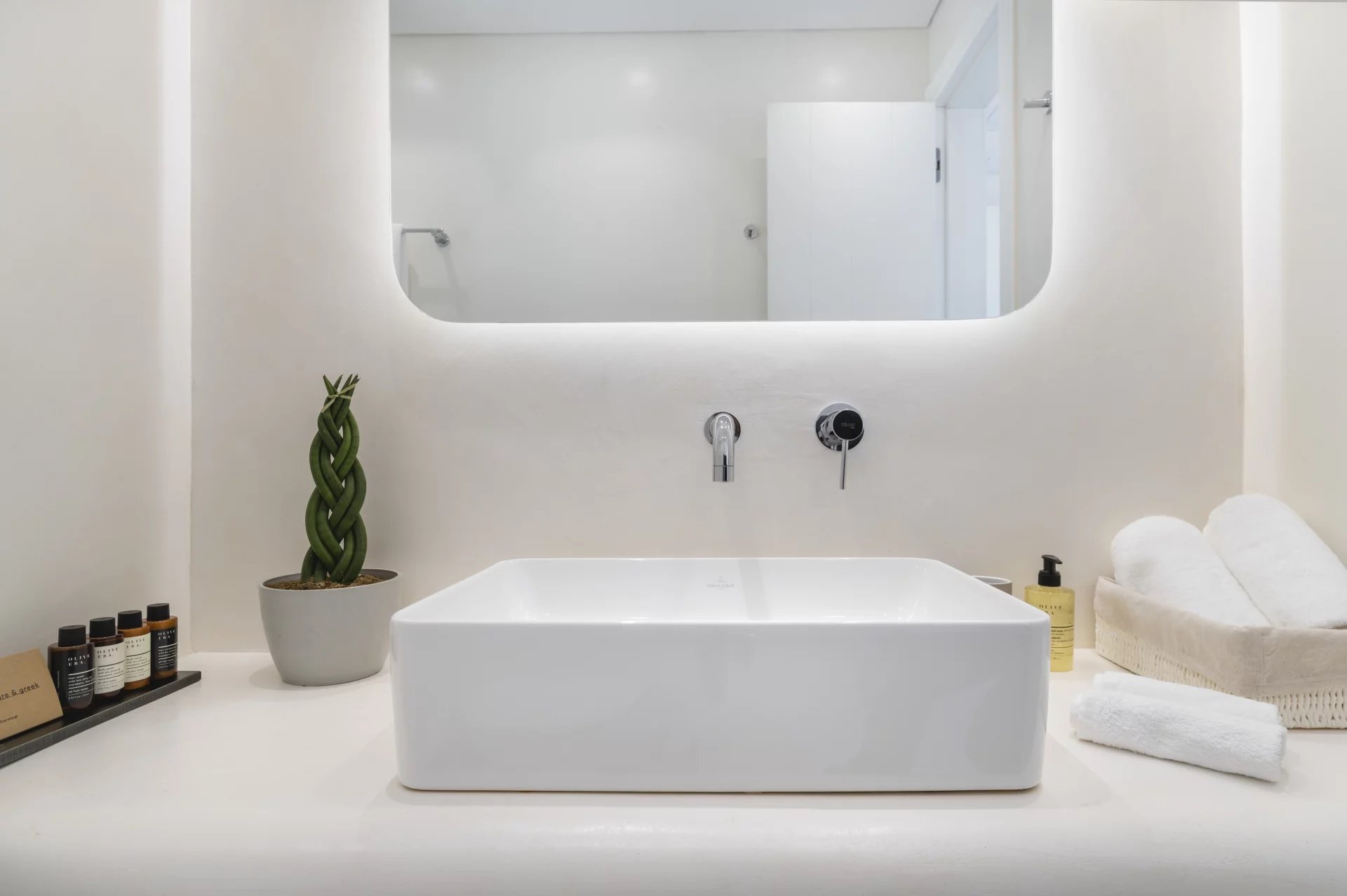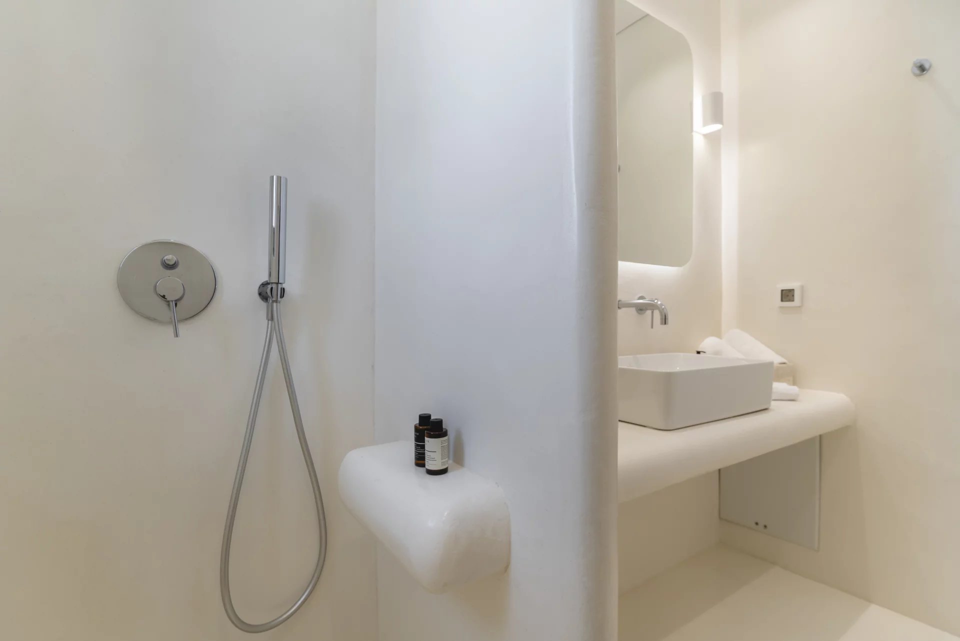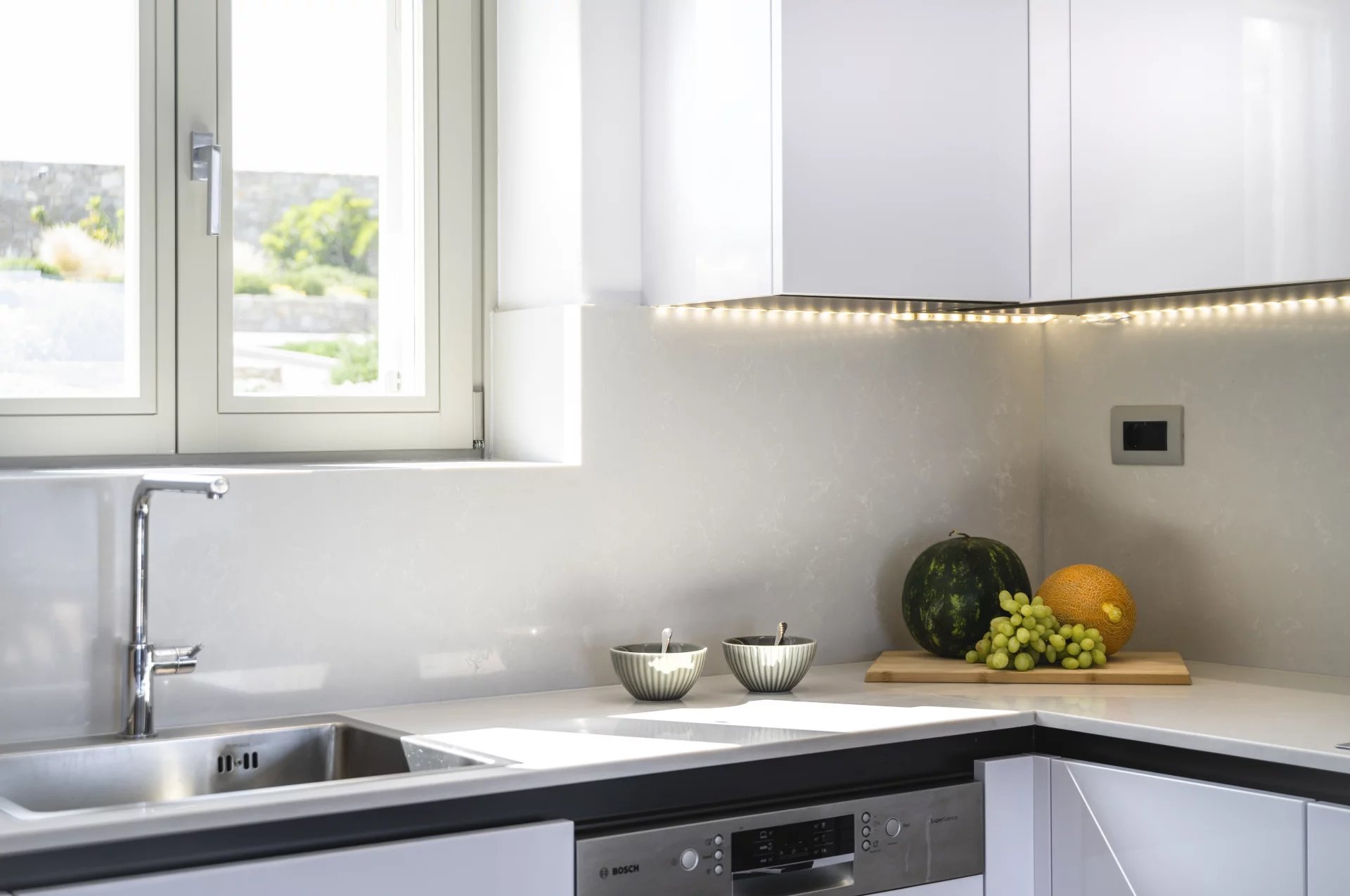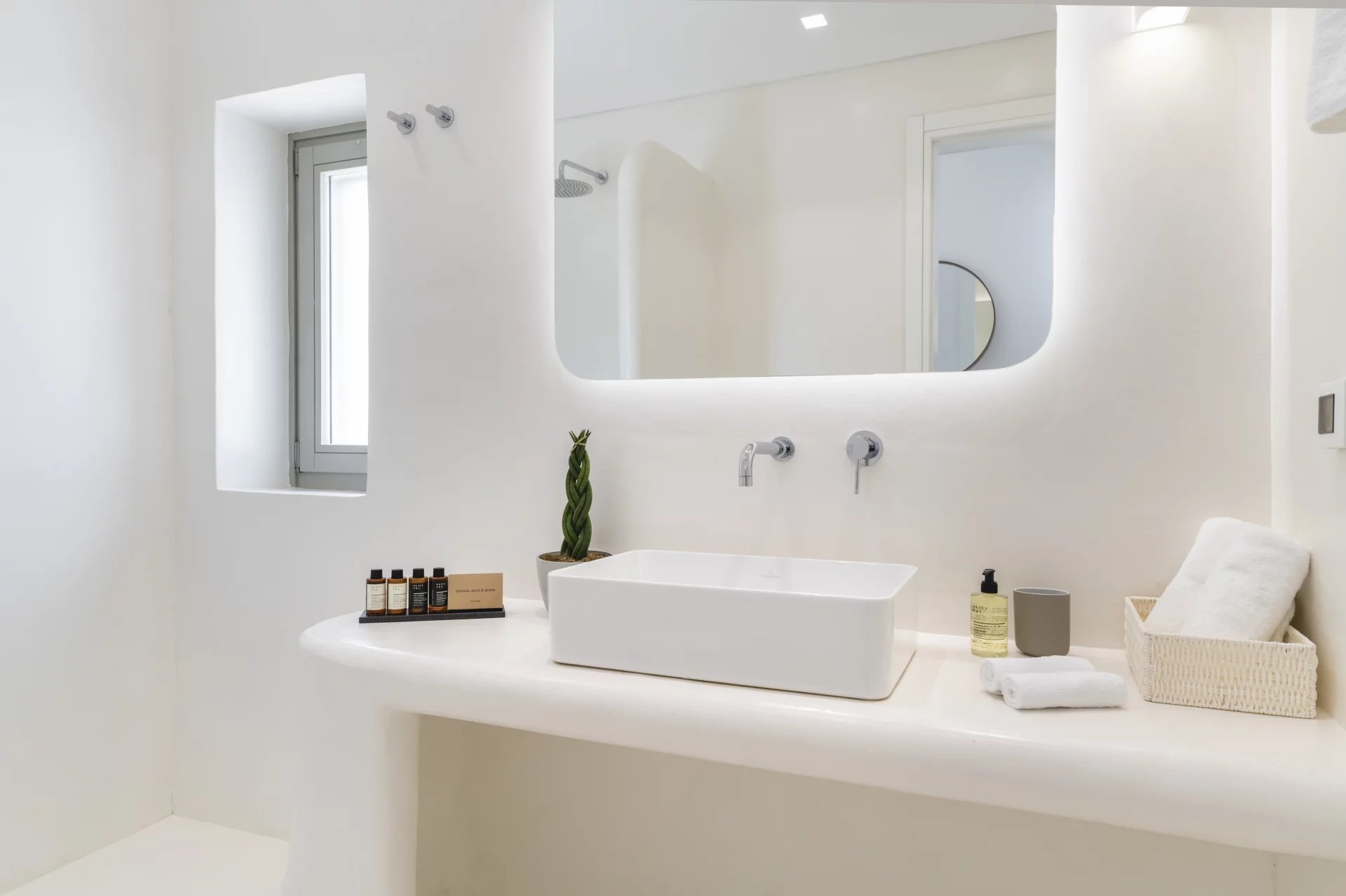 Outdoor amenities include a private swimming pool, sunbeds, outdoor showers, and a lovely lounge area complete with dining and bar spaces sheltered from the wind. Villa Astir is equipped with air conditioning, high-speed Wi-Fi, smart 4K HD TVs, security cameras, an alarm system, safe boxes, and private parking for up to four cars, ensuring a comfortable and secure stay.