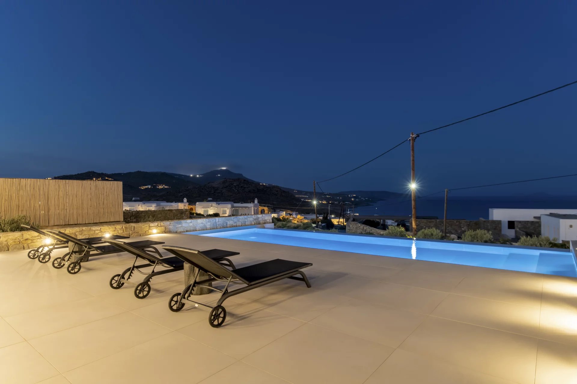 Villa Astir is a stunning Cycladic retreat that seamlessly blends modern comforts with minimal chic and contemporary design. Located in the Kalafatis area, the villa is close to beautiful beaches and vibrant club-restaurants while remaining just a short distance from Mykonos Town. Steps away from the sea, guests can enjoy luxurious outdoor spaces featuring mesmerizing views of the Aegean landscape.