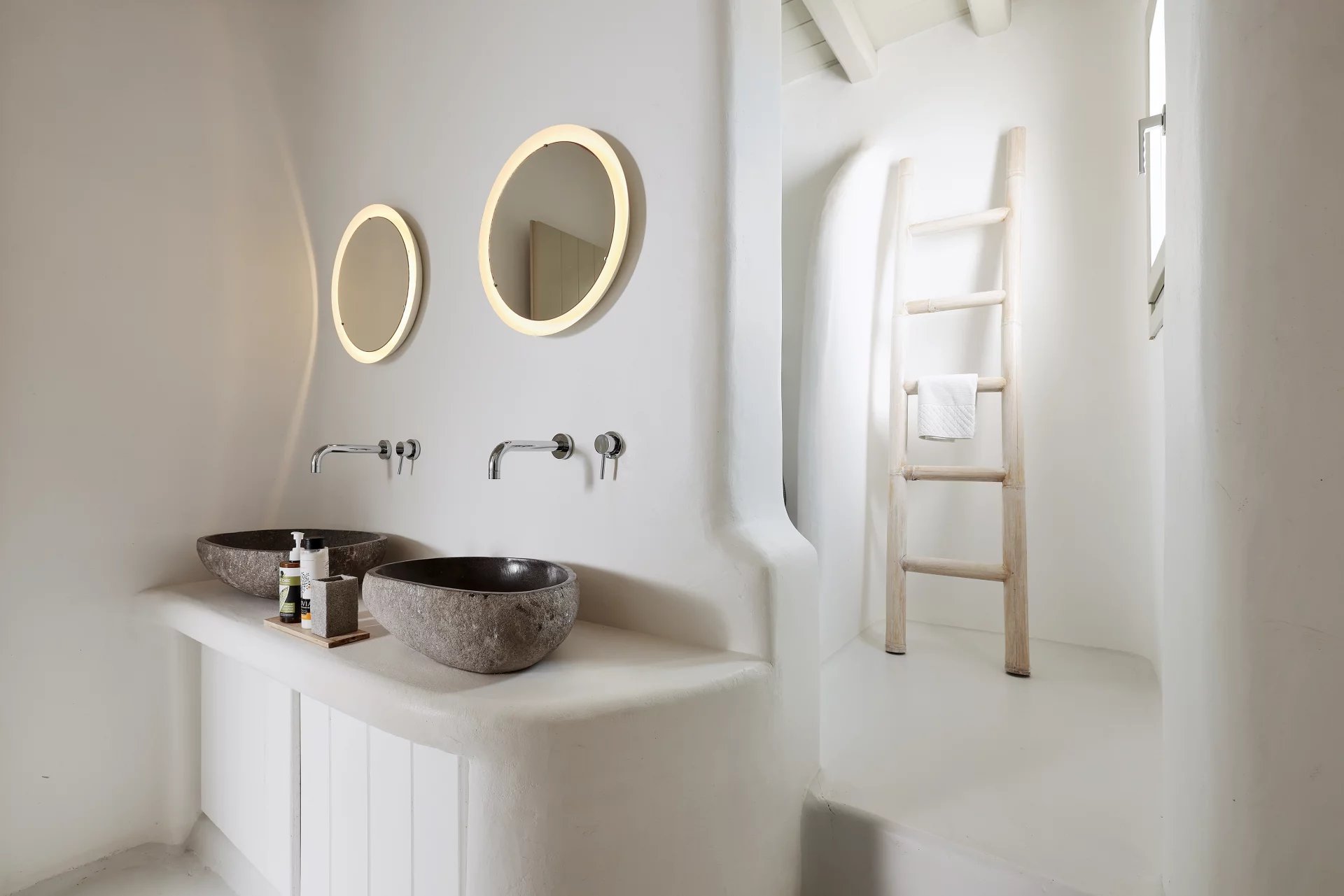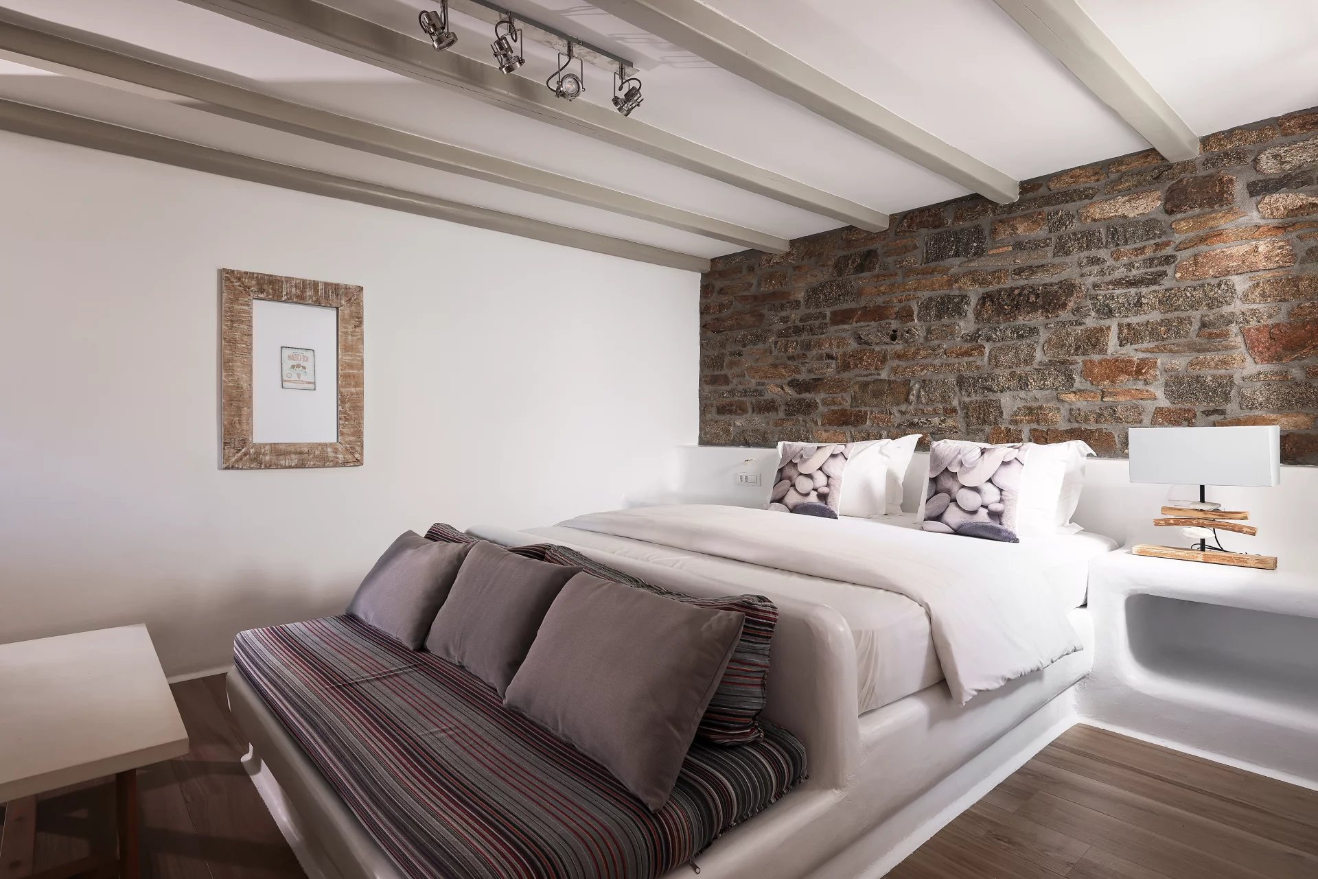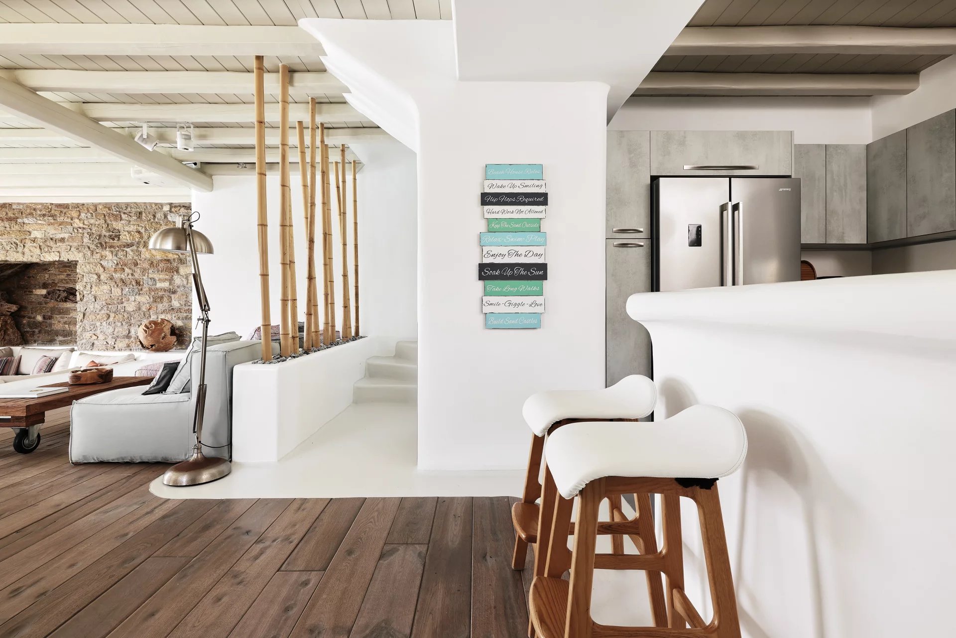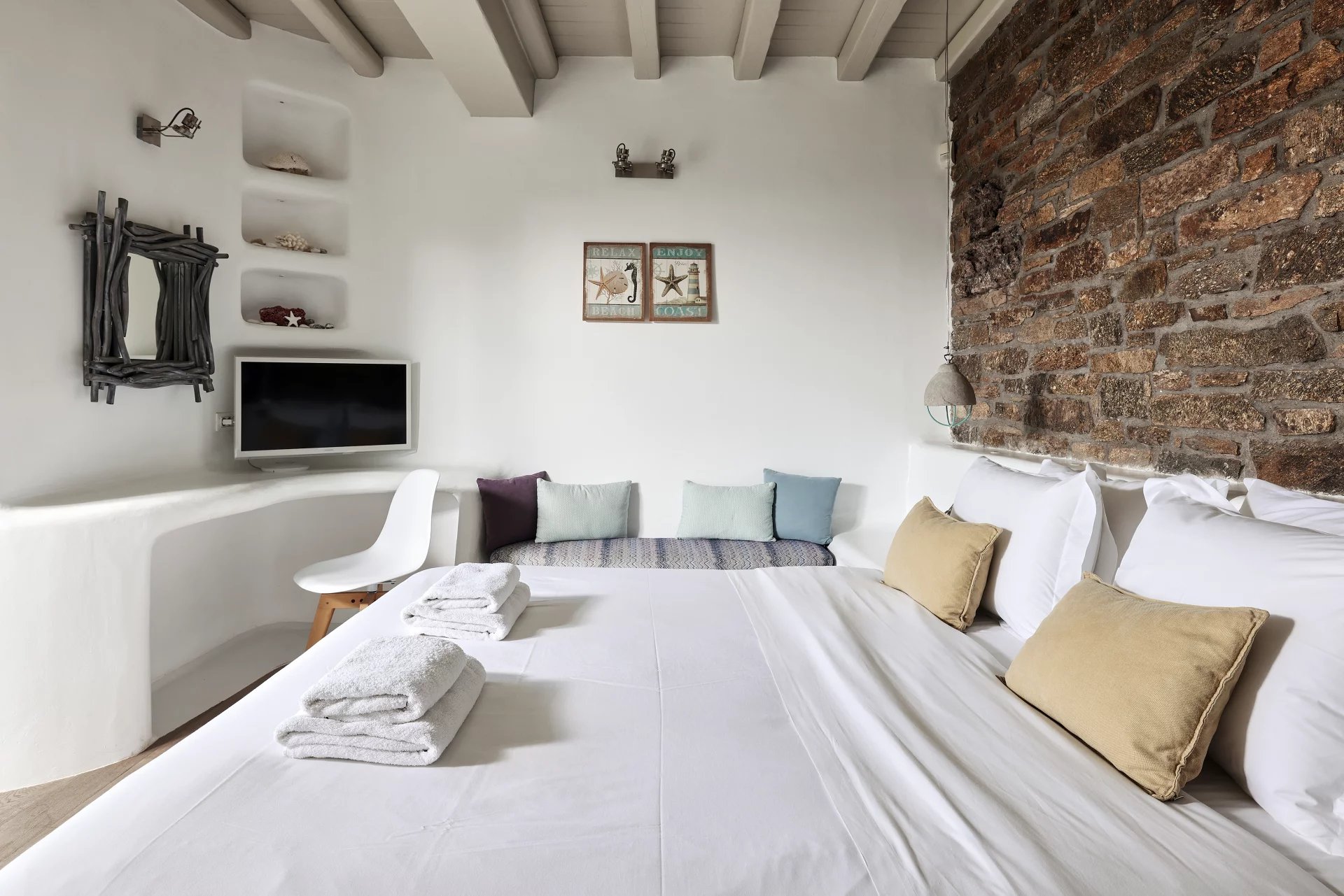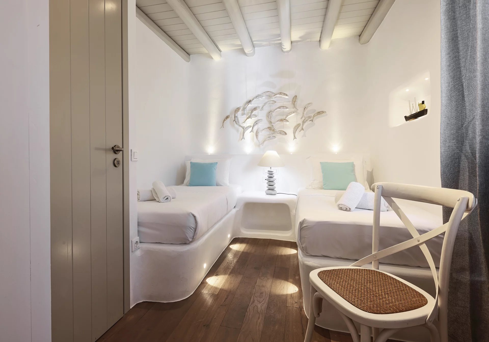Villa Daedalus is perched on a hill with stunning views over Elia Beach, offering a spacious 6-bedroom retreat within a lush 2,000 sqm garden filled with flowers and plants. This property provides guests plenty of space to unwind, featuring an Infinity Pool, grassy areas, and several spots for lounging and dining outdoors, complete with a bar and BBQ.