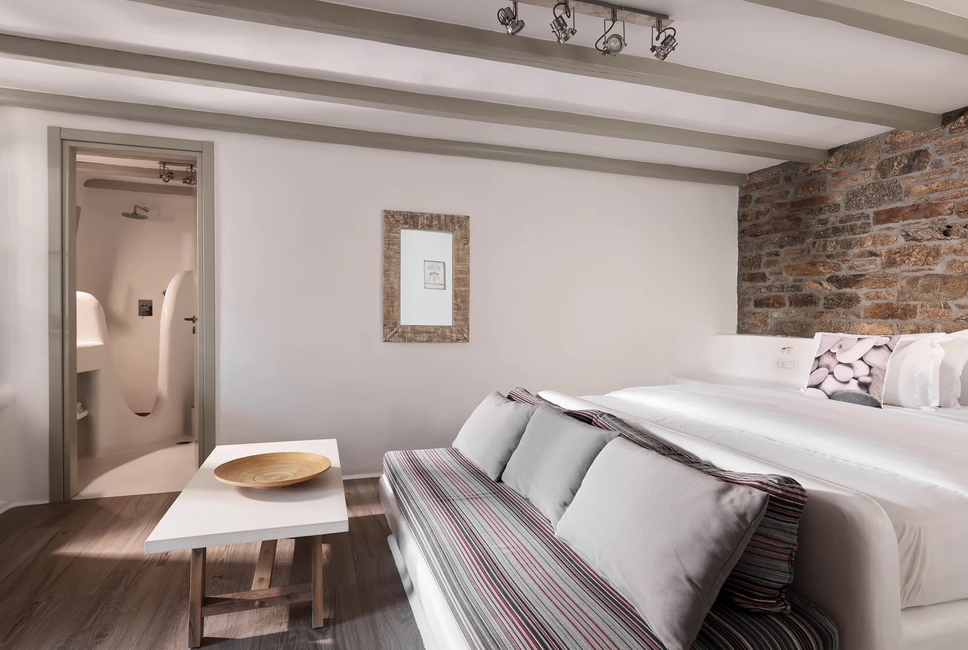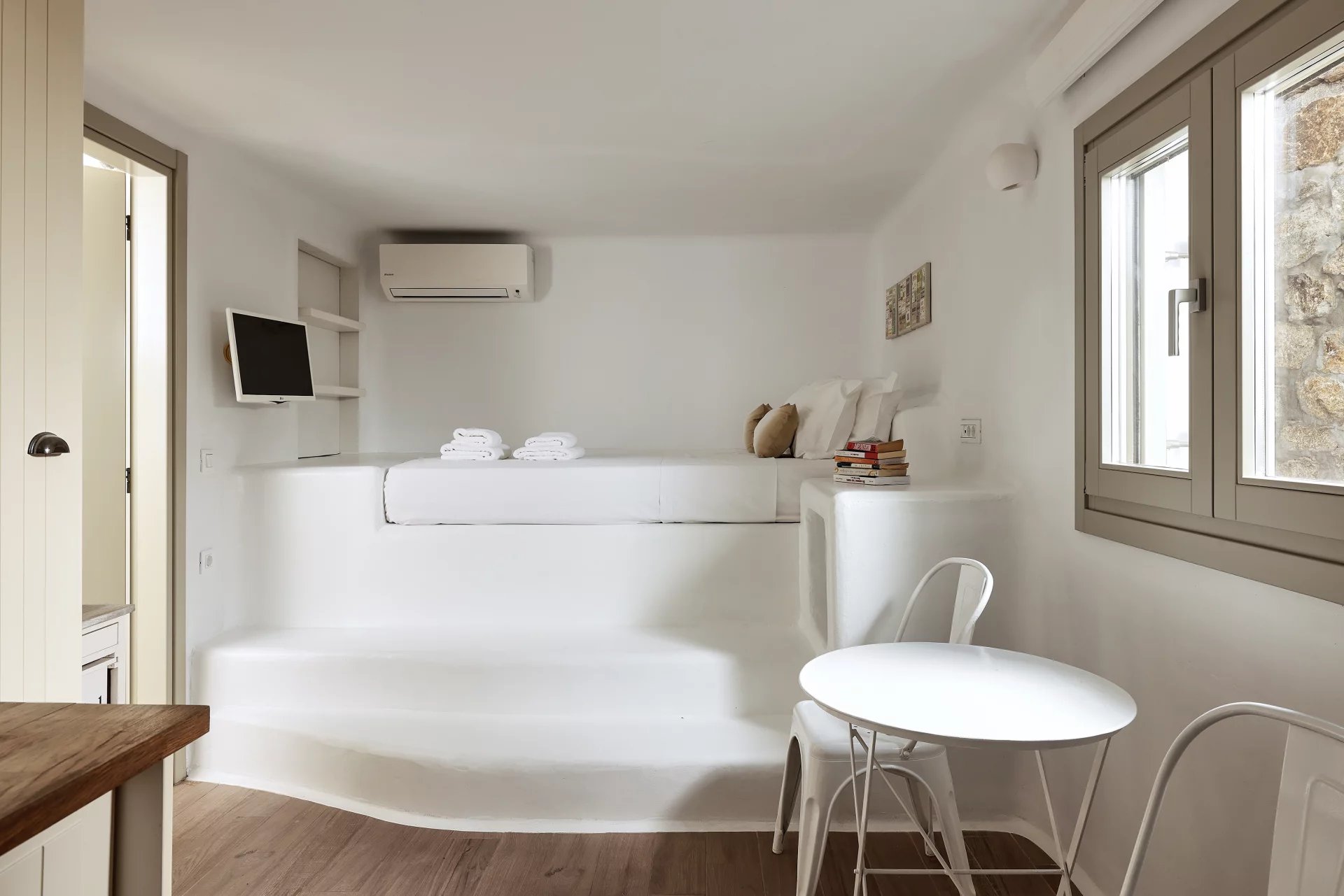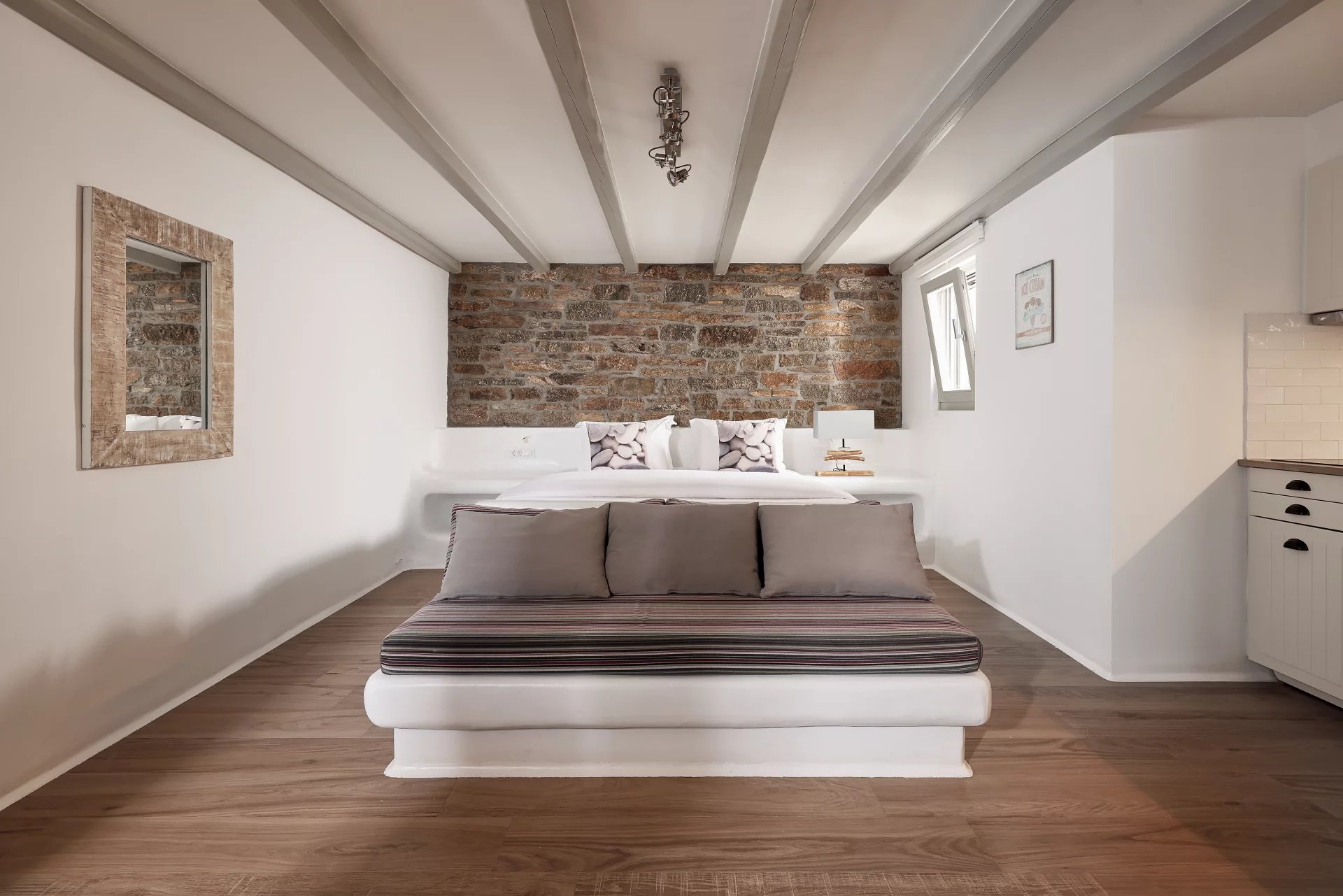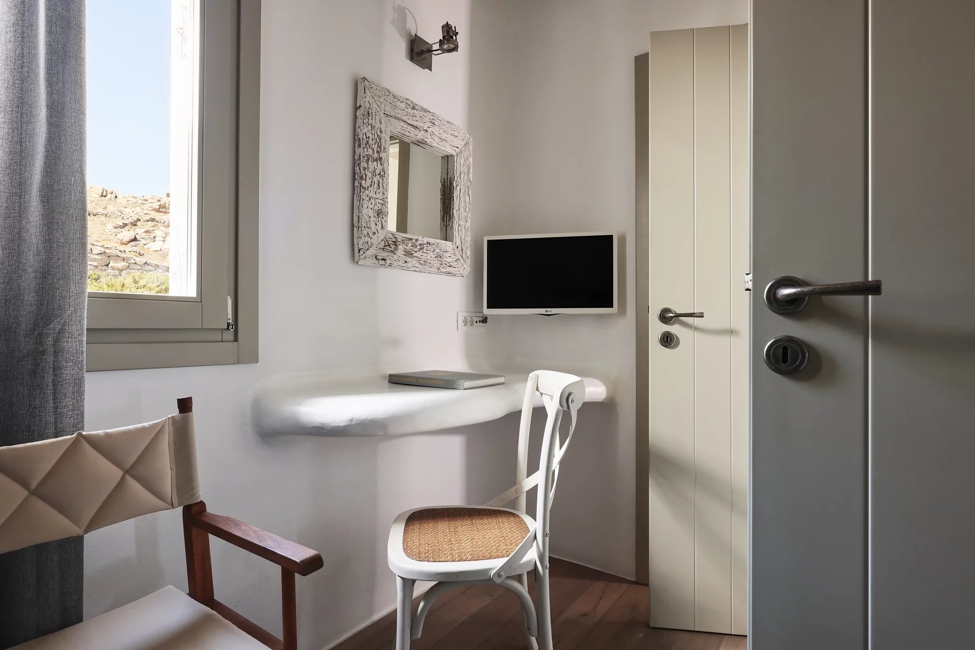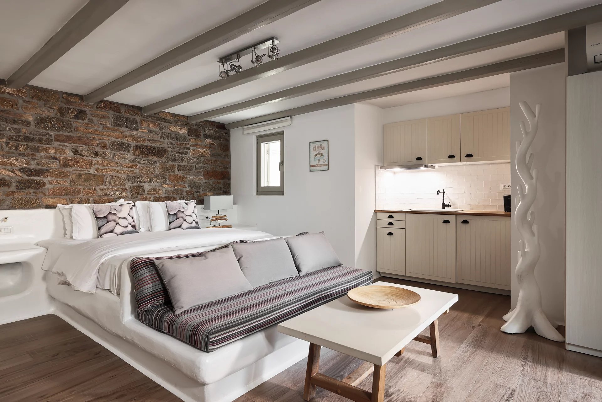 Villa Daedalus is perched on a hill with stunning views over Elia Beach, offering a spacious 6-bedroom retreat within a lush 2,000 sqm garden filled with flowers and plants. This property provides guests plenty of space to unwind, featuring an Infinity Pool, grassy areas, and several spots for lounging and dining outdoors, complete with a bar and BBQ.