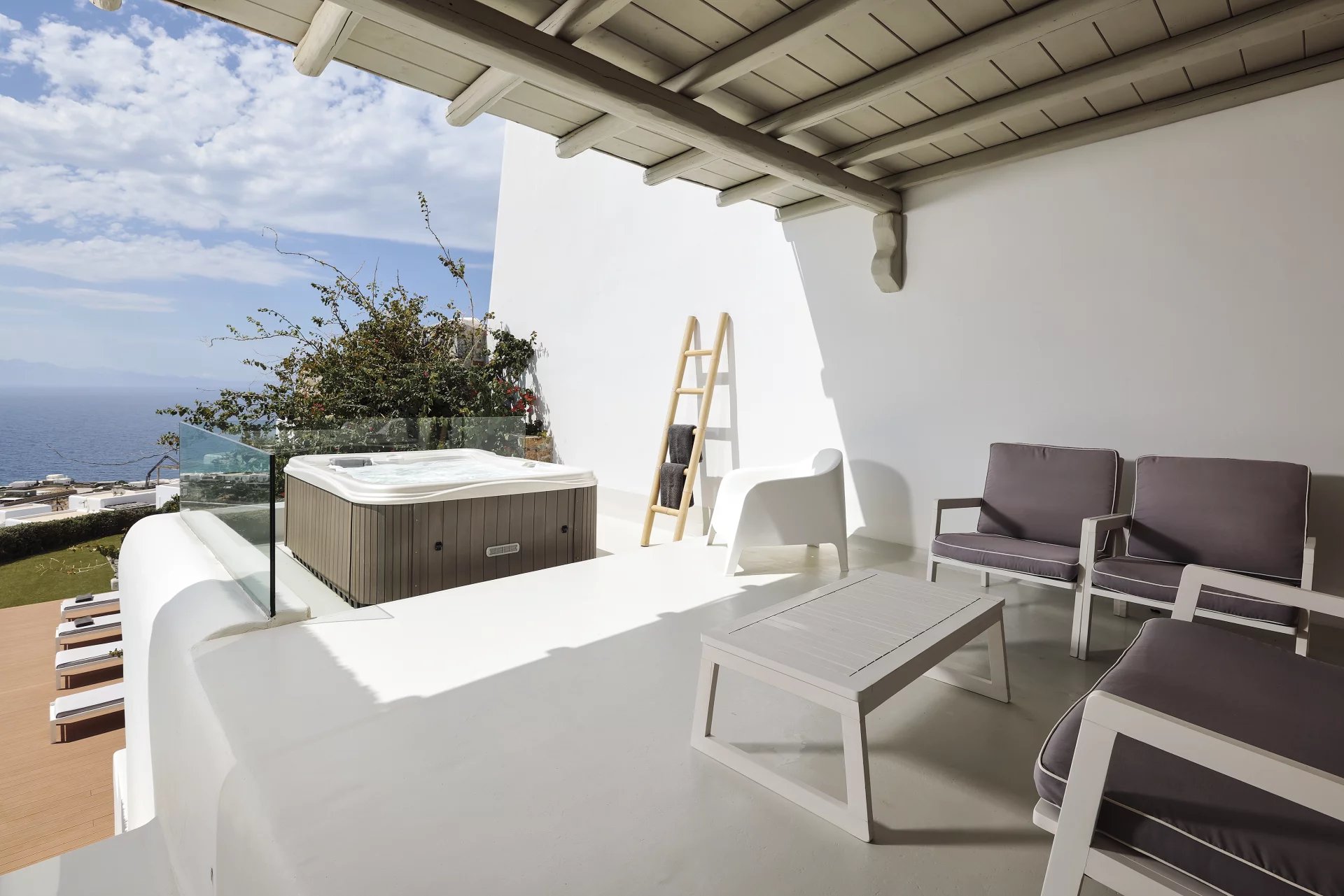 Amenities include an impressive Infinity pool with beautiful sea views, a Jacuzzi, outdoor areas for relaxing and dining, a Bluetooth sound system, Wi-Fi, air conditioning, secure parking, and upon request, laundry services, and baby equipment. This makes Villa Daedalus a perfect blend of comfort and convenience in a beautiful setting.