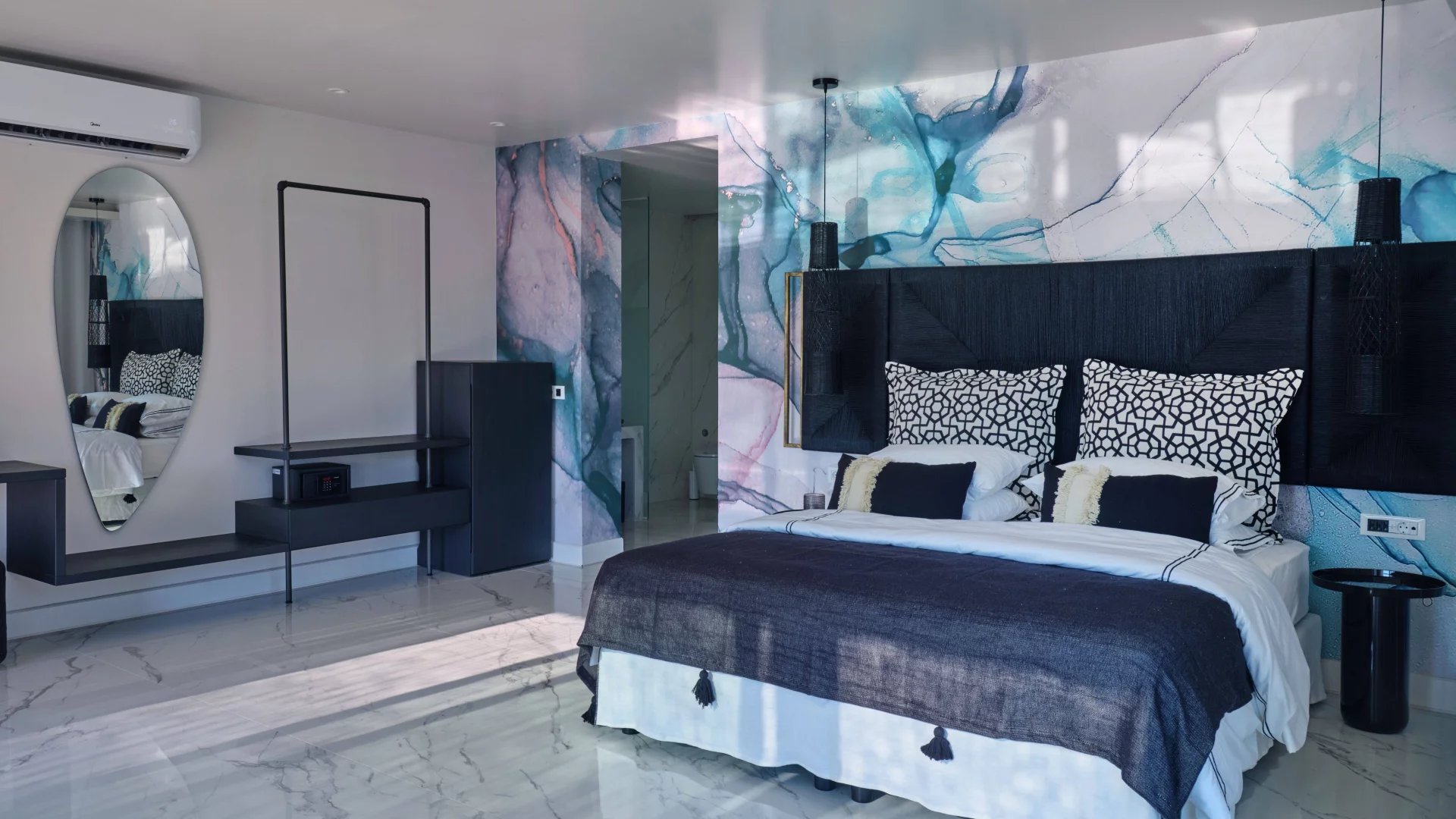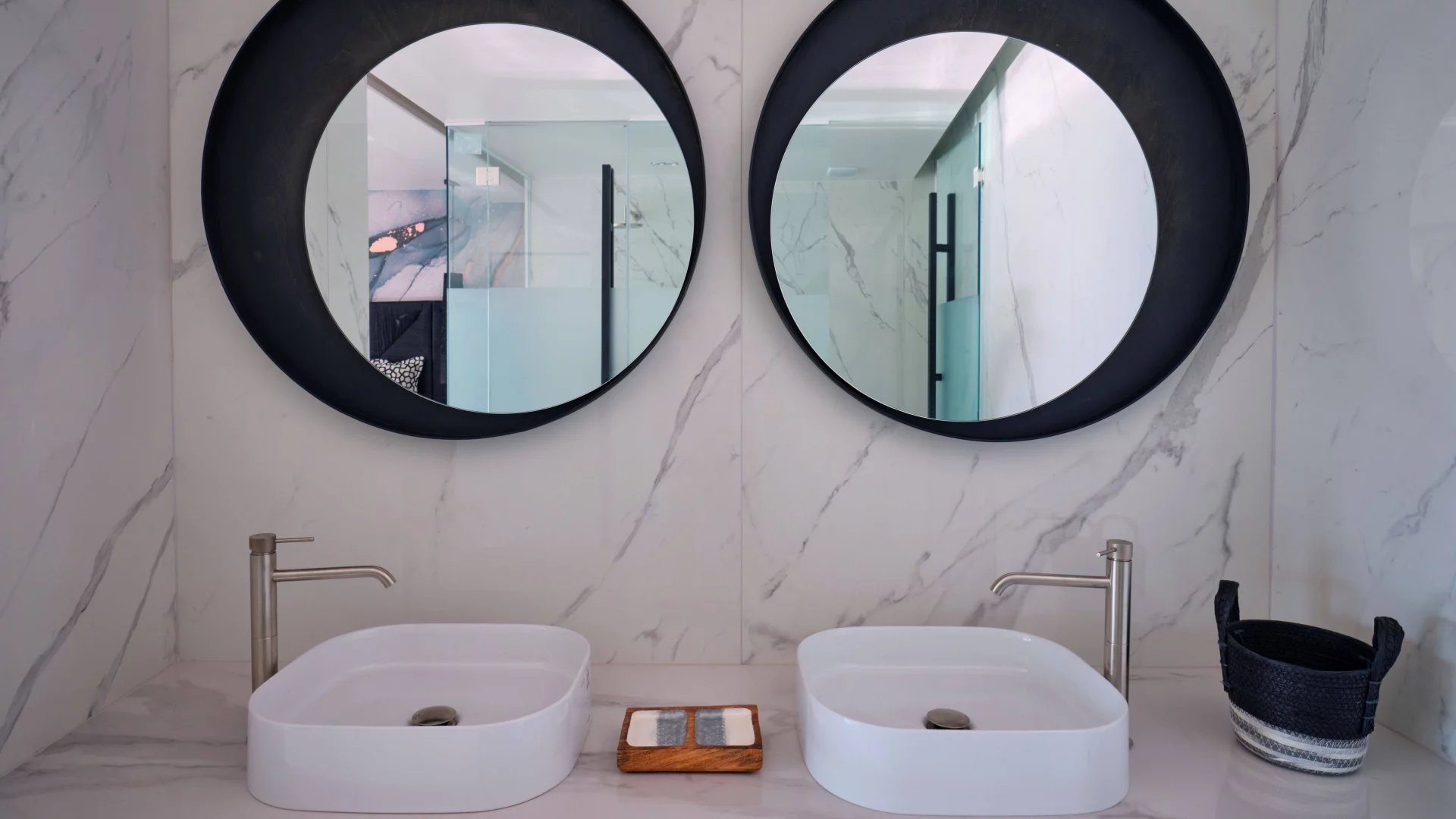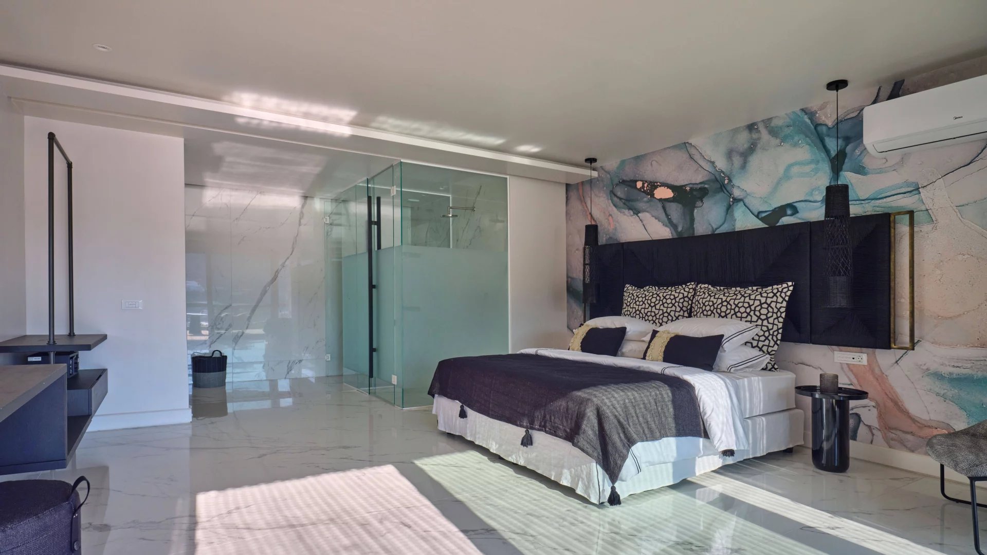 Style is a constant also indoors, where the space developed on three levels conveys a calming sensation – various shades of white, black and grey were thoughtfully used, enhancing the overall minimal decor of the property. The bedrooms are all appointed to a high standard and all share a view over the bay below the property, exception made for the staff bedroom located to the back of the property.