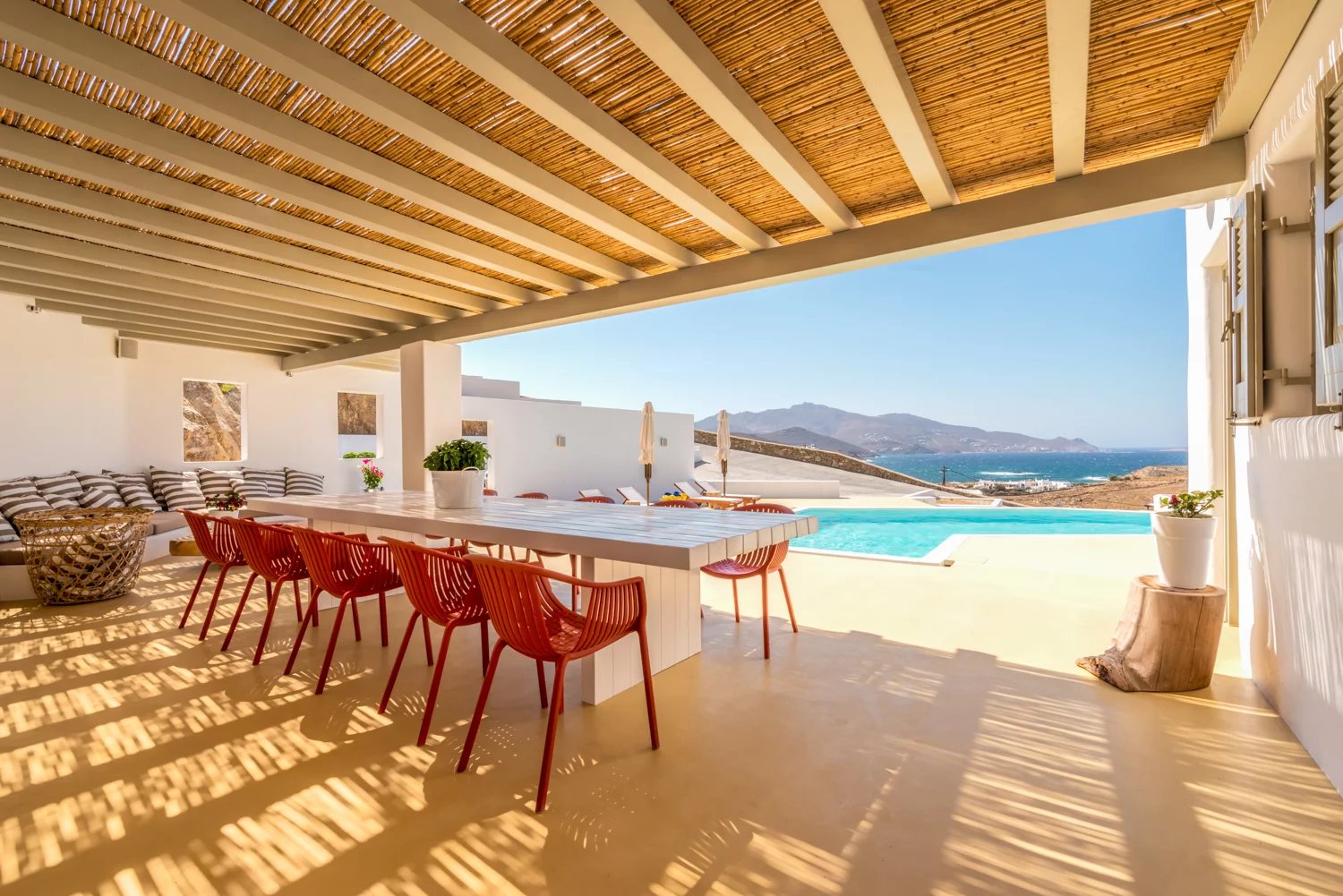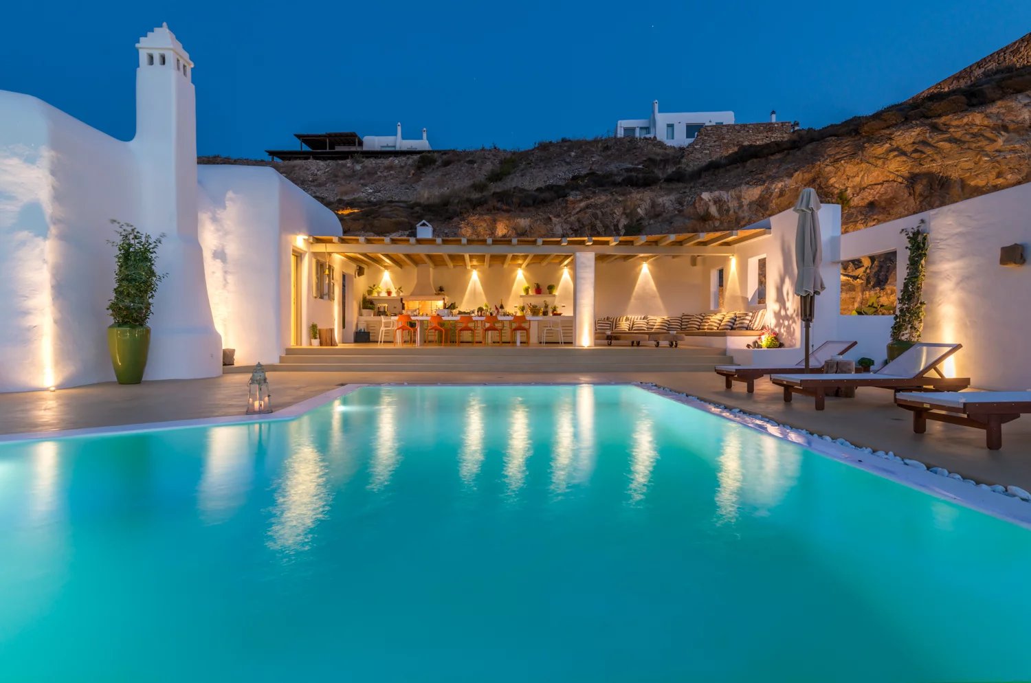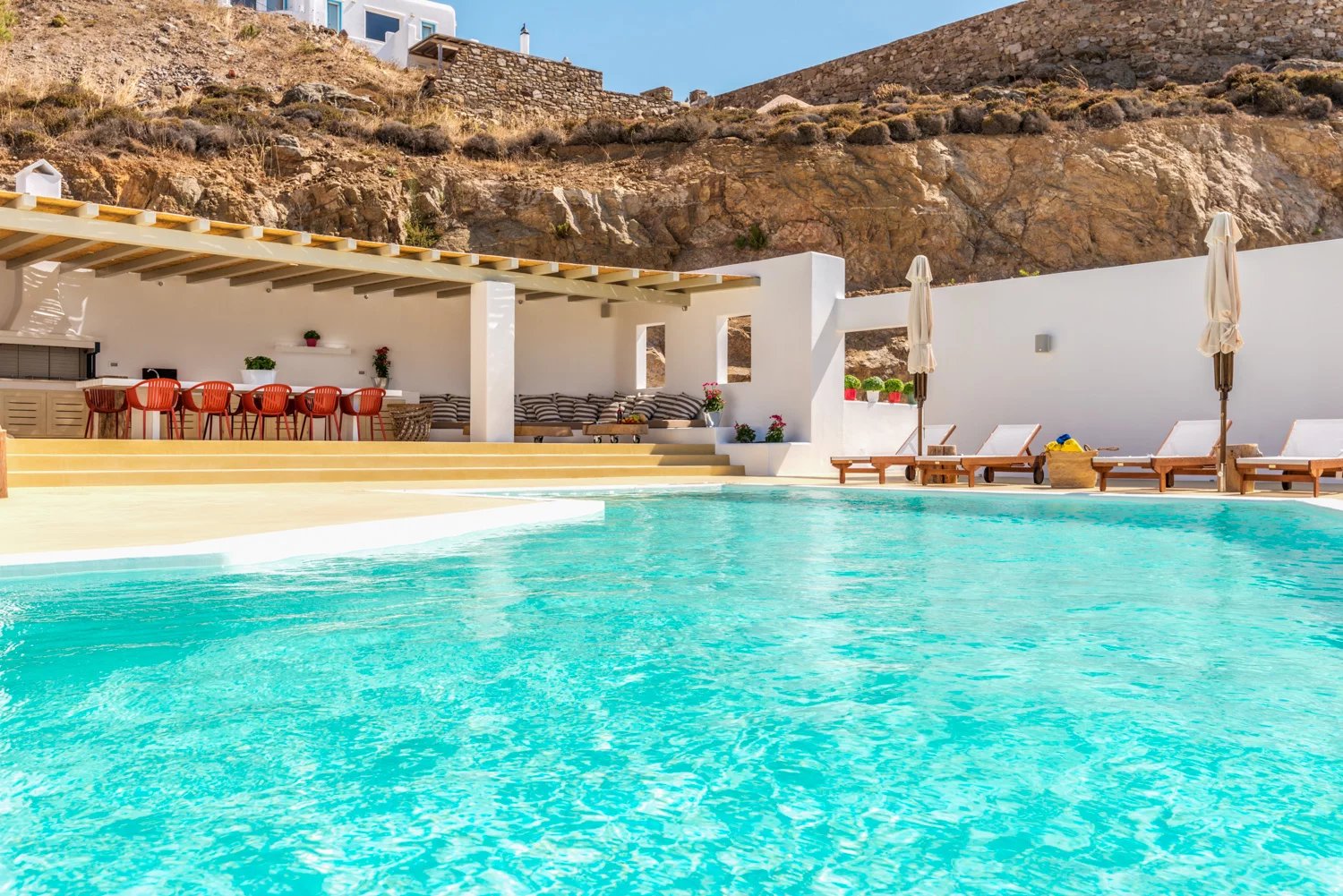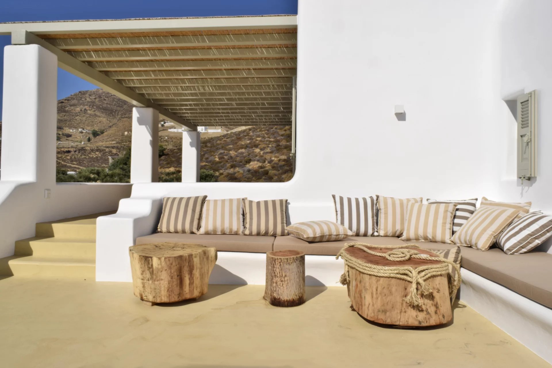 Villa Floriana unveils a stunning new addition to Mykonos' landscape, offering a sprawling 450sqm of luxury living space overlooking the captivating bay of Ftelia. From its vantage point, guests can bask in panoramic views of the sandy beaches, renowned gourmet eateries, and the archaeological wonders that grace this vibrant area. Ftelia's legendary waves, a playground for wind and kite surfers, add to the allure of this coastal paradise.