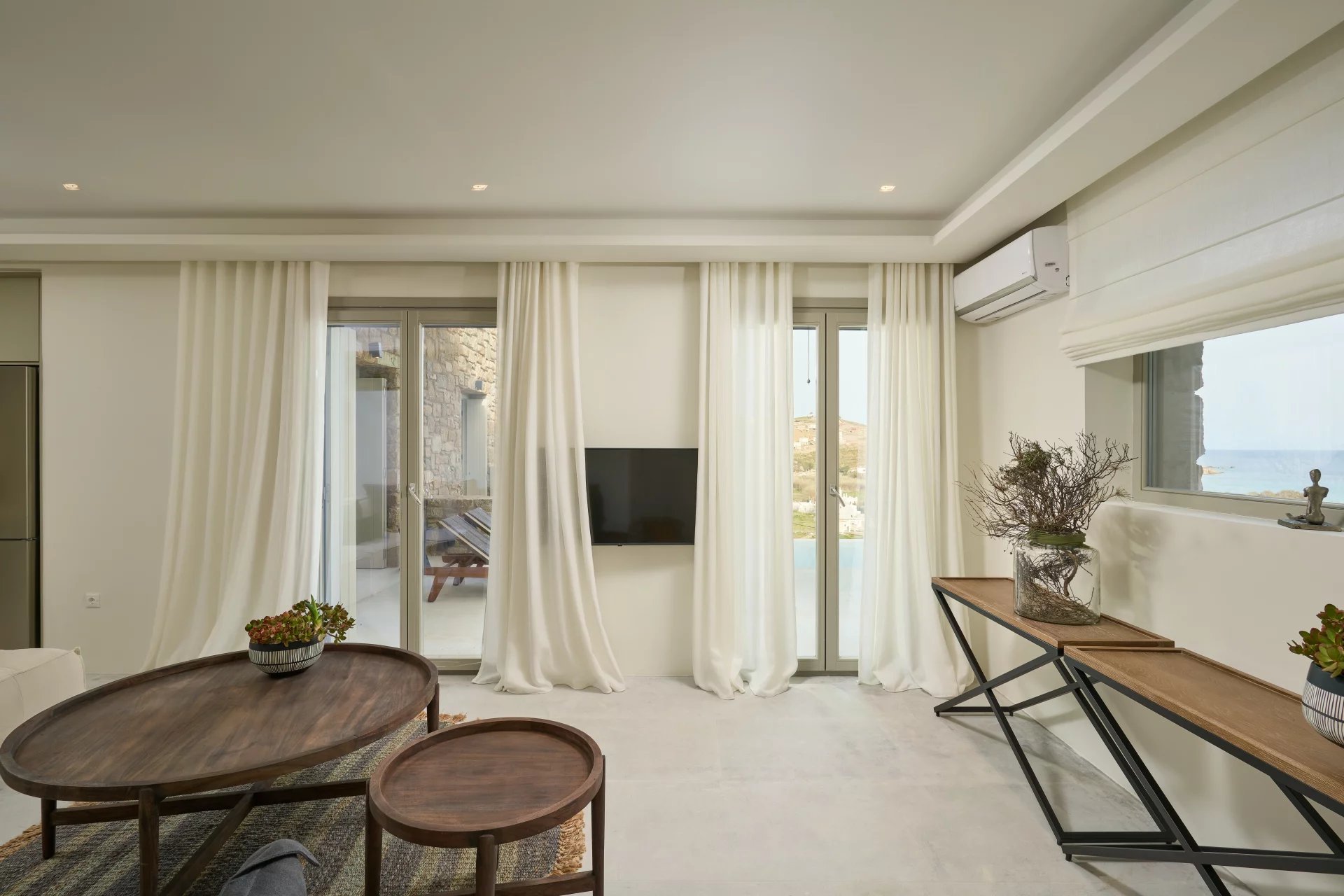 Room 2 - access to the pool area via balcony doors - sea view room