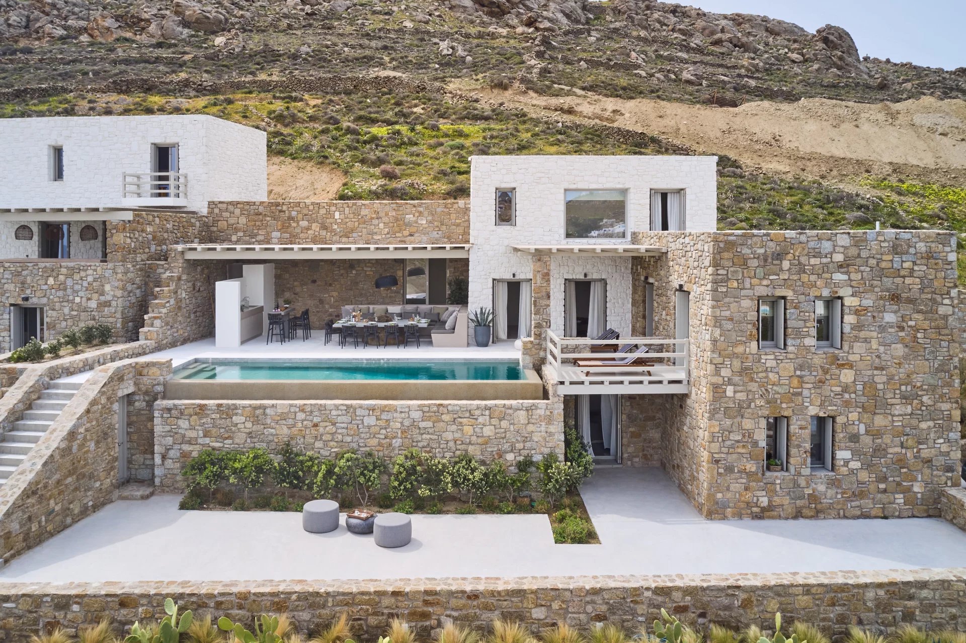 Guests can relax on the expansive terrace or take a dip in the private pool, all while relishing the panoramic views.