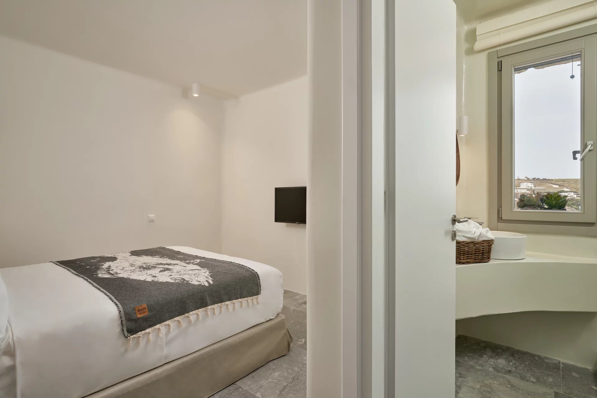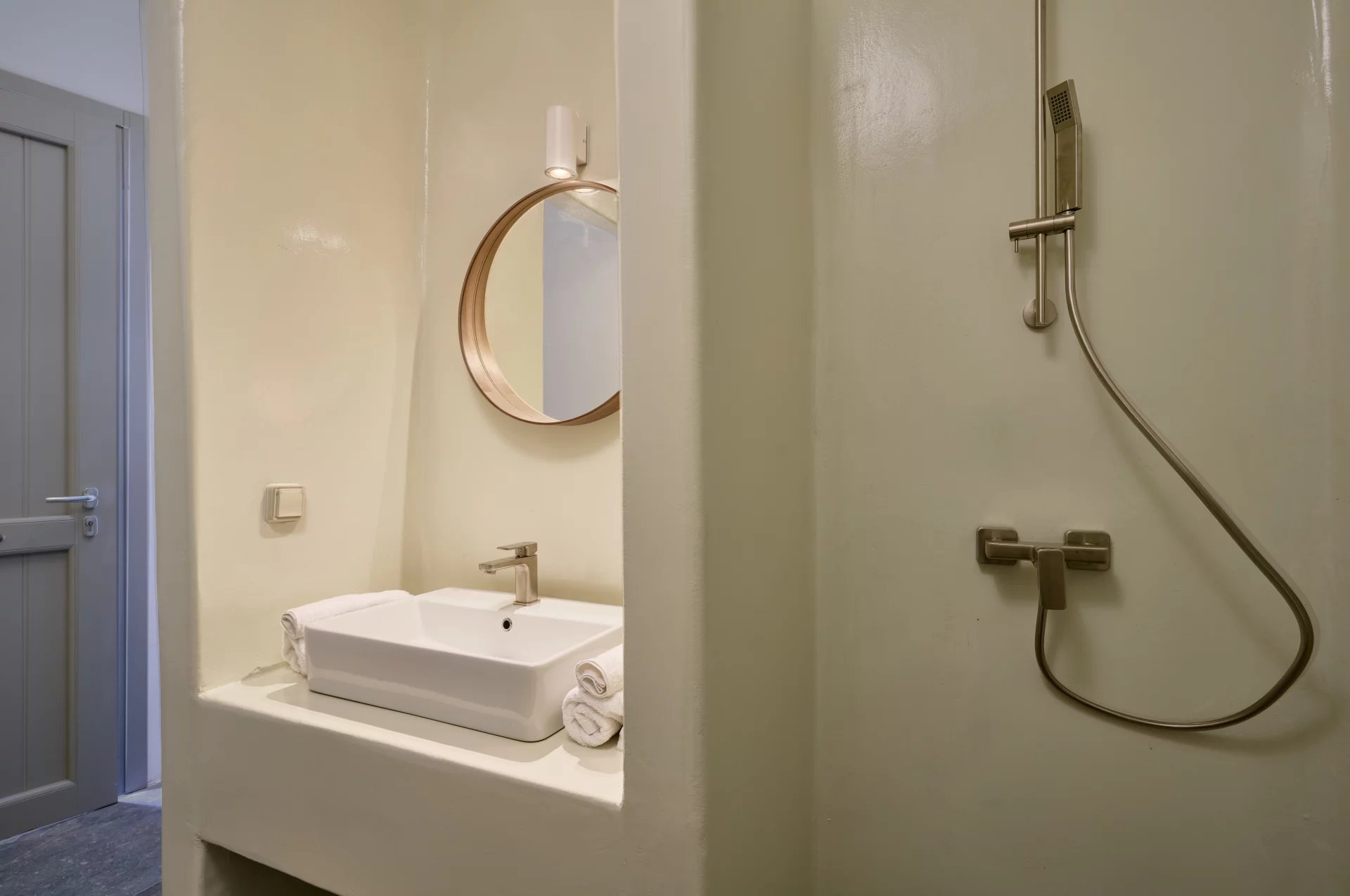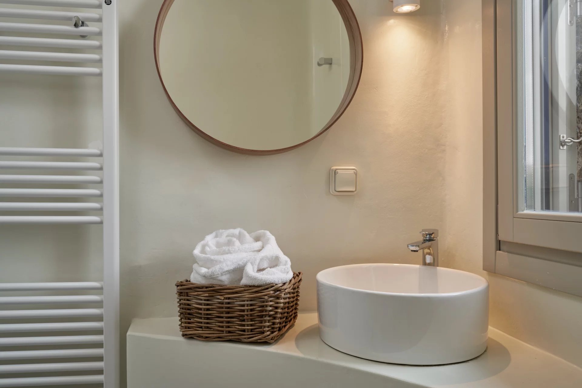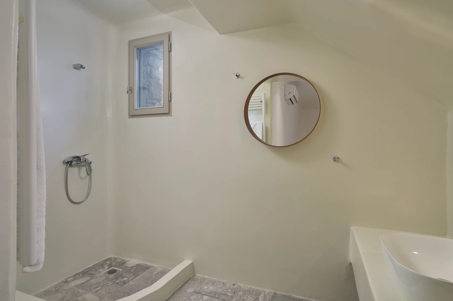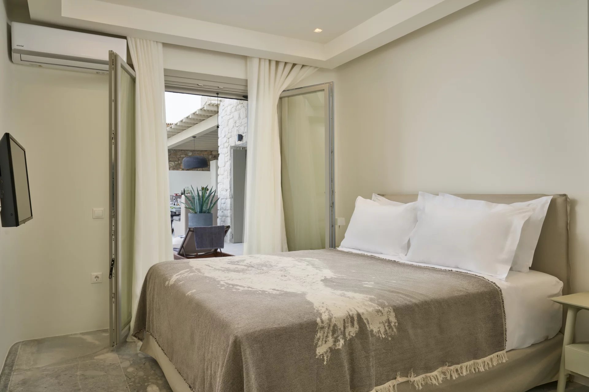Room 7: double bed, [A/C], safebox, open plan ensuite bathroom with shower, access from the parking area | individual entrance