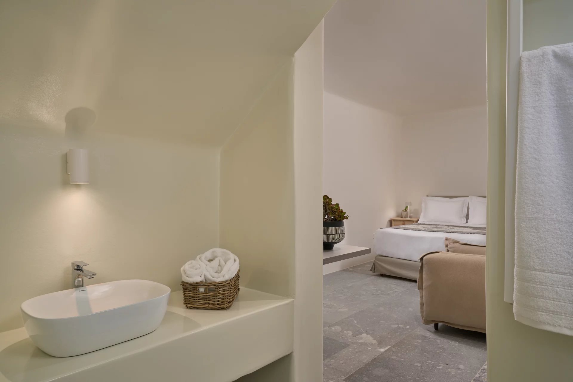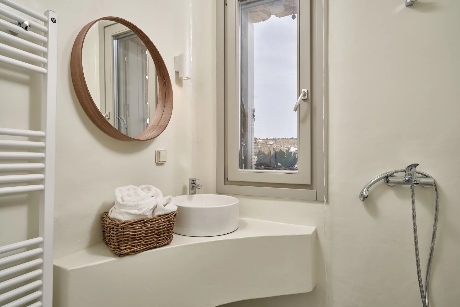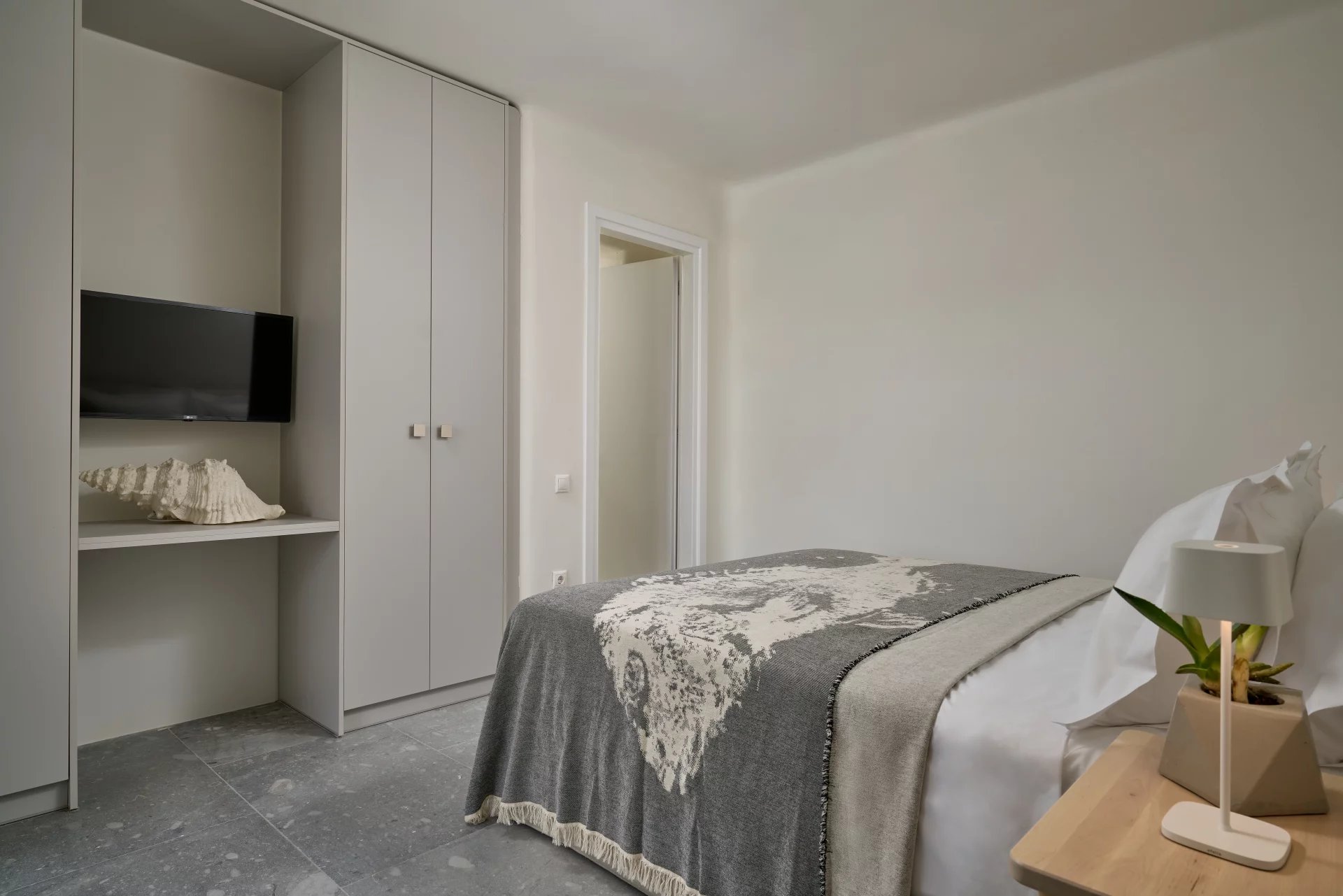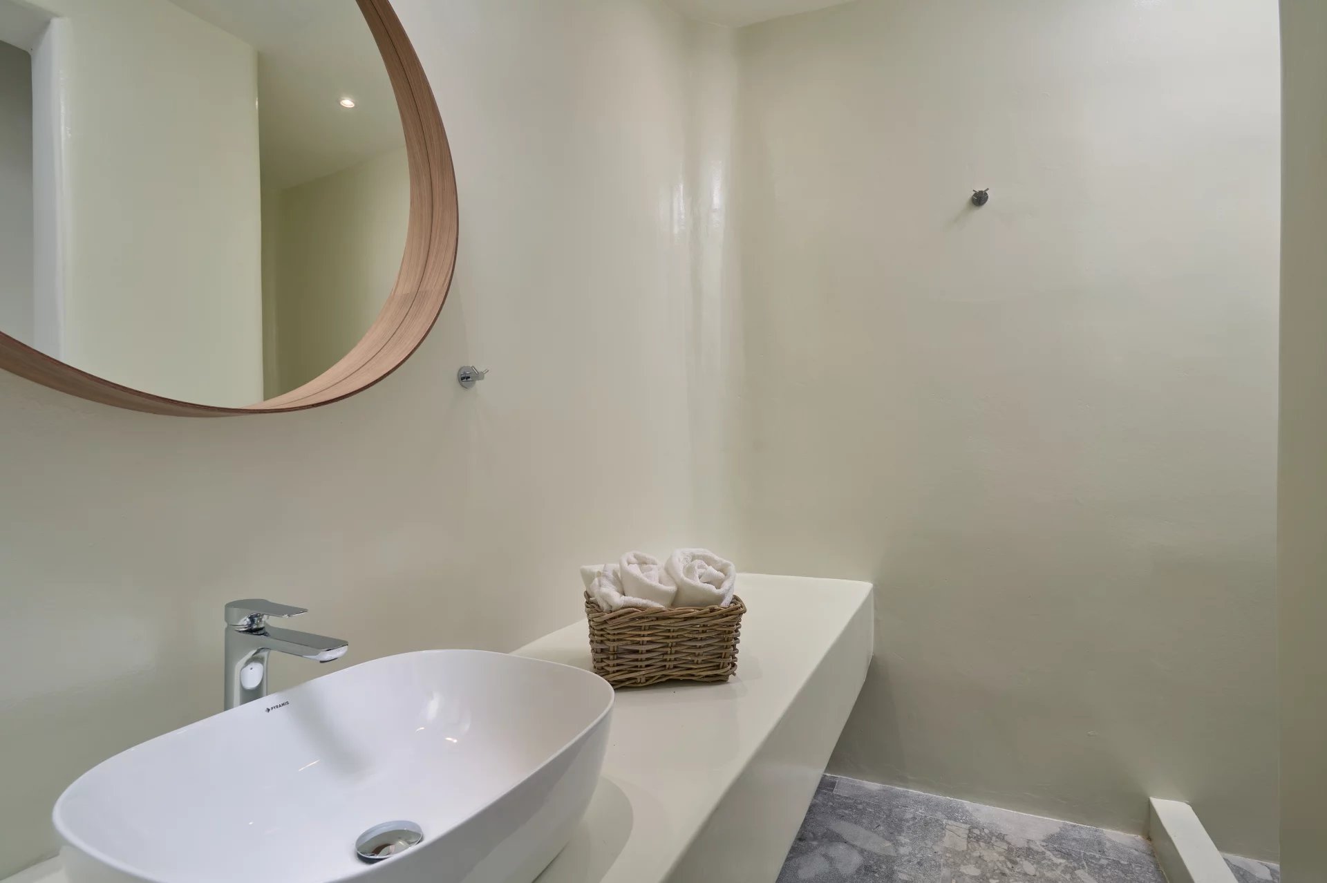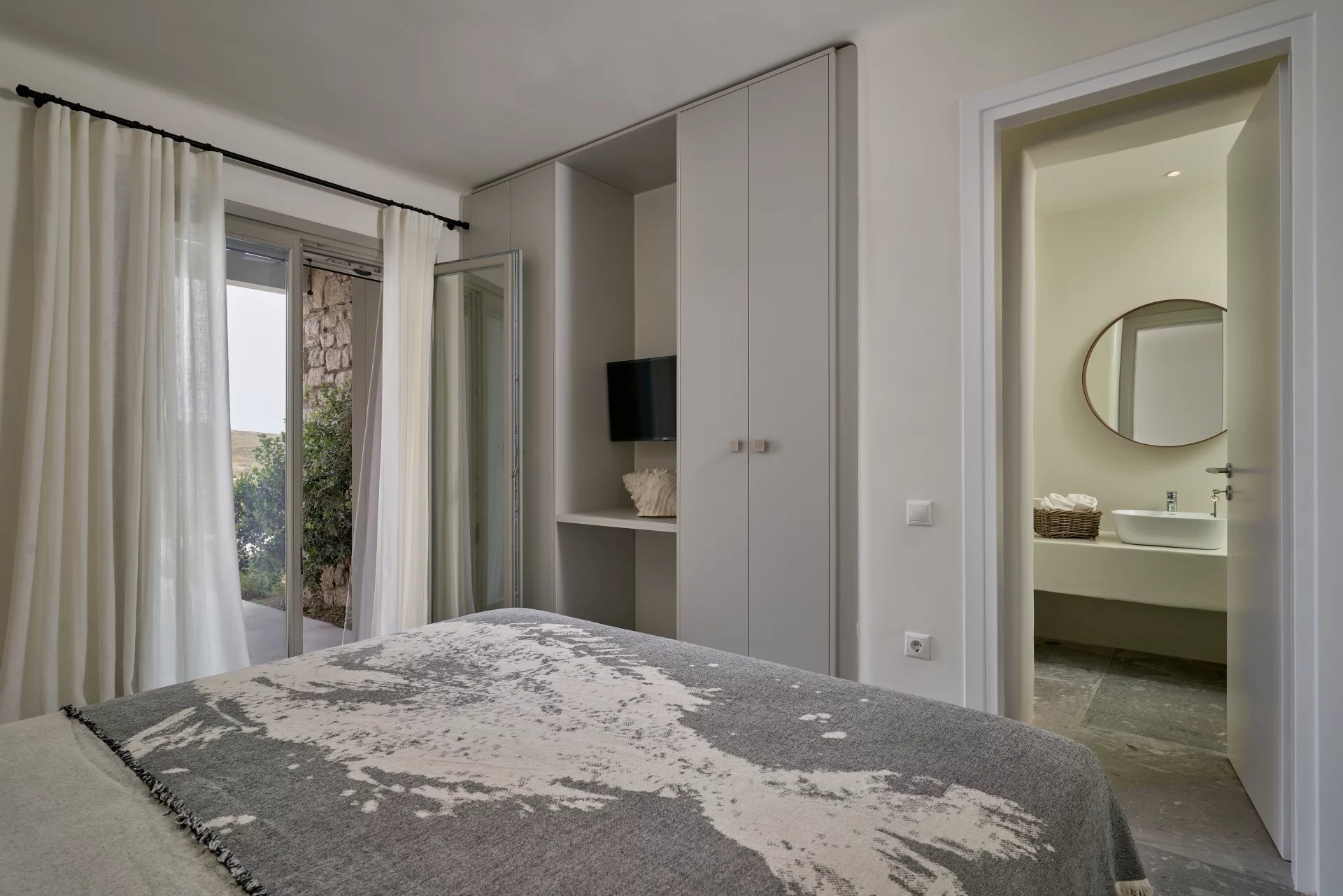 Room 7: double bed, [A/C], safebox, open plan ensuite bathroom with shower, access from the parking area | individual entrance