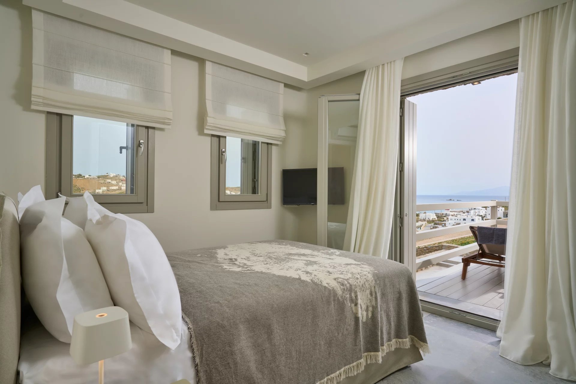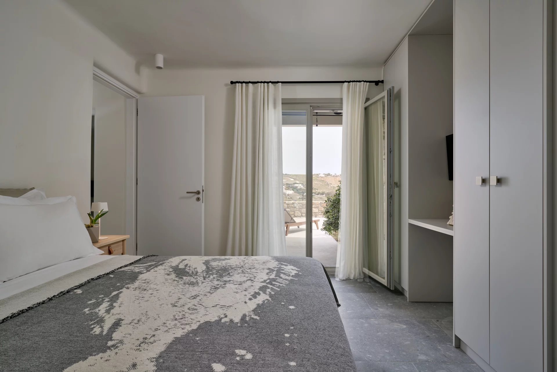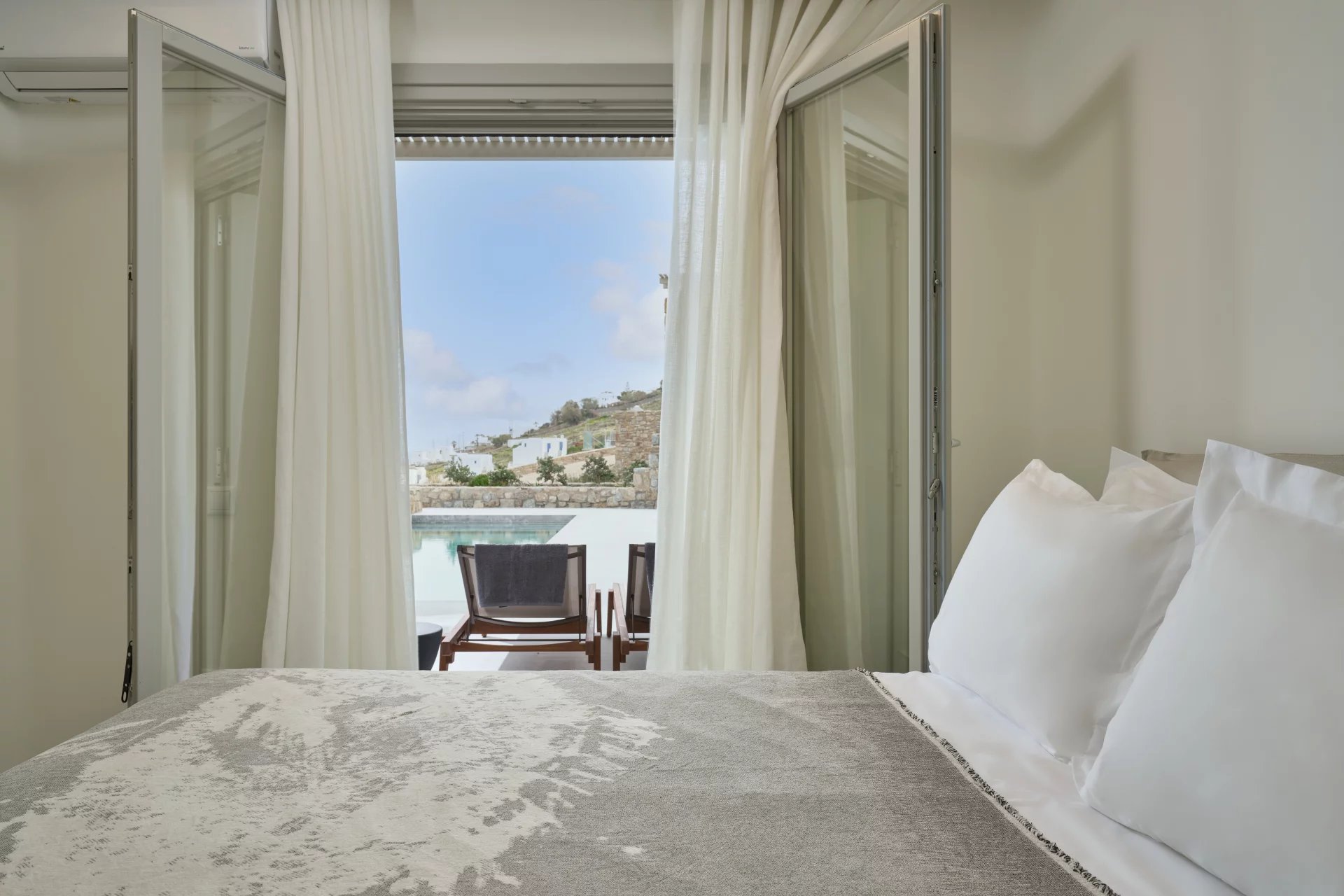 Room 1 - access to the pool area via balcony doors - sea view room
