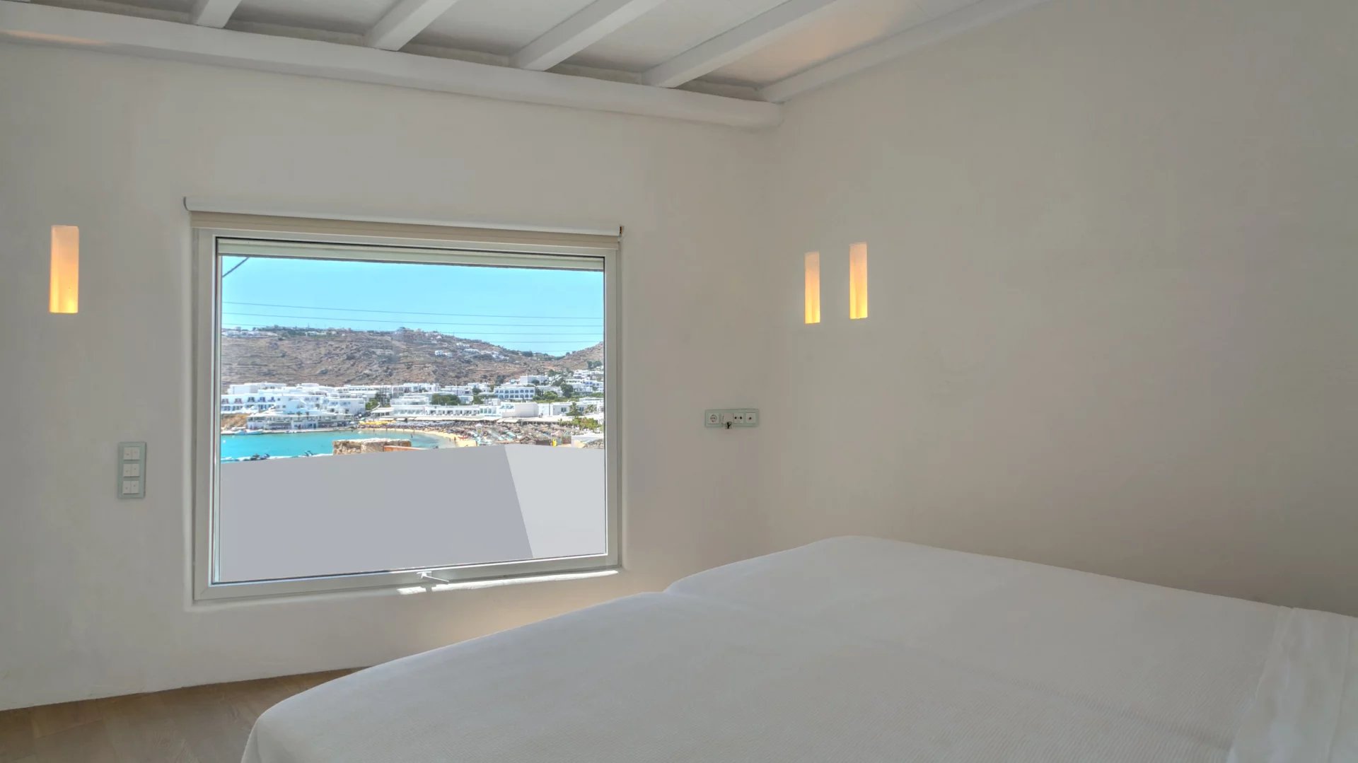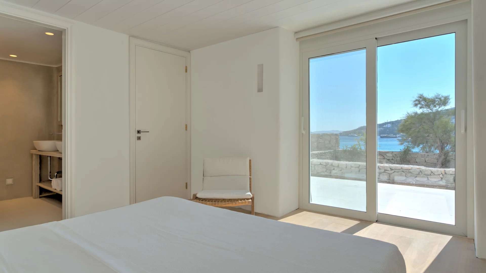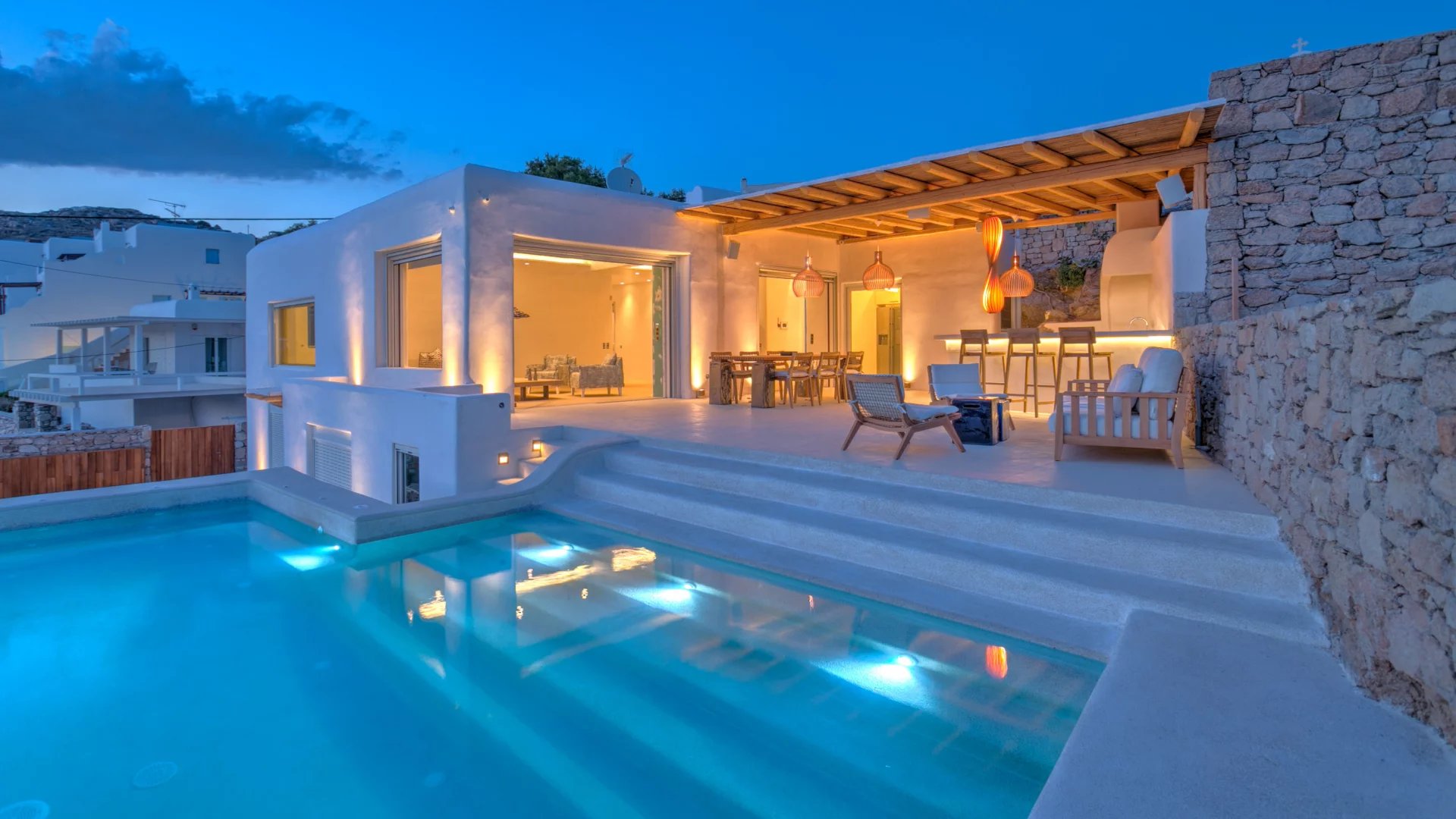 Villa Olivia is just above Platis Gyalos combining some of the most sought-after features for a holiday getaway. The property is reached by a narrow street and perched just above the beach of Platis Gyalos which literally is a few steps away from the front door.