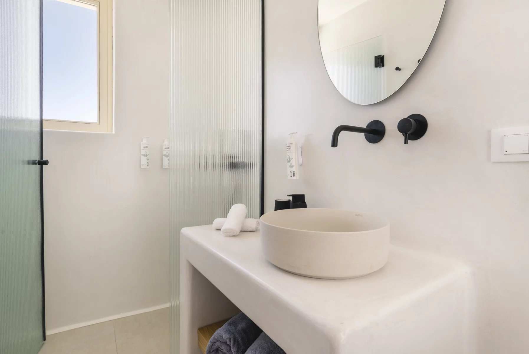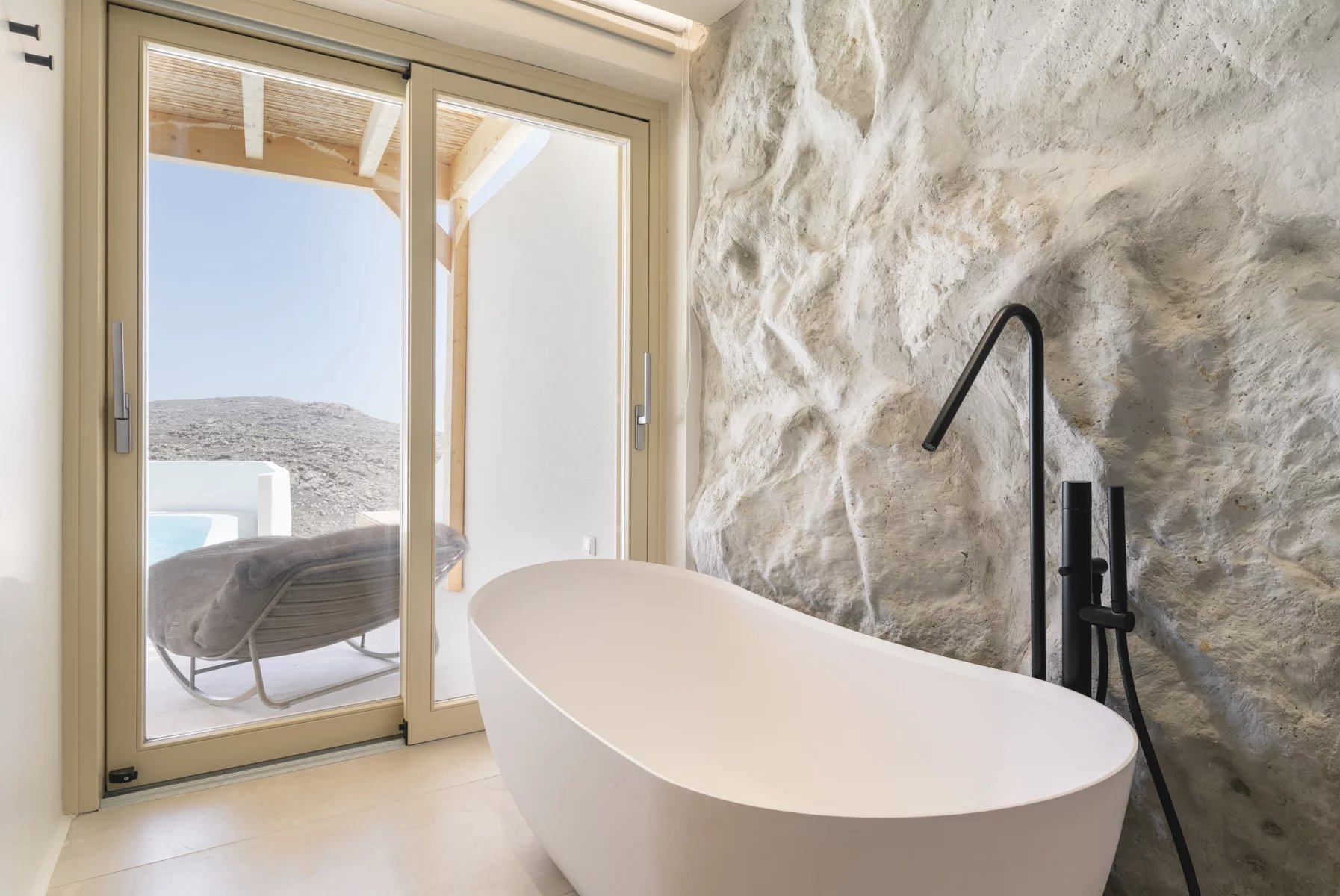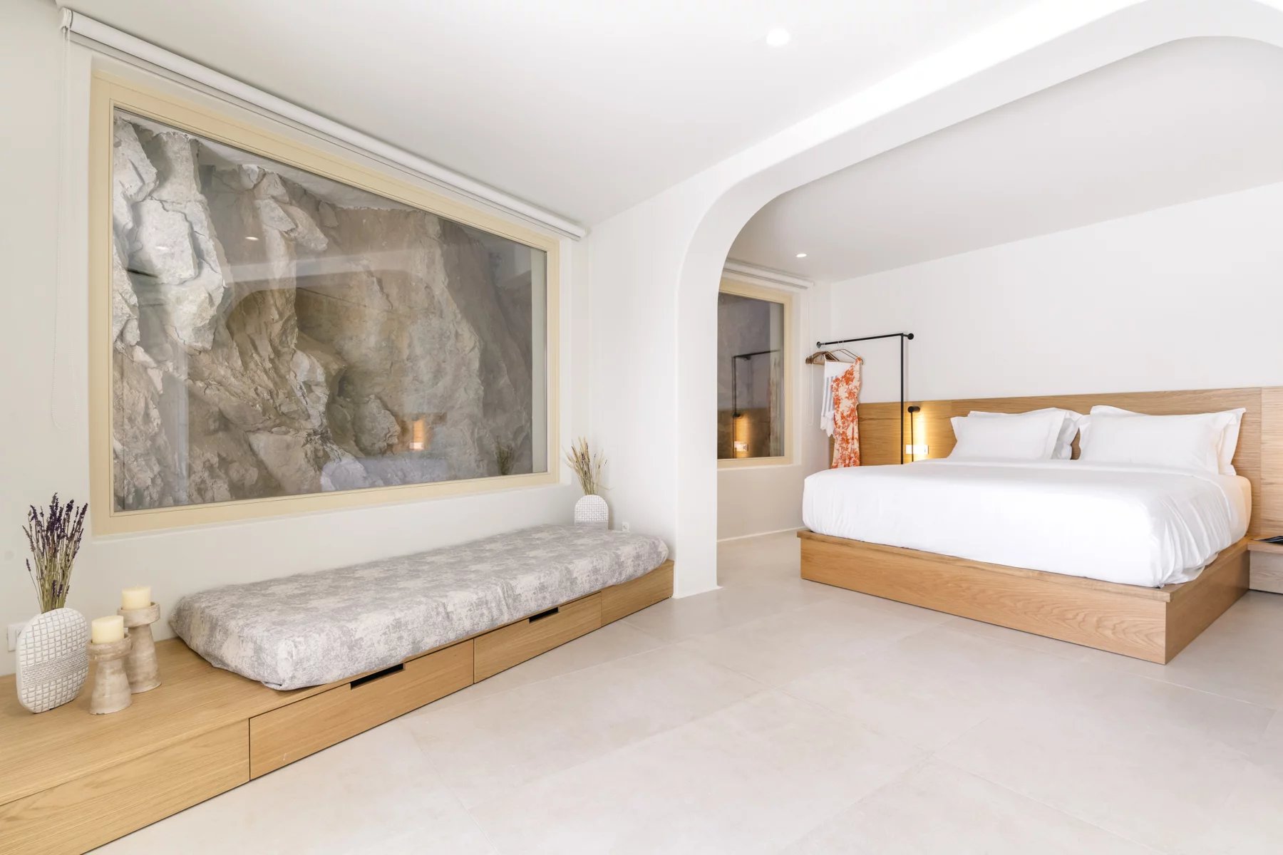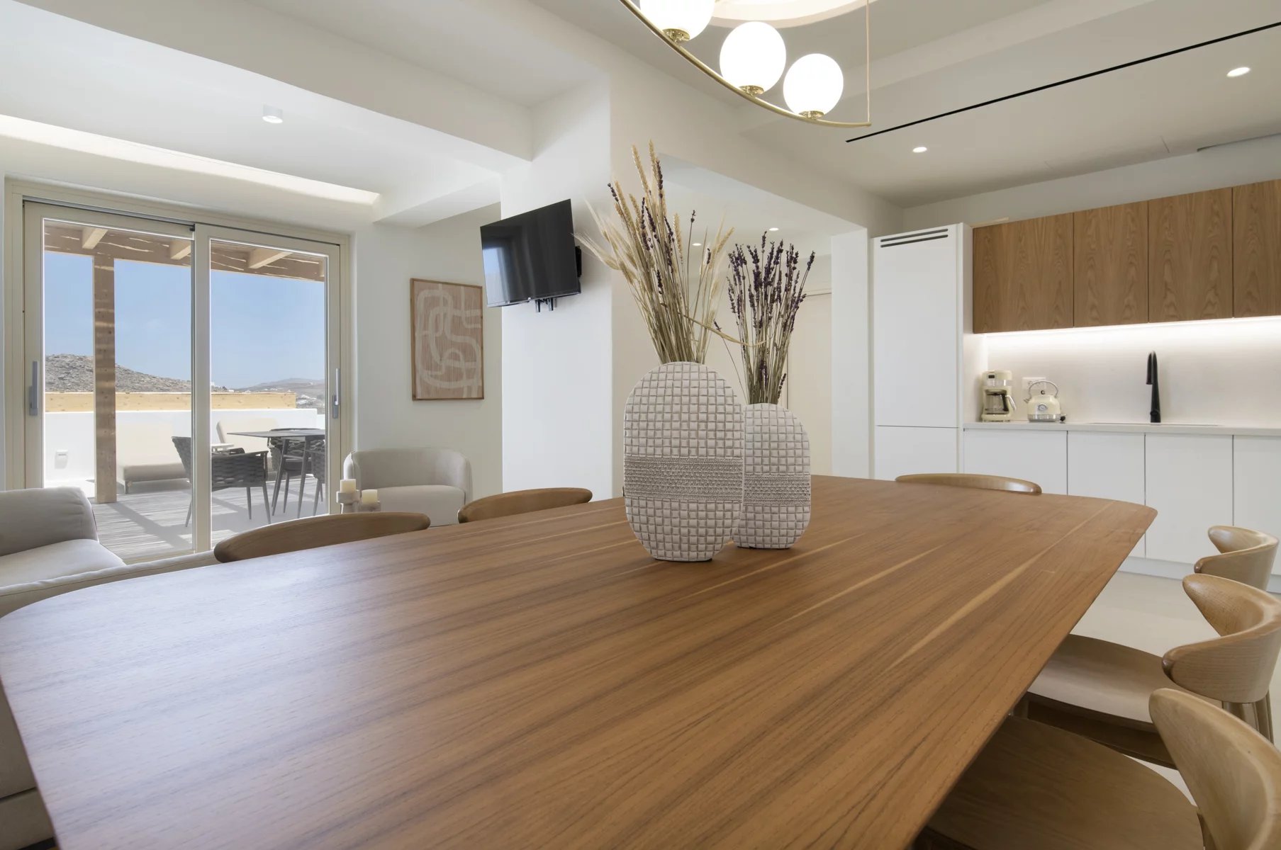 This newly built villa reinterprets Cycladic hospitality, merging contemporary design with traditional warmth. Nestled in a peaceful complex of four villas atop Super Paradise Hill, it features stunning views of the azure sea, all visible from the expansive terrace.