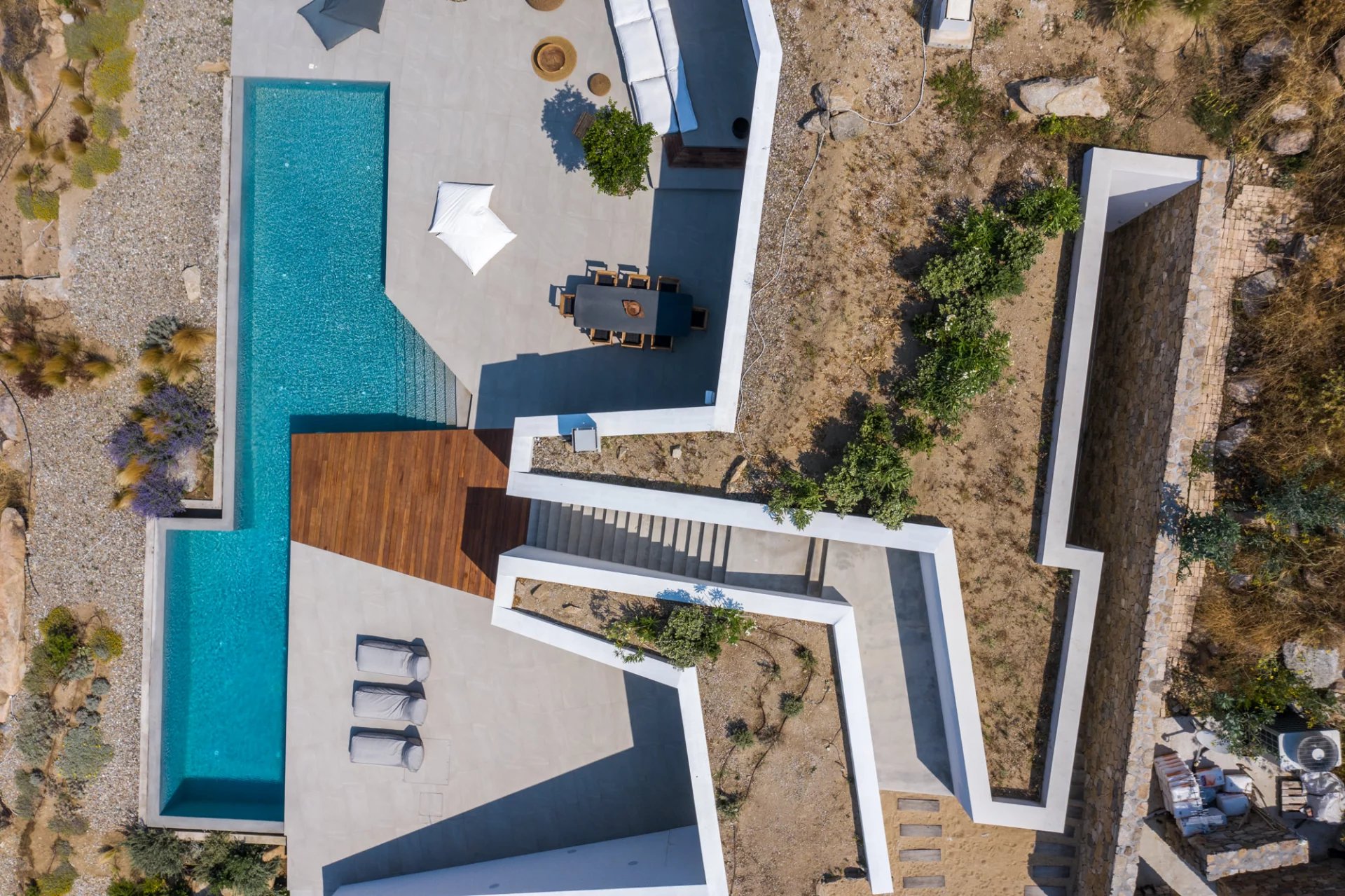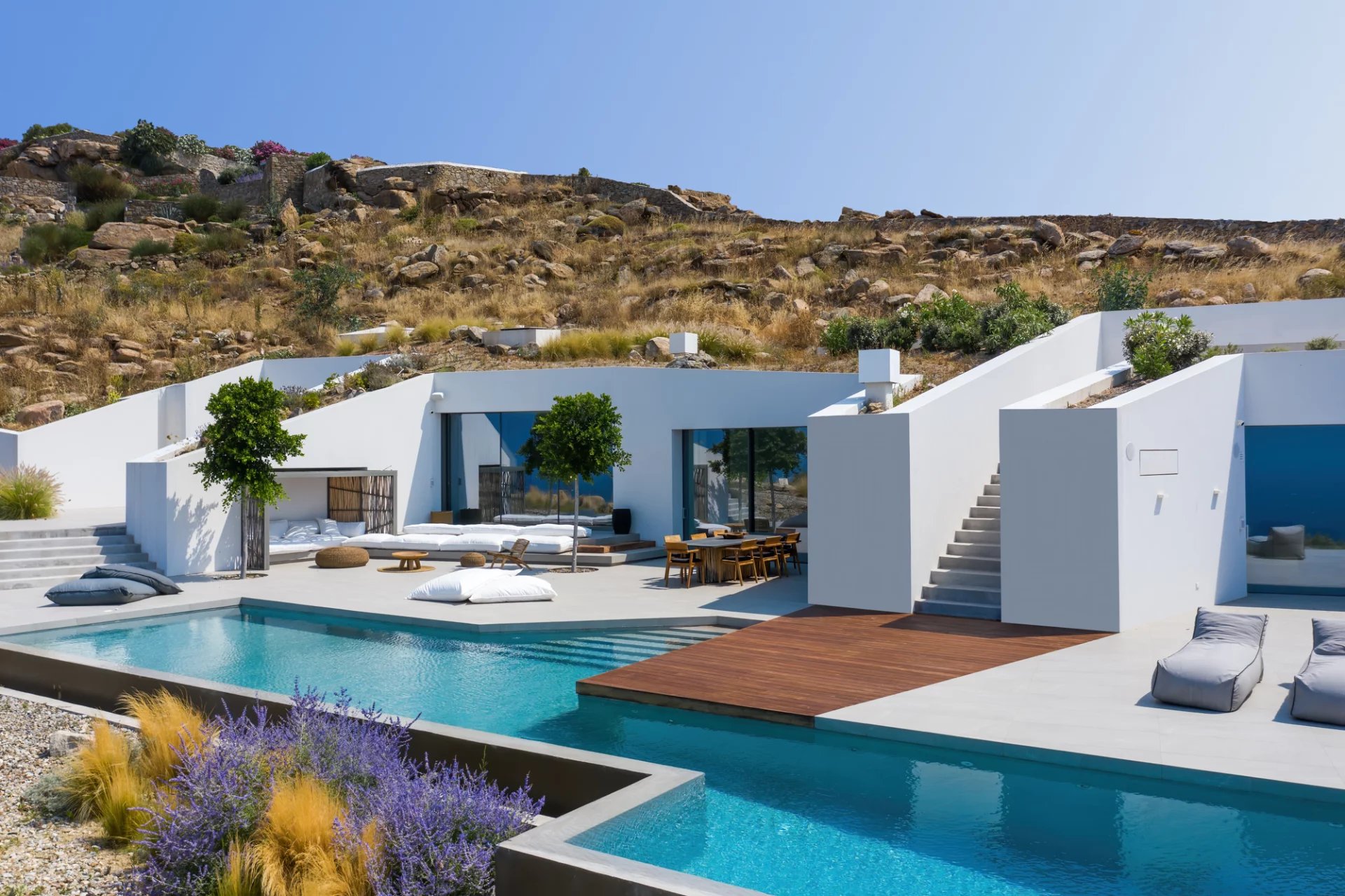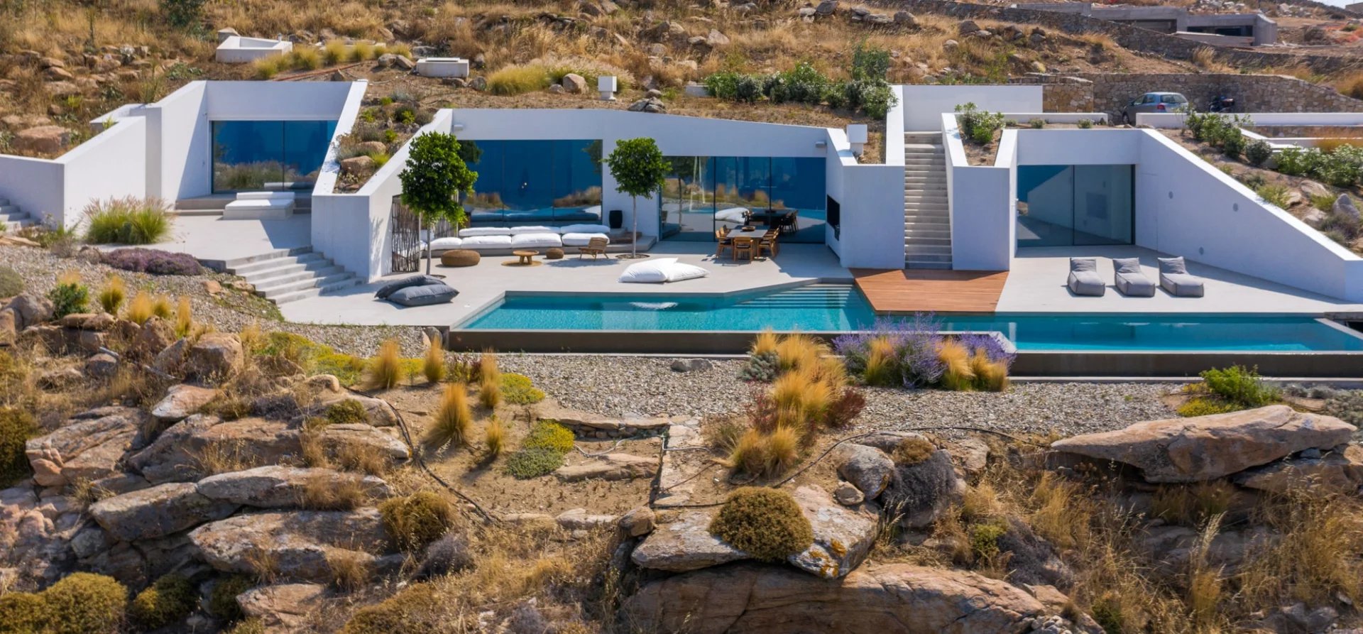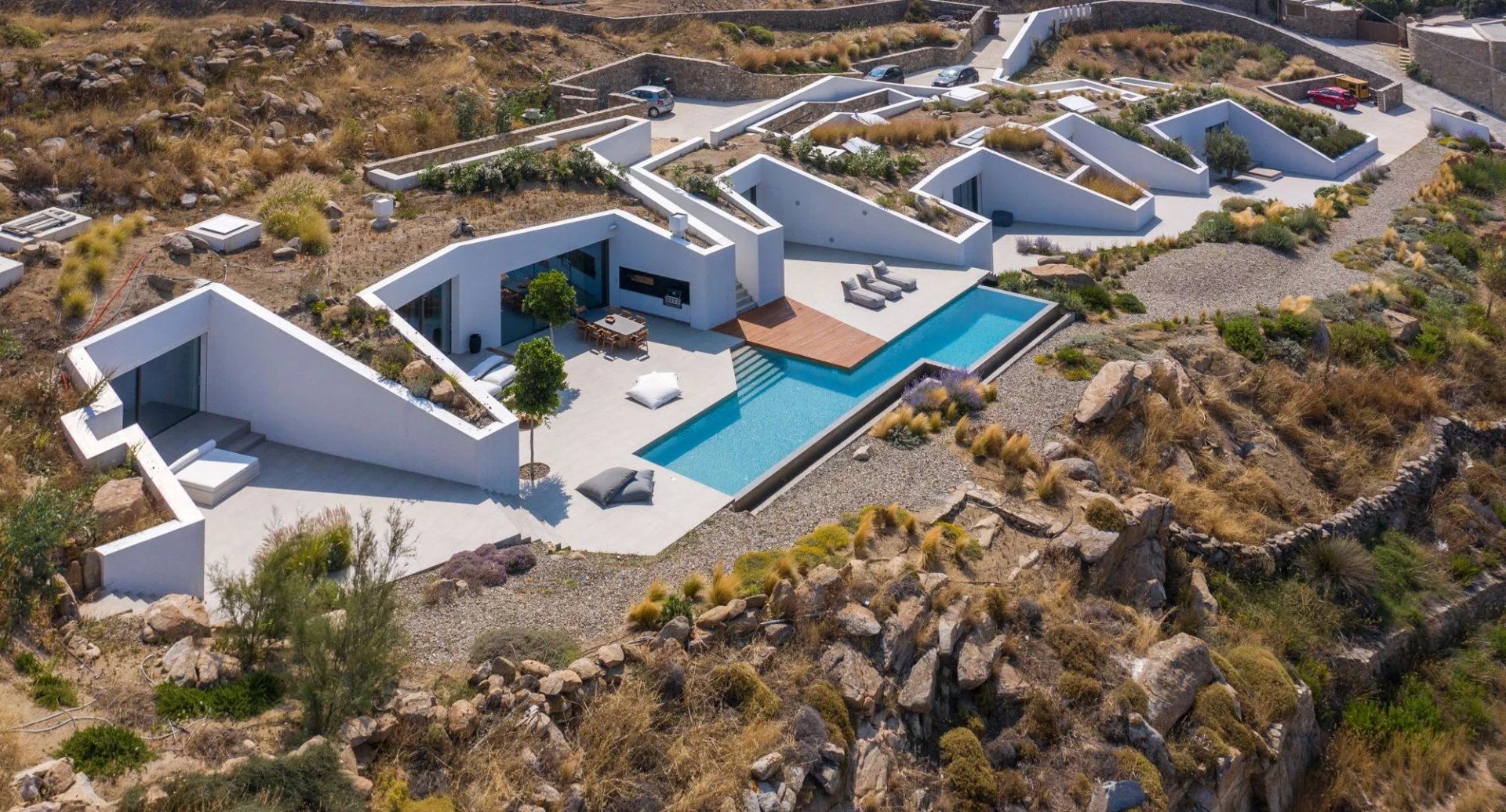 Villa Vista is an exceptional residence boasting a distinctive subterranean architectural concept and minimalist style, accented by wooden elements.