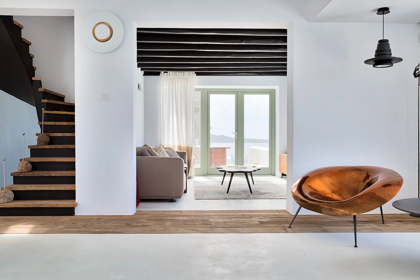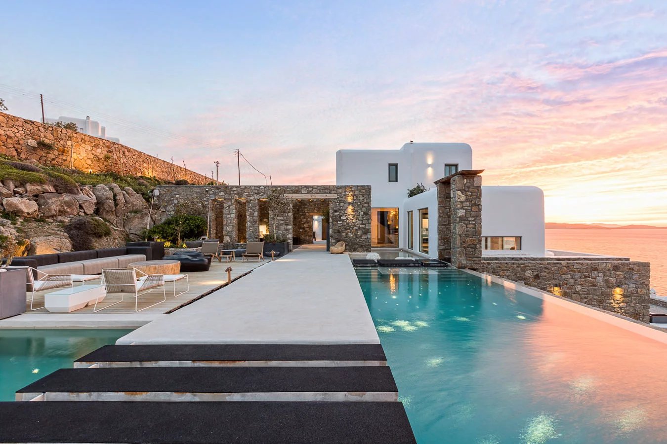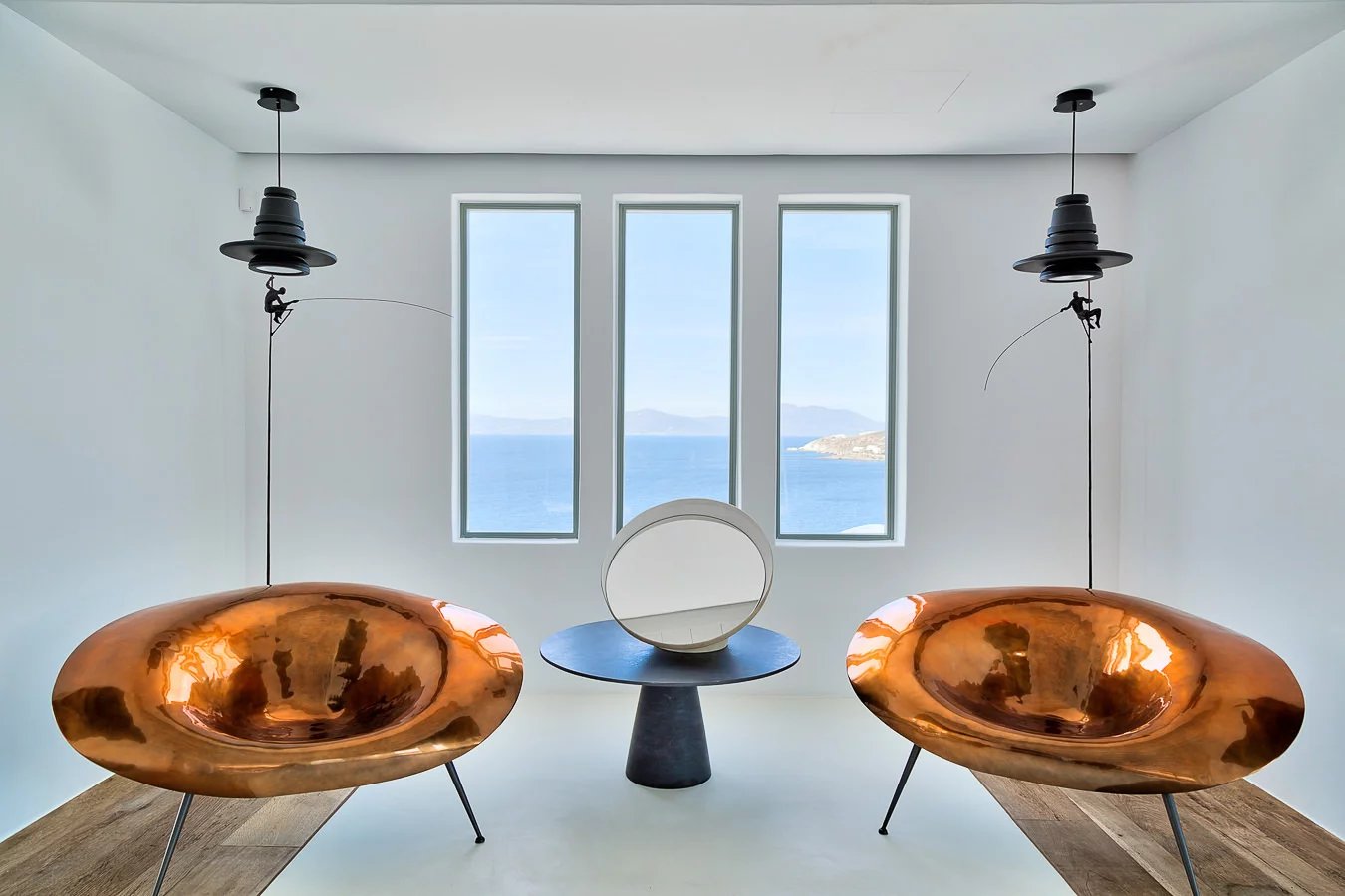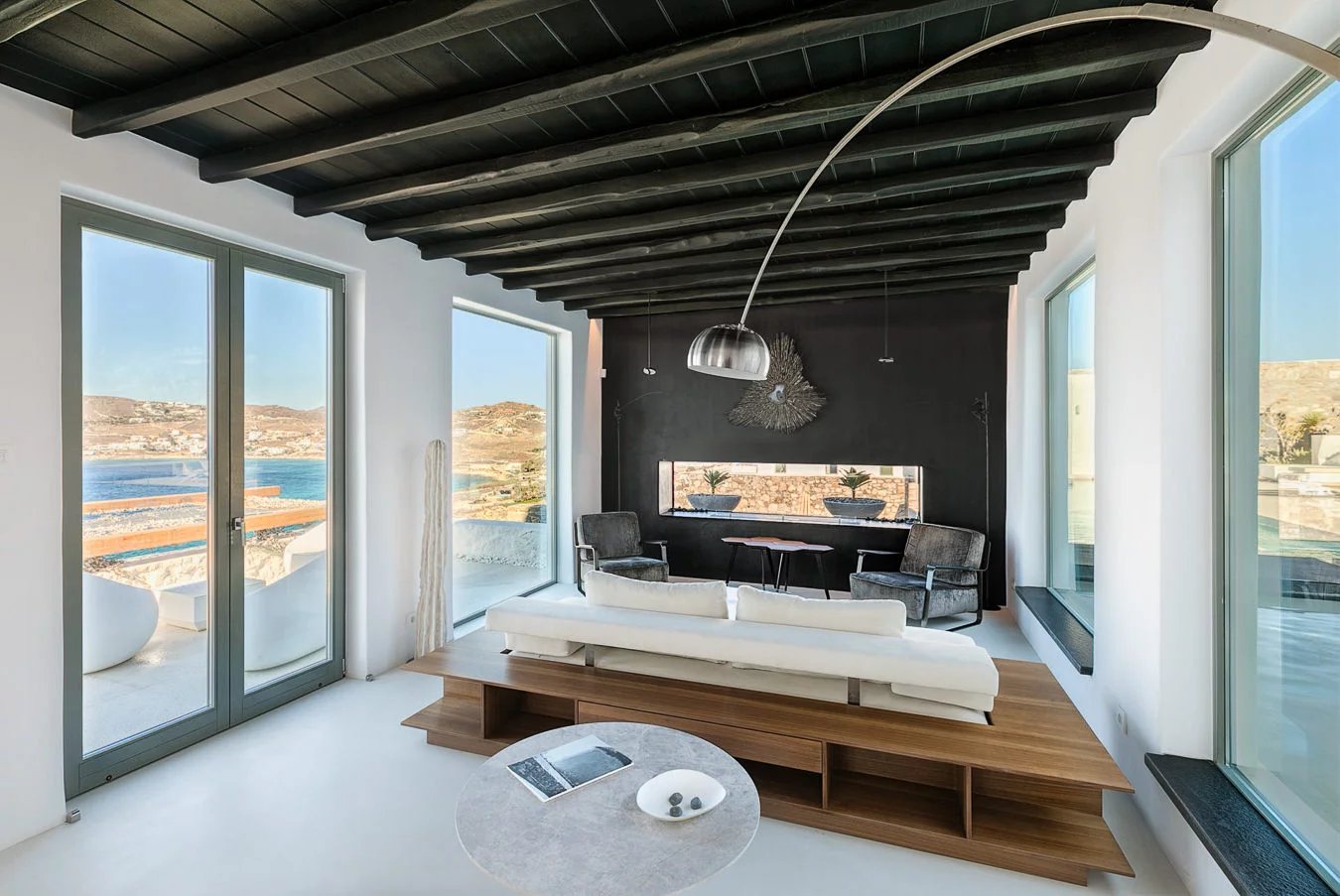 Villa WRV is surrounded by a unique landscape where the sea, rocks and the Cycladic landscape recreate the perfect atmosphere of Mykonos.