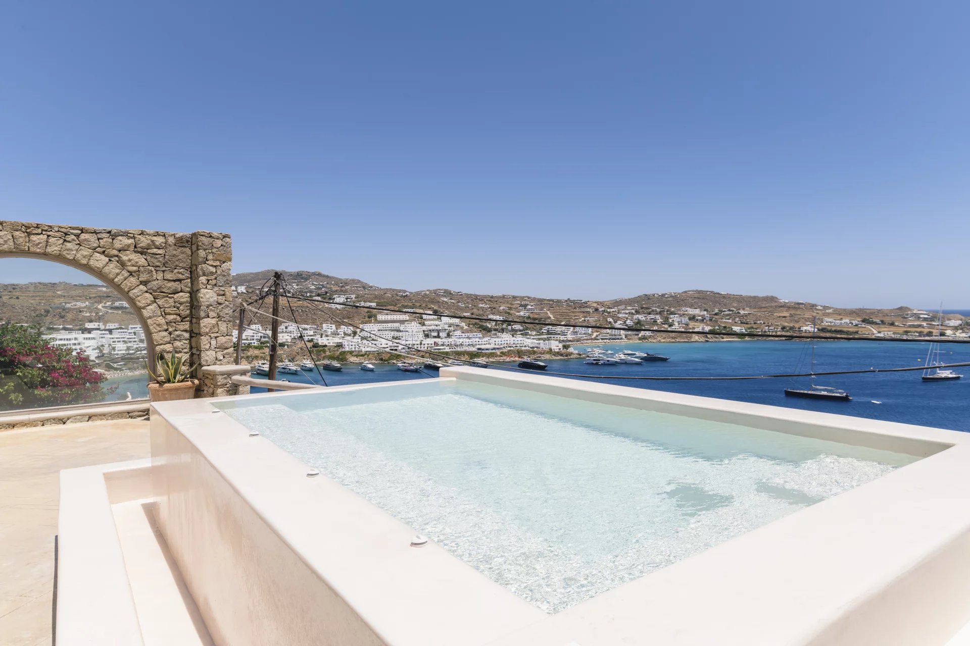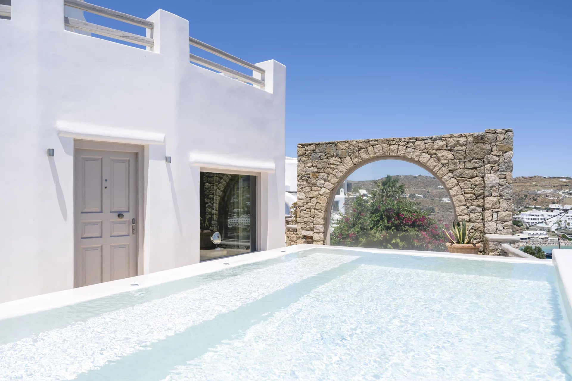 It is located in Agios Lazaros area, well known for the presence of top-quality properties and extremely attractive views over the Aegean Sea, while being conveniently located to Nammos  &  Platis Yialos beach and within easy reach of Mykonos Town.