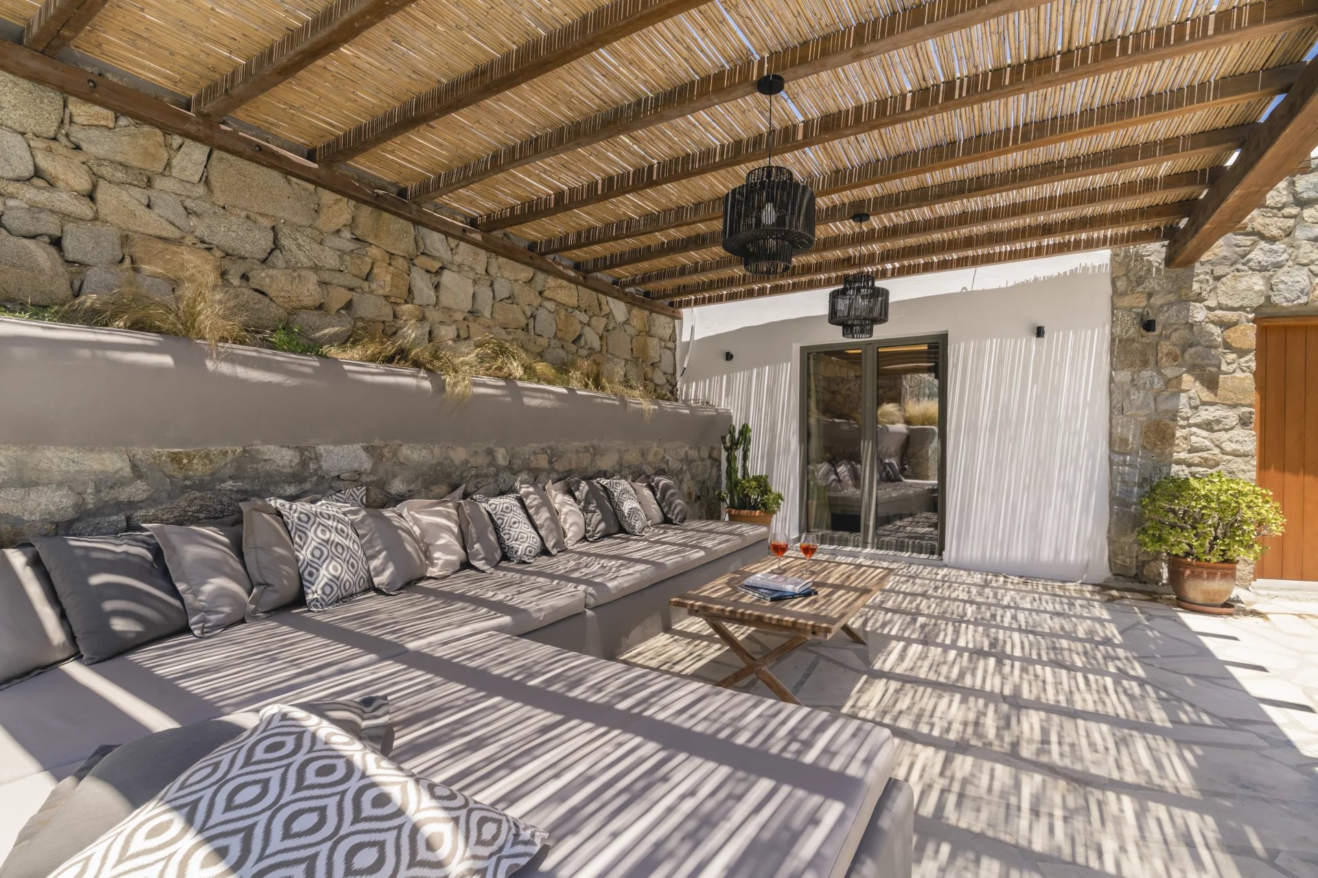 Villa Zena is a two-level villa with 4 en-suite bedrooms and 2 independent guest house with 3 en-suite bathroom. The open-air space around the pool will become your all-day paradise of serenity with different lounging and dining areas, under the pergolas or the starry sky.
