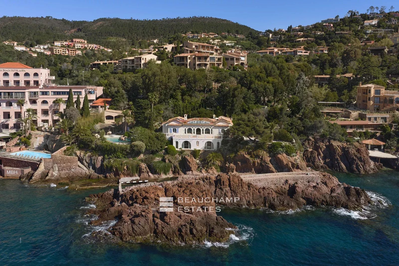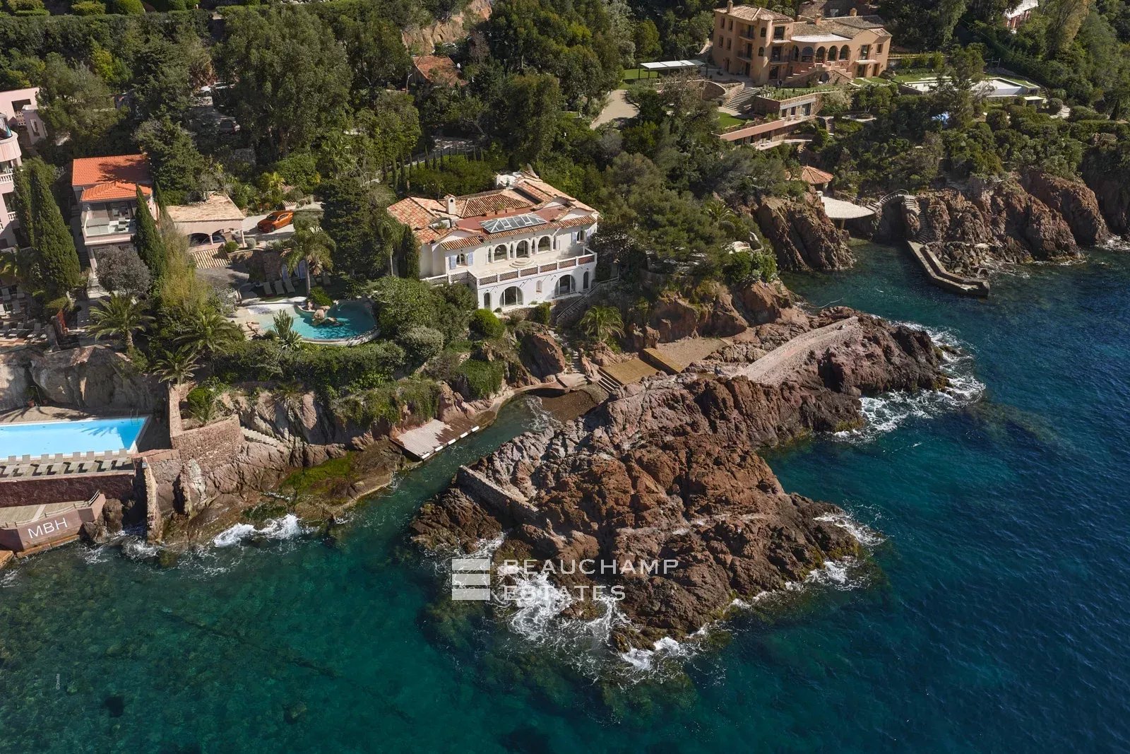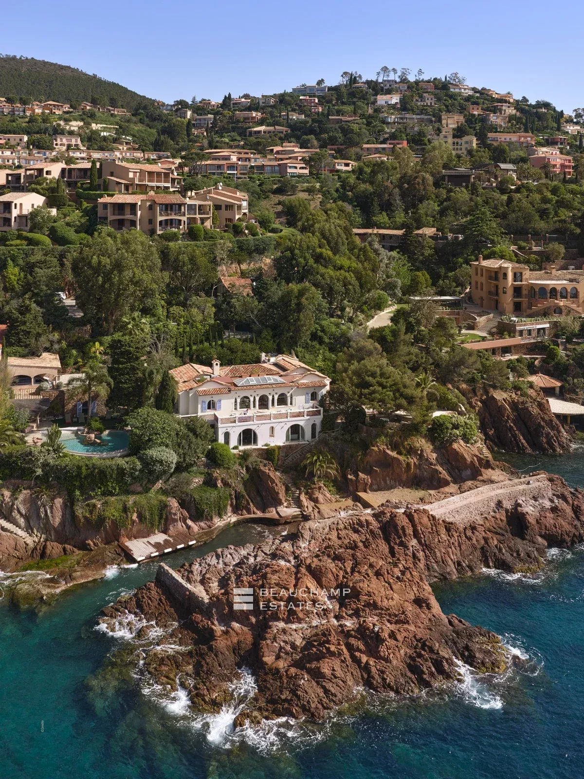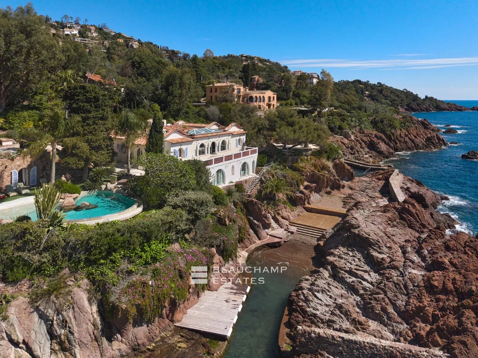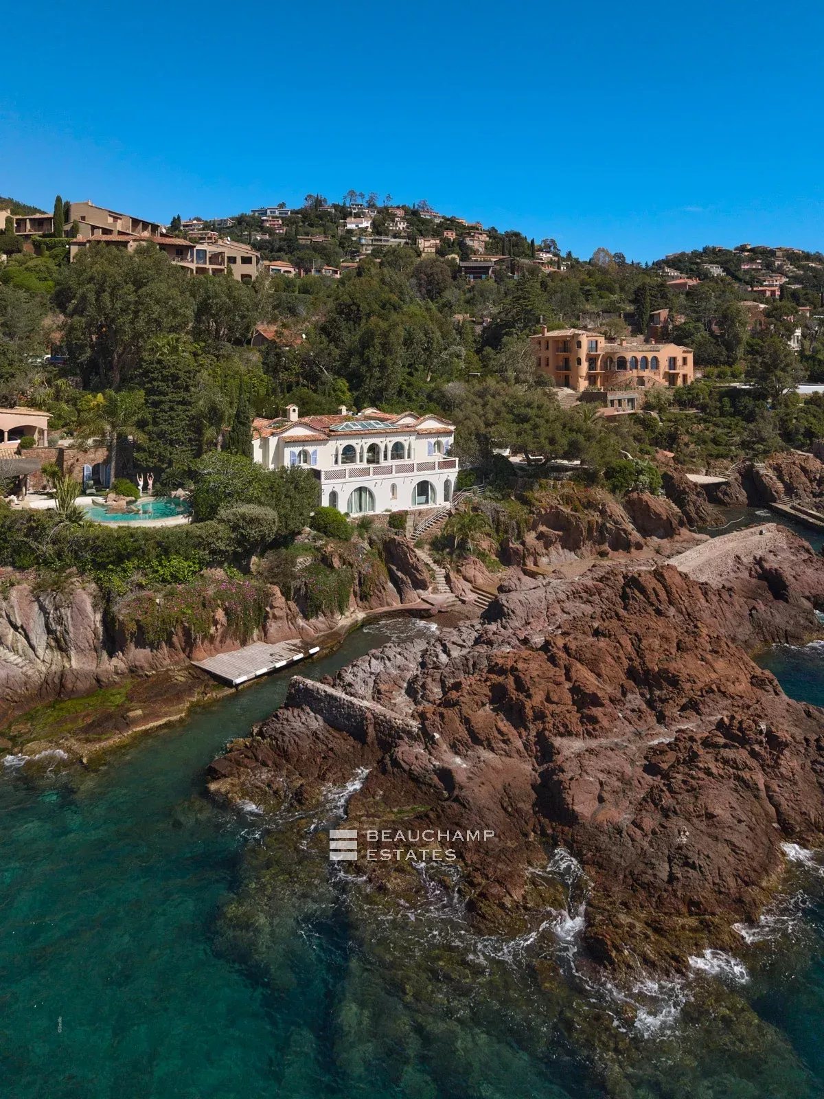 Nestled in the heart of a preserved cove, this frontline property offers a truly unique living experience on the French Riviera. Located just 25 minutes from Cannes and 35 minutes from Nice International Airport, it enjoys an exceptionally exclusive and private setting, completely shielded from view.